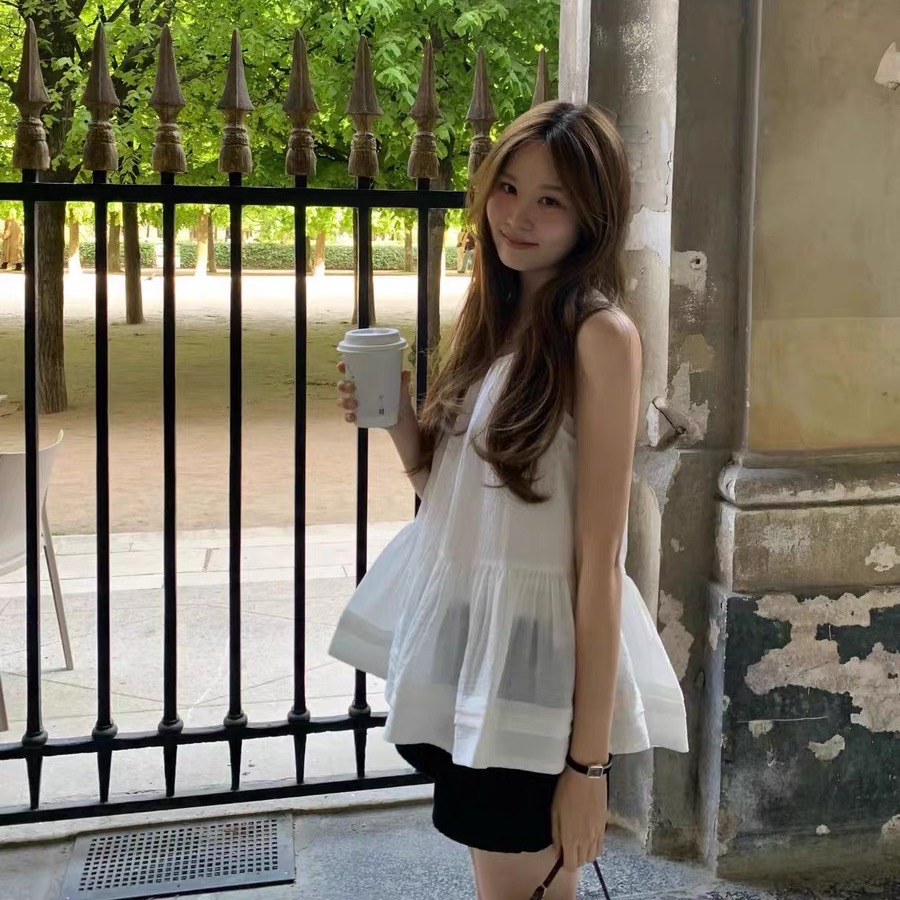 스와 리 转角 미니멀리즘 u 칼라 꽃밭 조끼 스커트 여성 봄 여름 새로운 루즈핏 한 마디 드레스