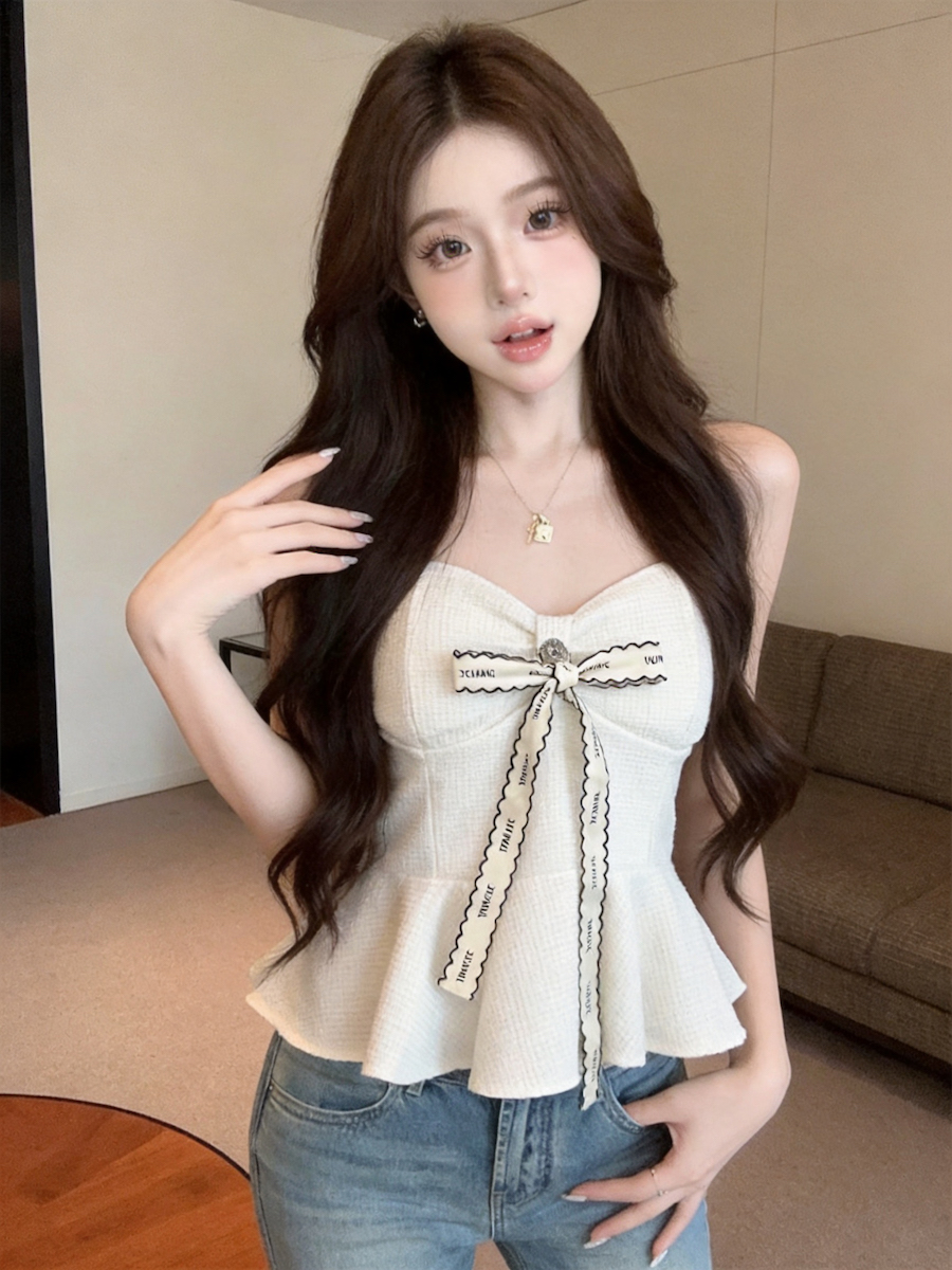 정가 있음 보호 달콤함 꽃 외국 가스 행침 목 조끼 여성 순수한 욕망 바람 여름 핫걸 슬림해 보이는 포장 가슴 맨위