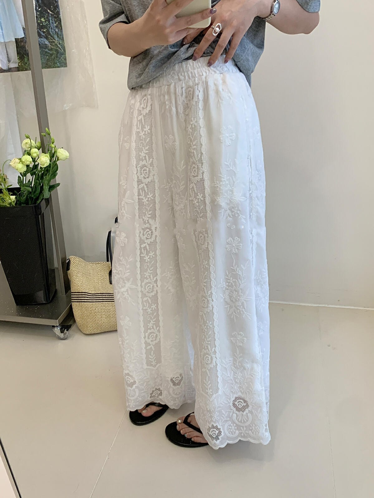 실사 레이스 방귀 커튼 와이드 레그 팬츠 여름 얇은 스타일 하이웨이스트 도루 센스 면 린넨 치마바지 루즈핏 국방 사이 슬림해 보이는 바닥 청소 바지