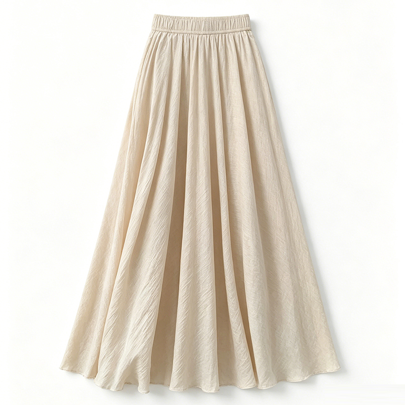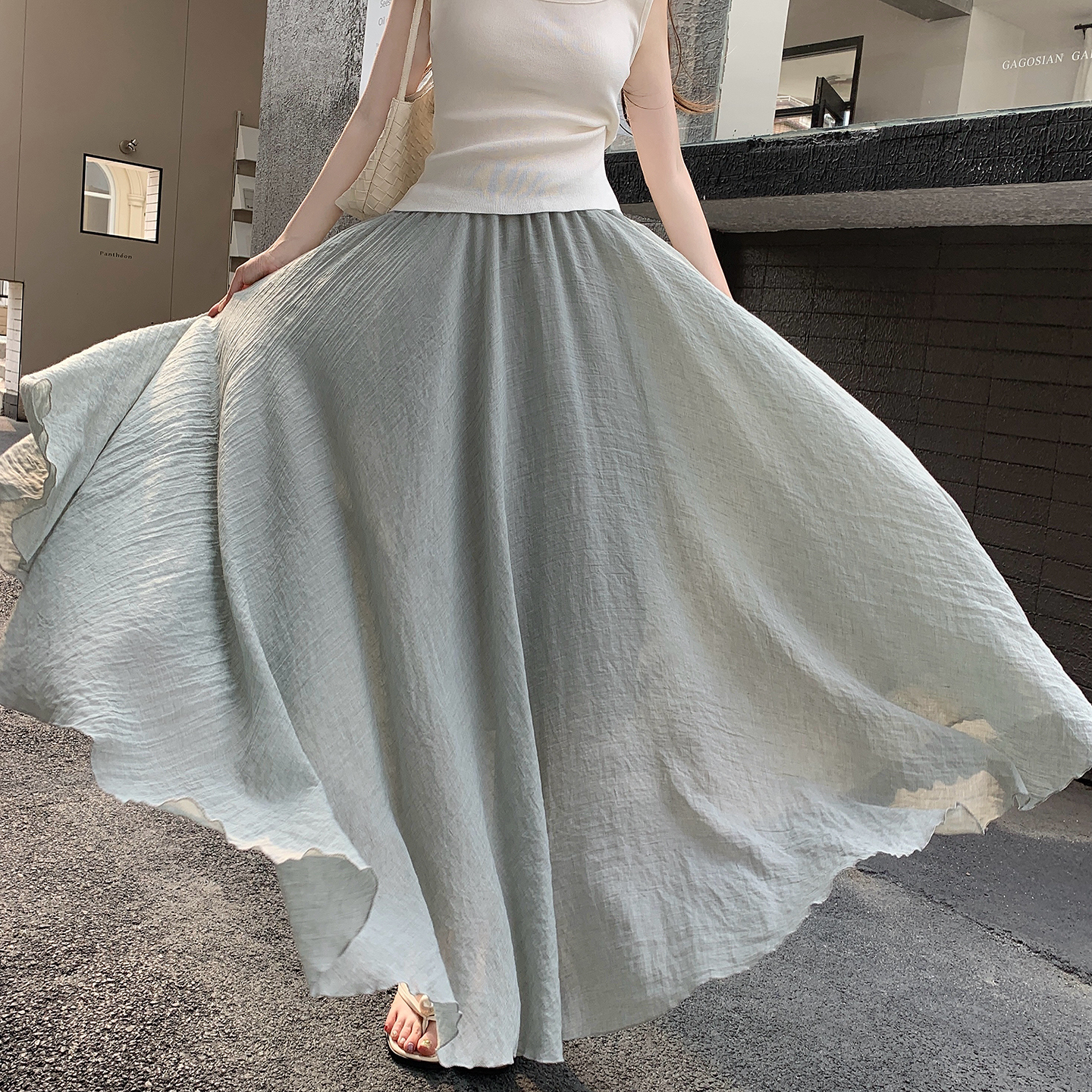 실사 2026 여름 대 우아한 센스 허리밴드 면 린넨 도루 센스 한 마디 반신 스커트 롱 스커트 특대 사이즈 치마 우산 치마