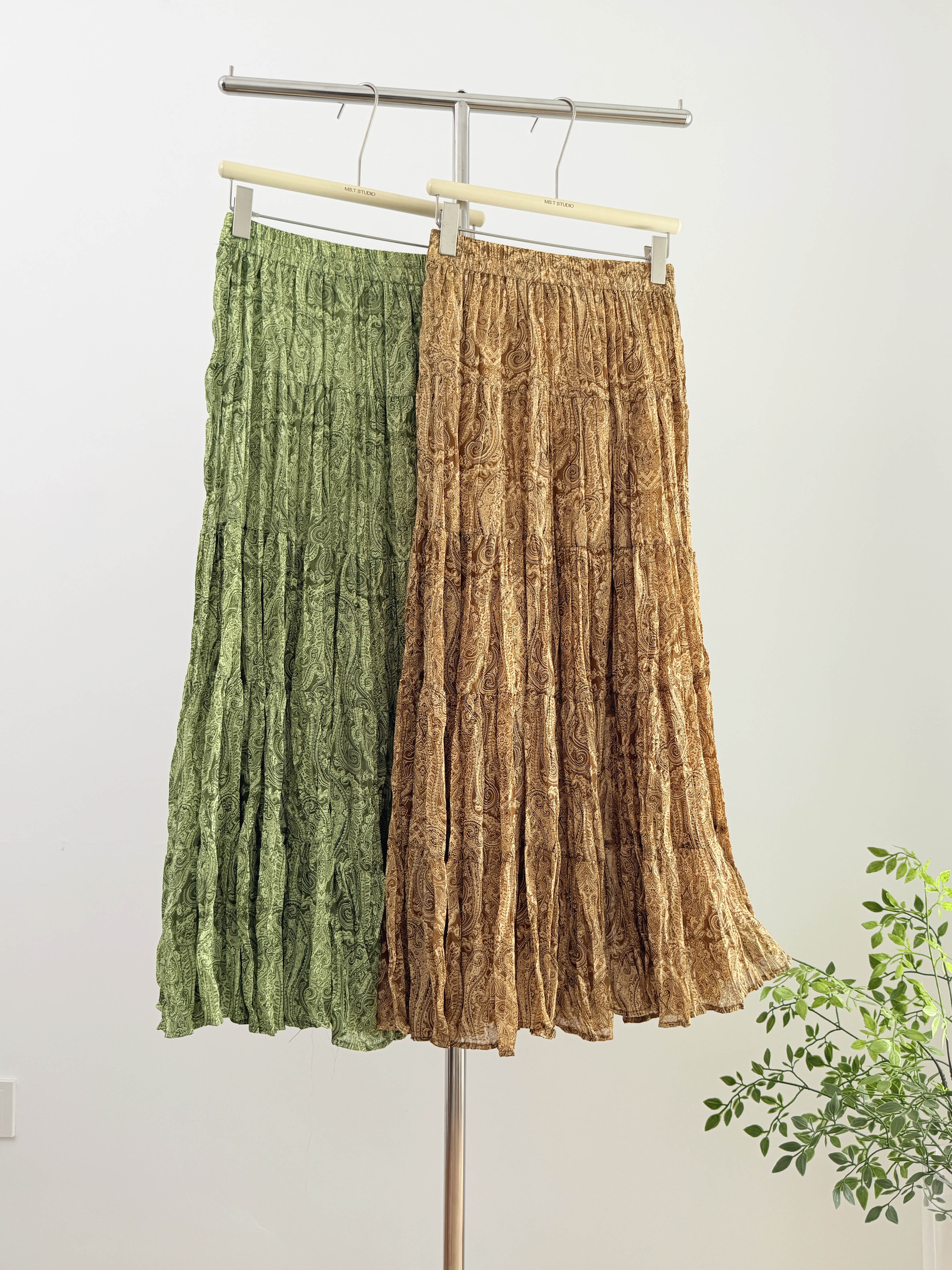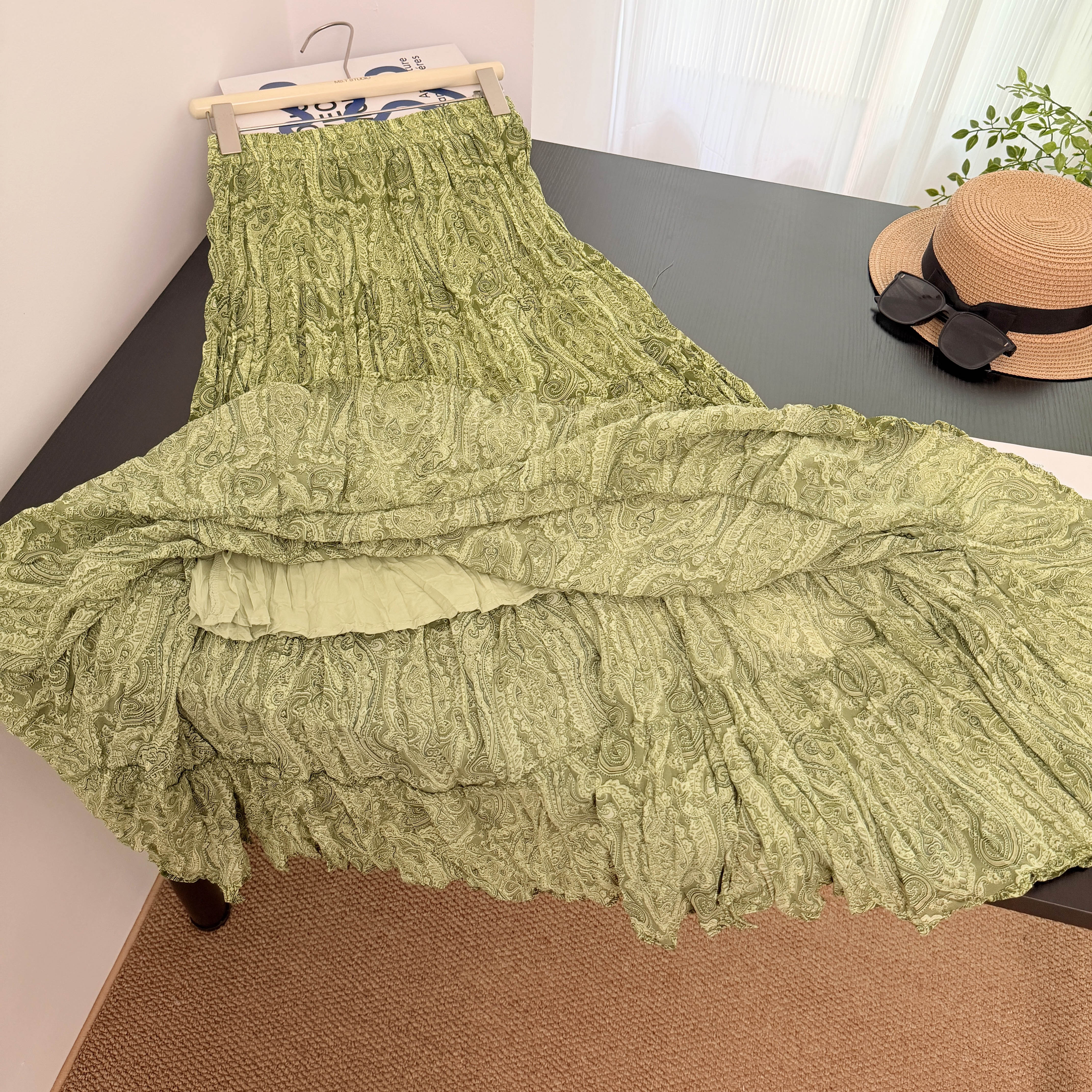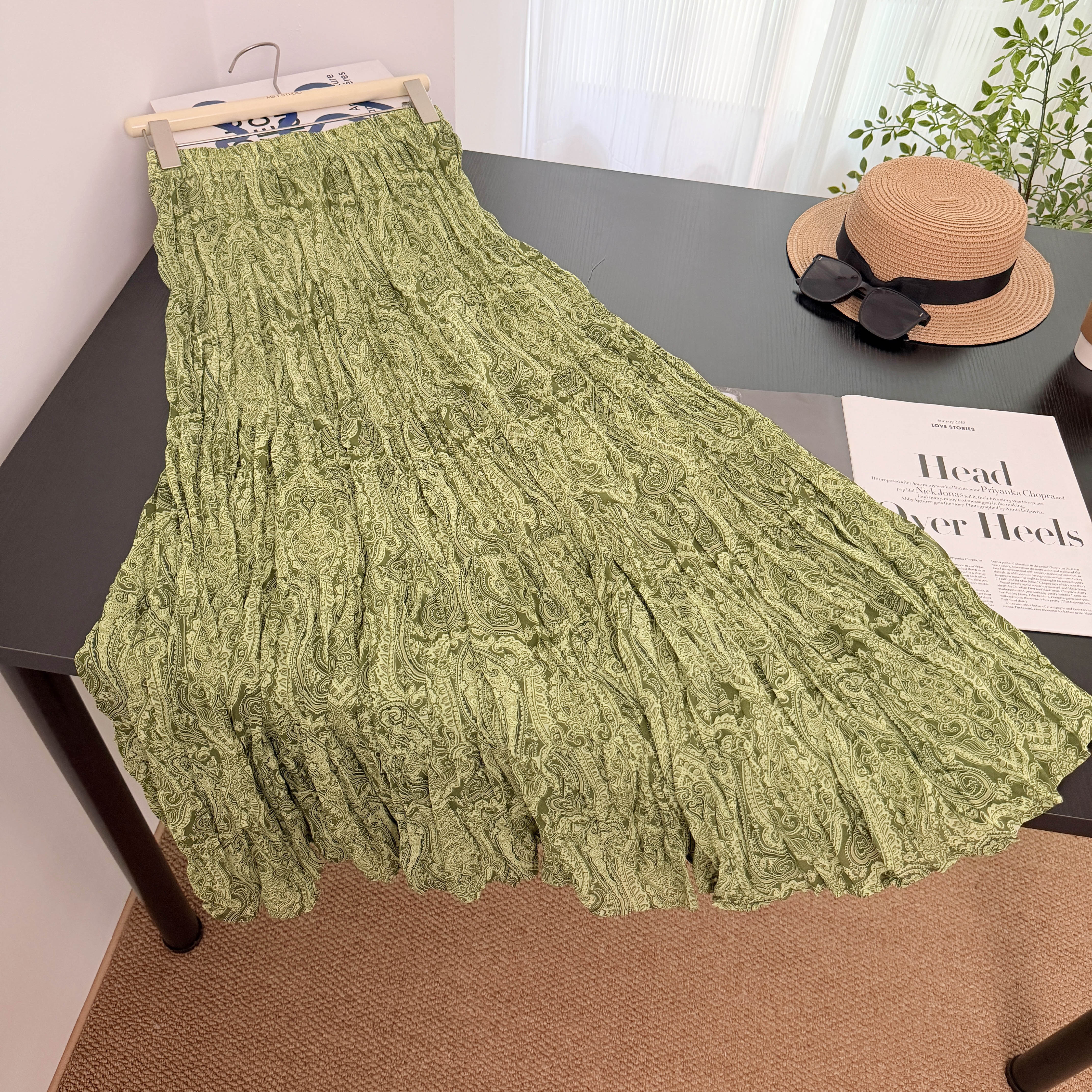 실사 전원 바람 녹색 프린트 반신 스커트 여성 2026 봄 드레스 새로운 우아한 플리츠 중간 길이 스커트 꽃무늬 치마