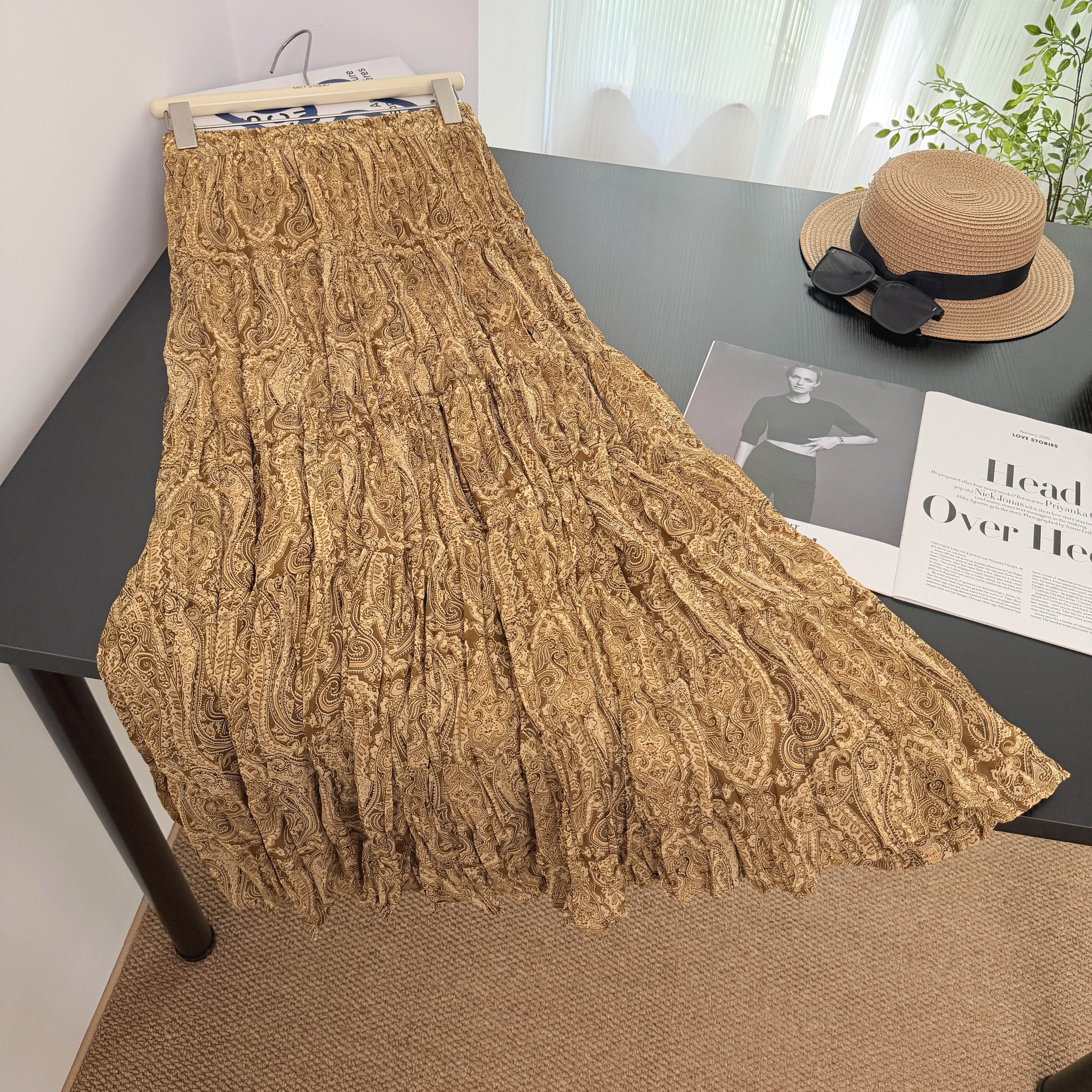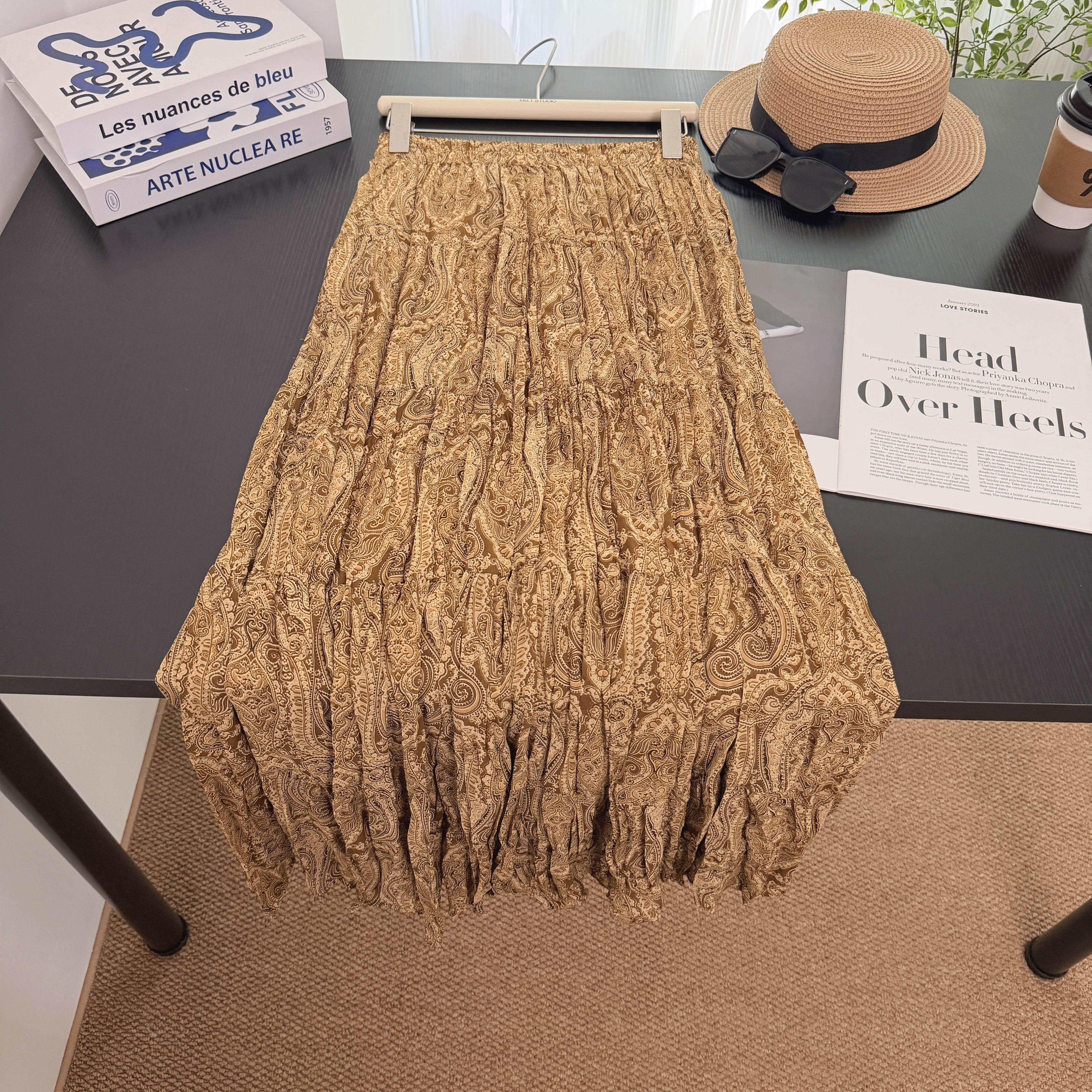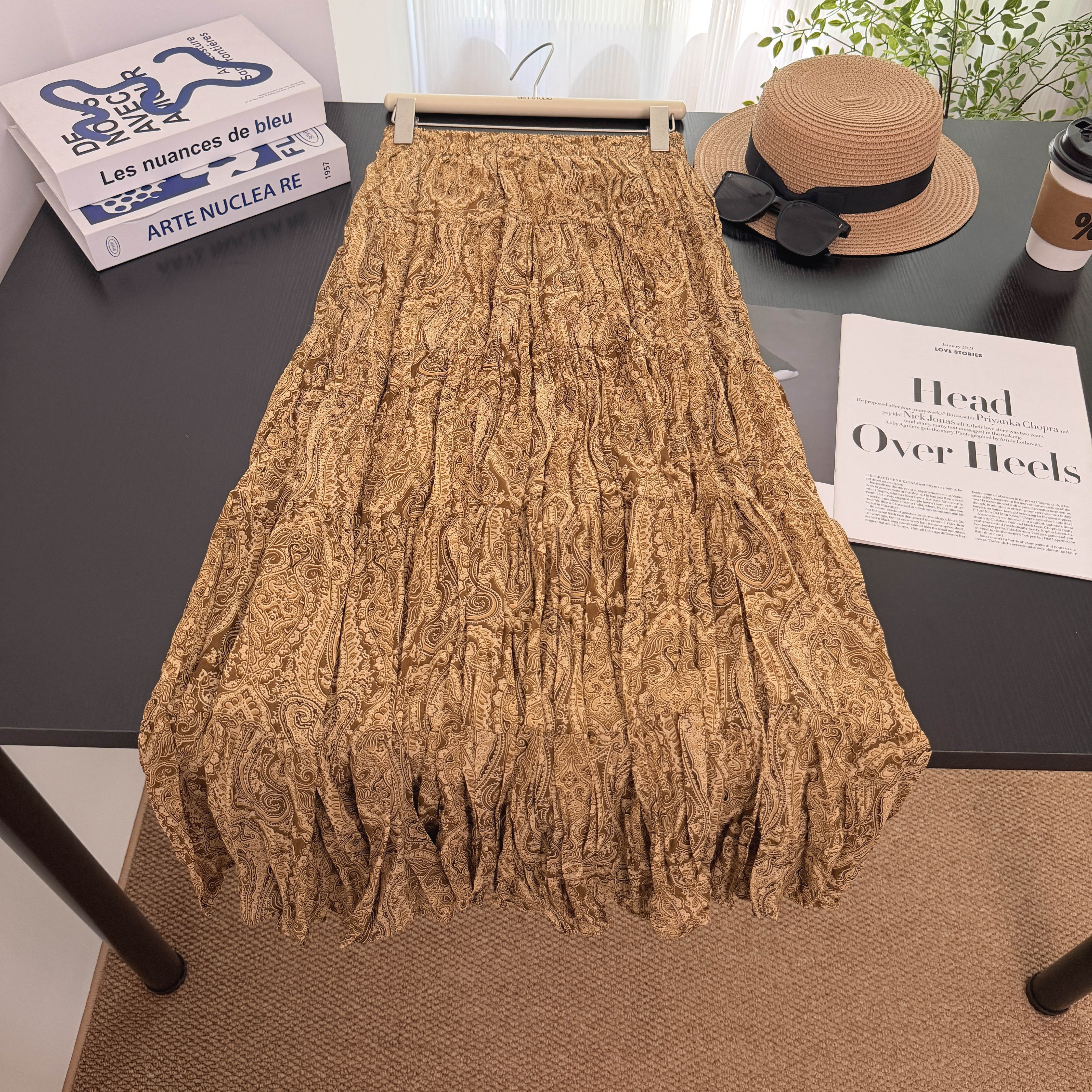 실사 보헤미안 바람 레트로 프린트 A라인 스커트 26 년 여름 새로운 프랑스식 디자인 센스 루즈핏 반신 스커트