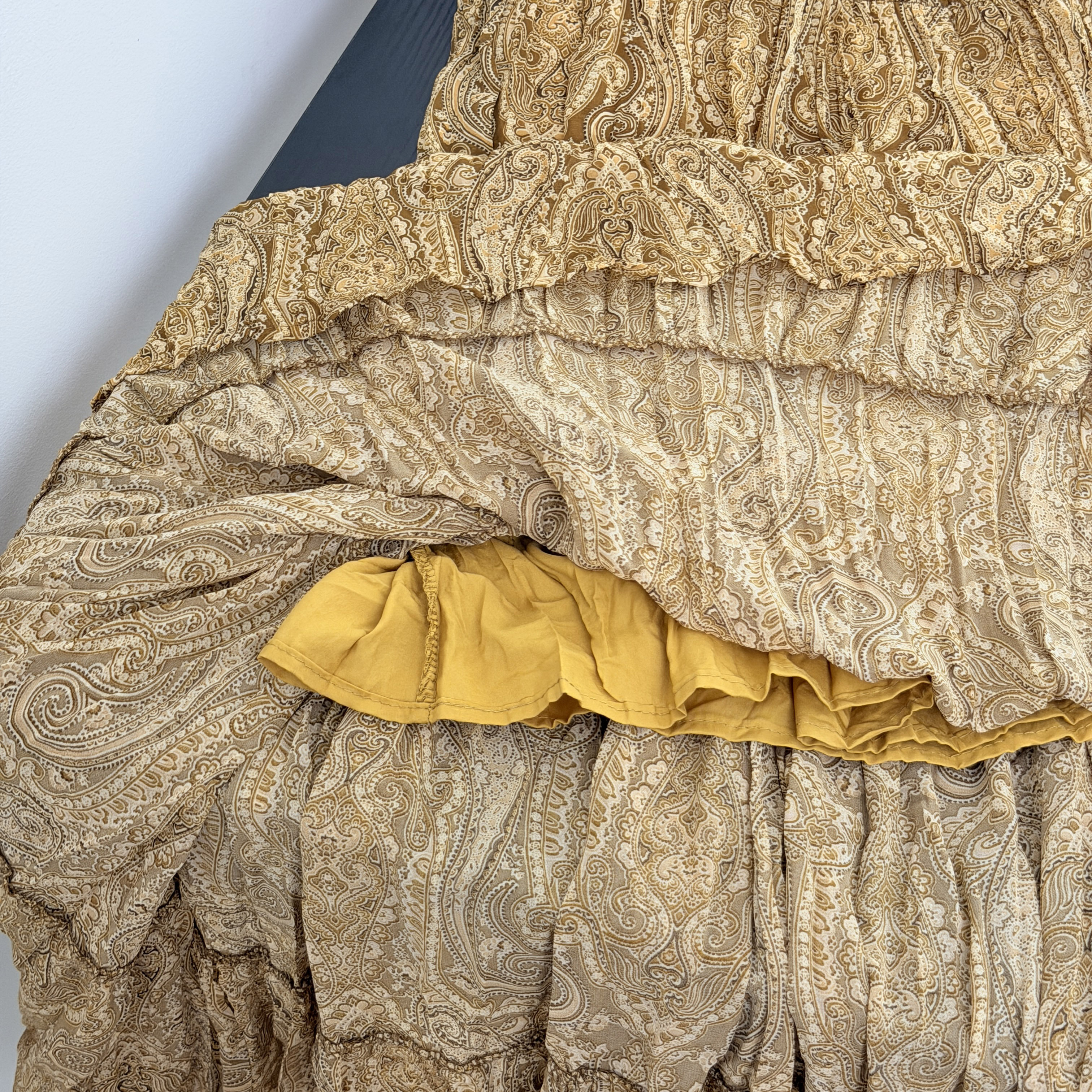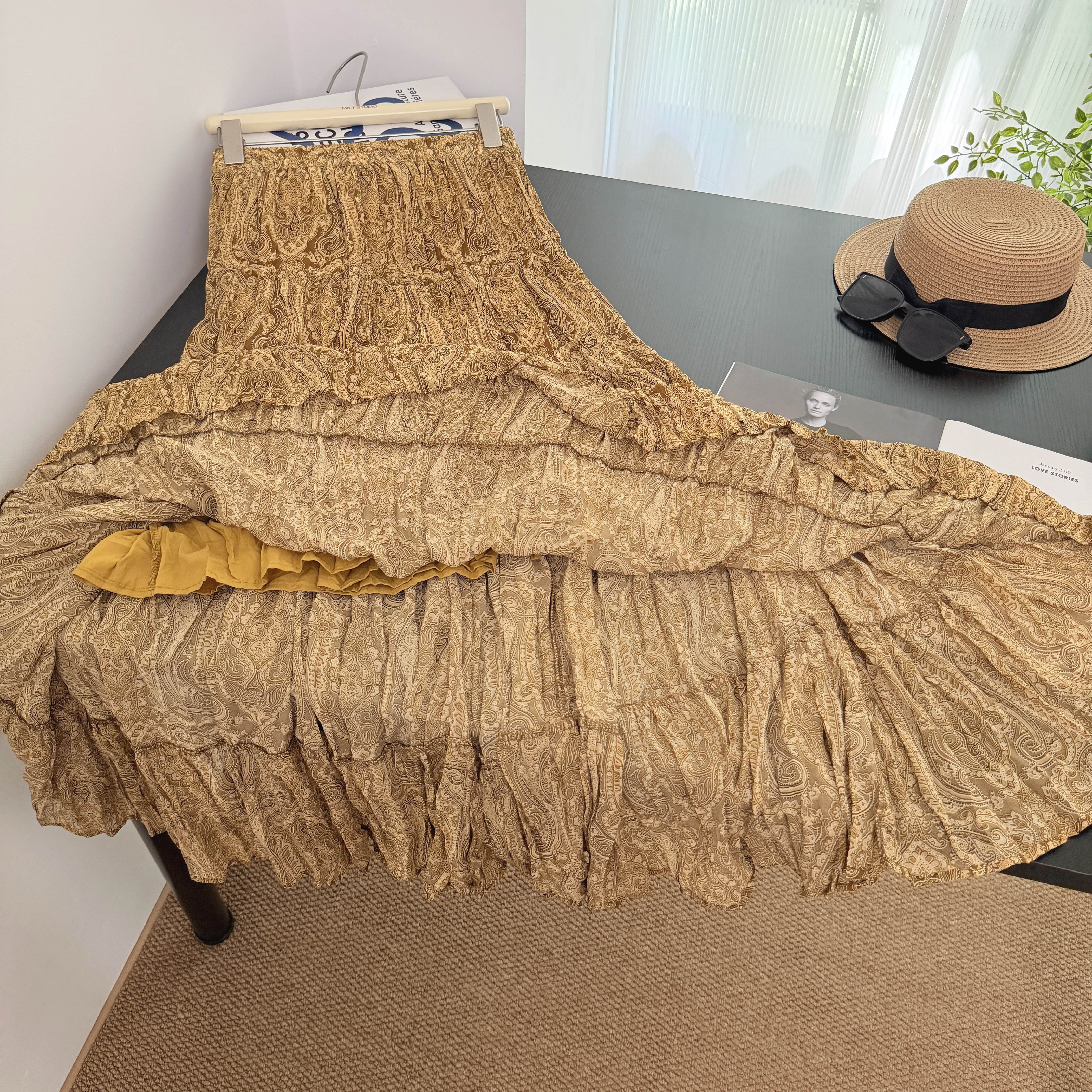 여름 새로운 큰 진자 반신 롱 스커트 여성 2025 새로운 표지 십자가 패치워크 한 마디 케이크 쉬폰 꽃무늬 반신 스커트