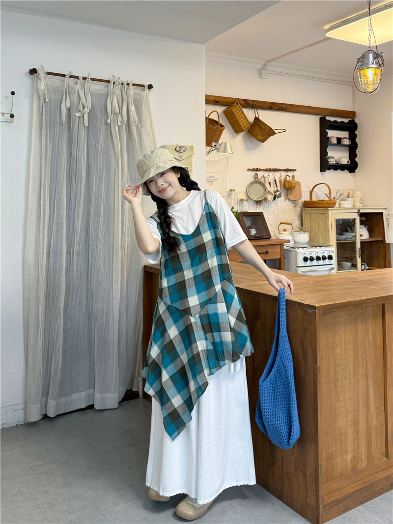 실사 티셔츠 불규칙 체크무늬 스택 착용 슬립 드레스 캐주얼 바지