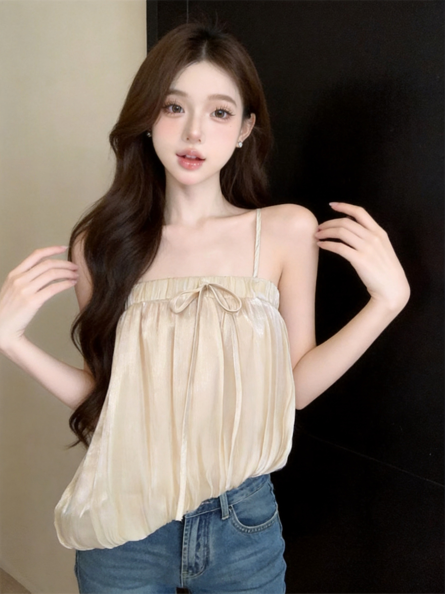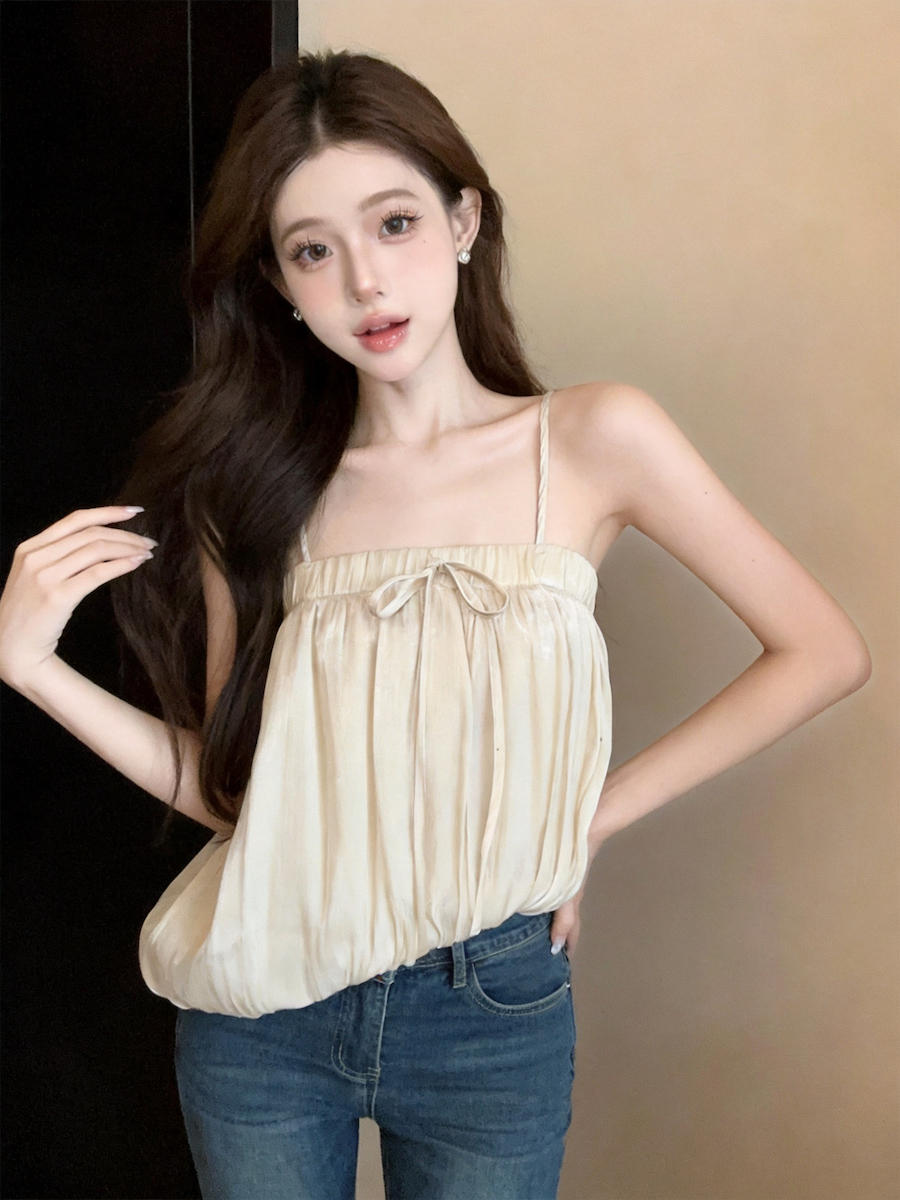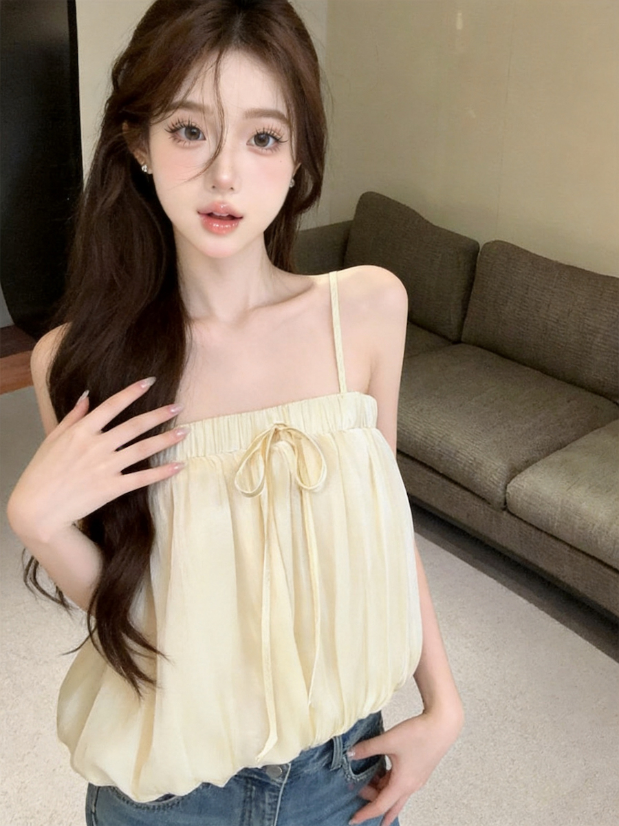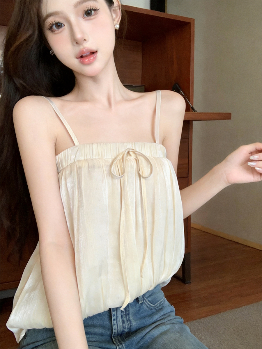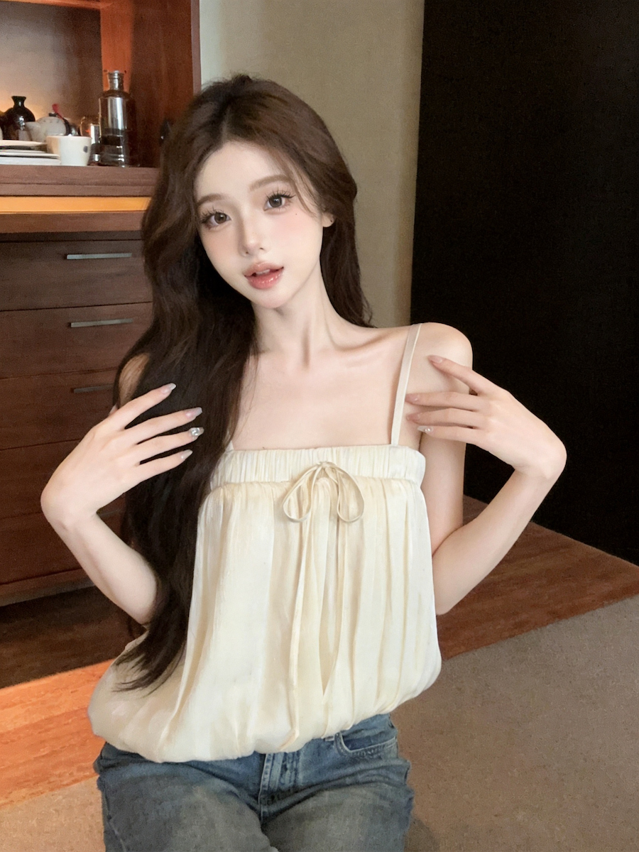 정가 있음 보호 분위기 센스 향기로운 향 부드러운 층 프릴 슬립 작은 셔츠 여성 여름 얇은