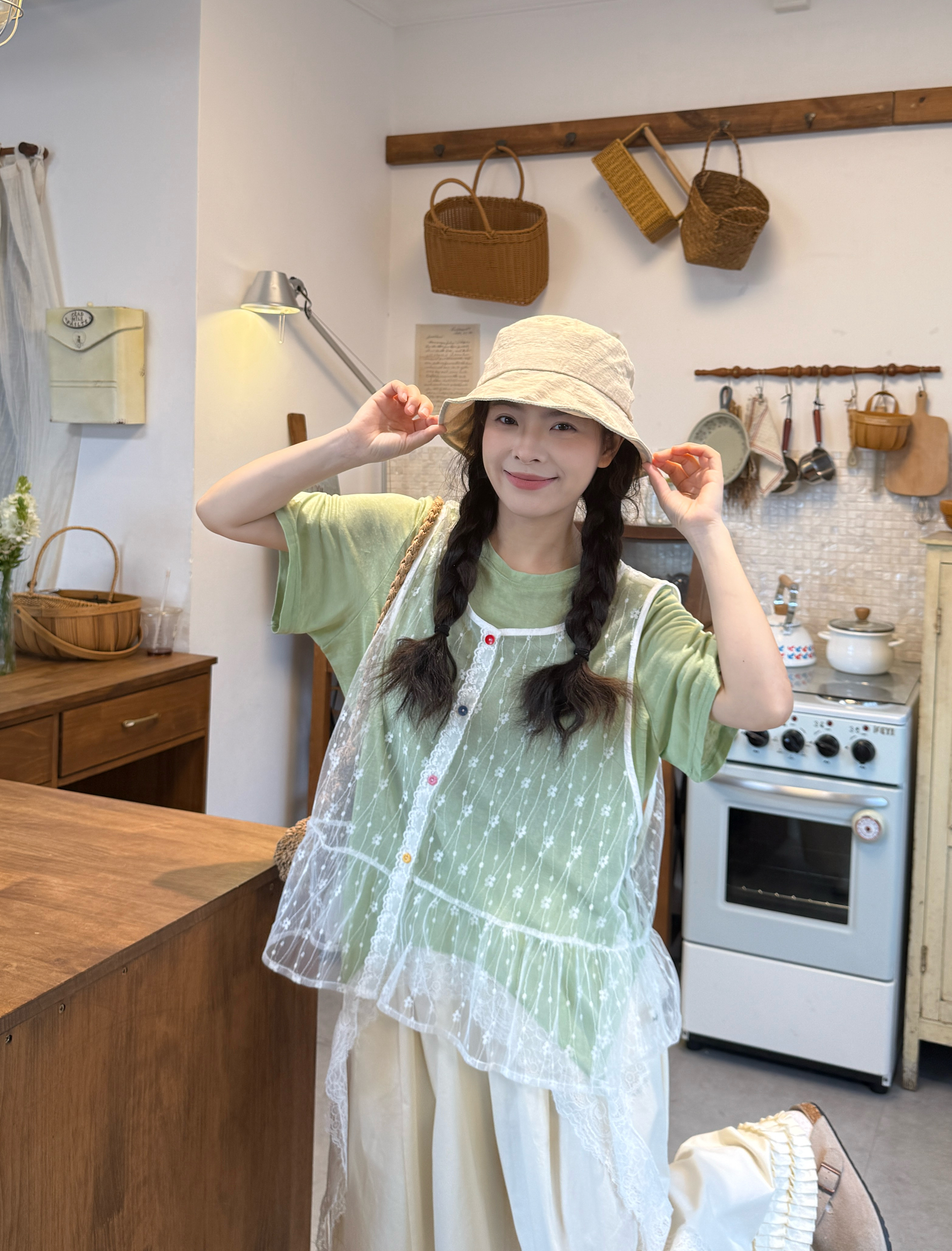 실사 레이스 베이비 칼라 루즈핏 반팔 셔츠