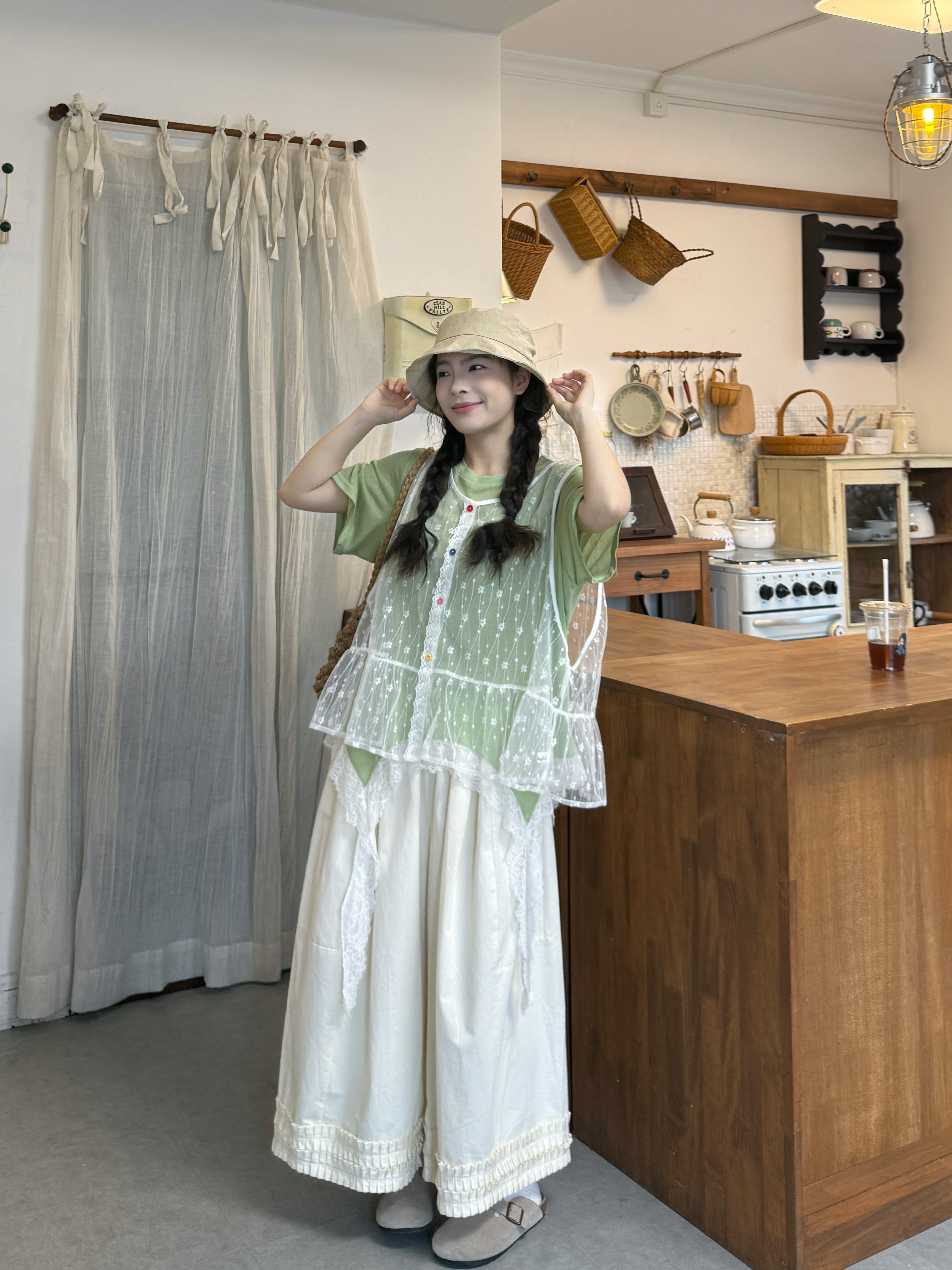실사 레이스 베이비 칼라 반팔 셔츠 꽃밭 치마