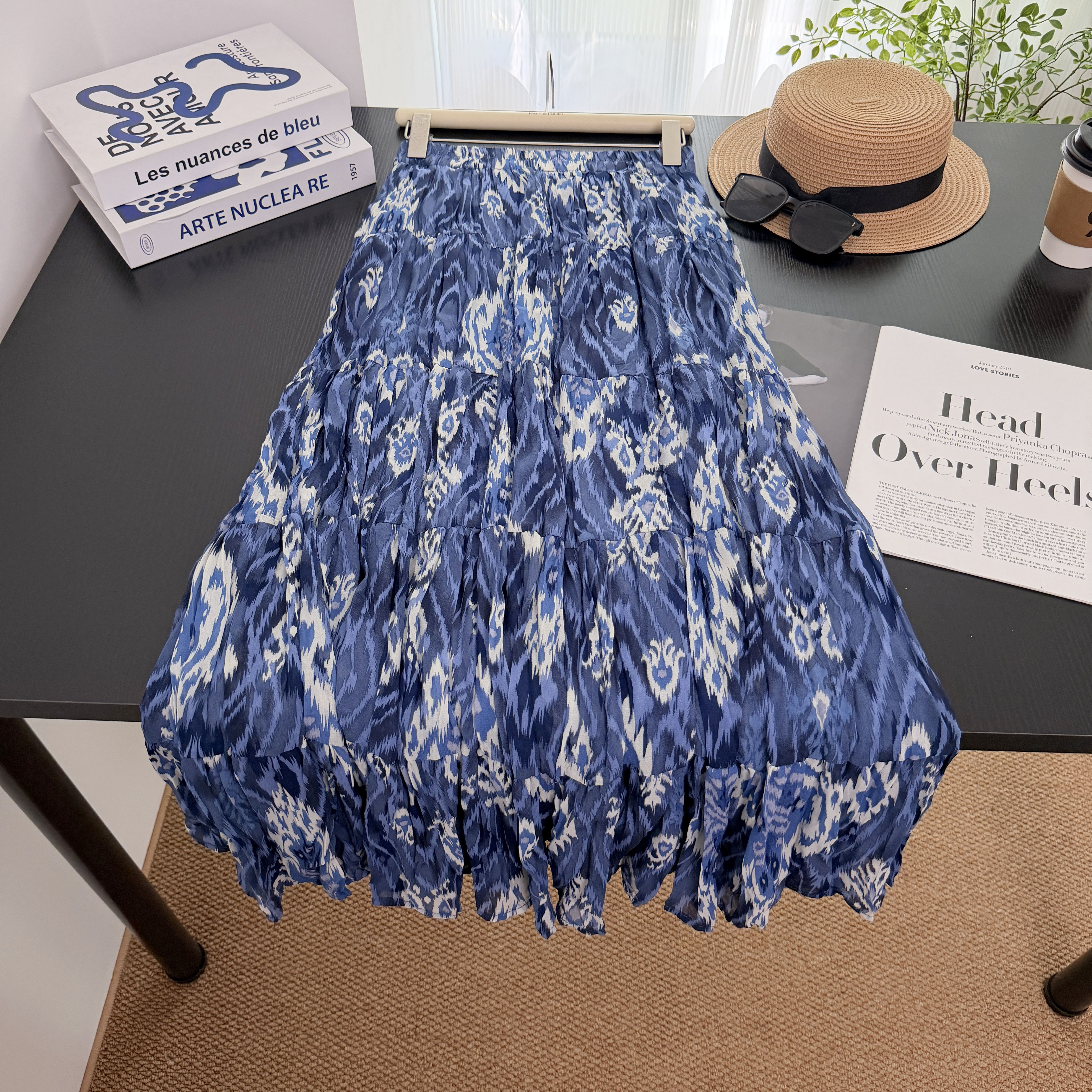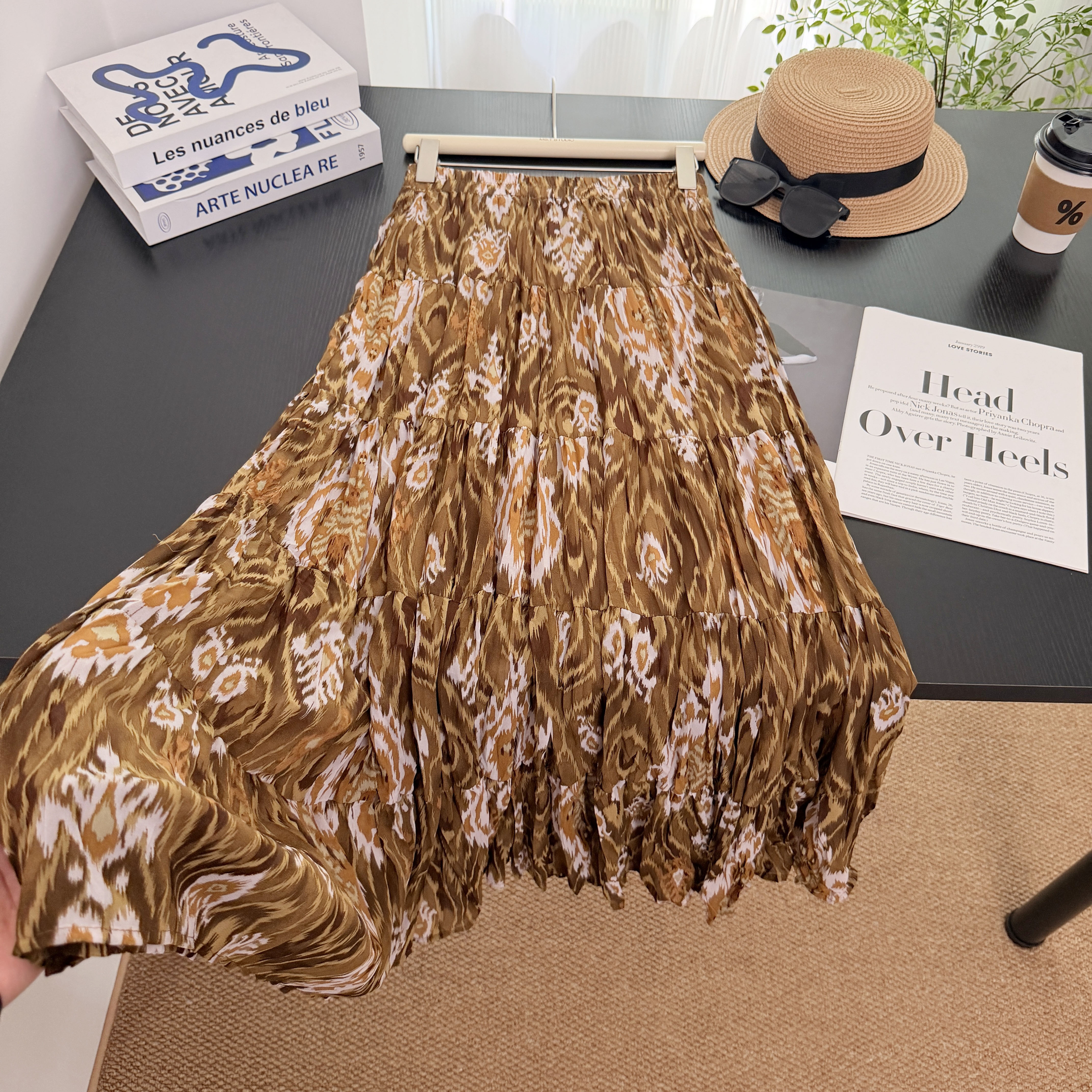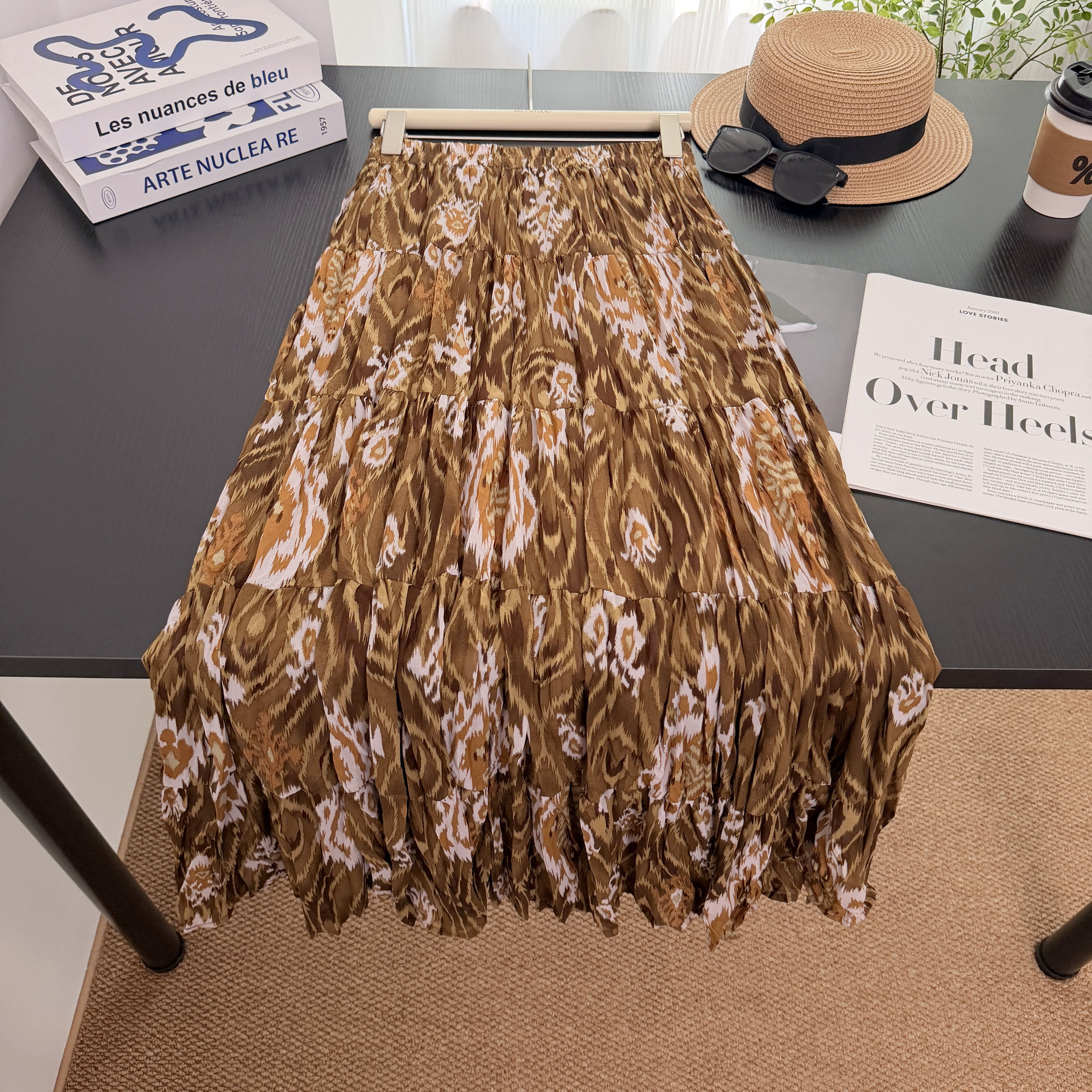 실사 보헤미안 바람 레트로 프린트 A라인 스커트 26 년 여름 새로운 프랑스식 디자인 센스 루즈핏 반신 스커트