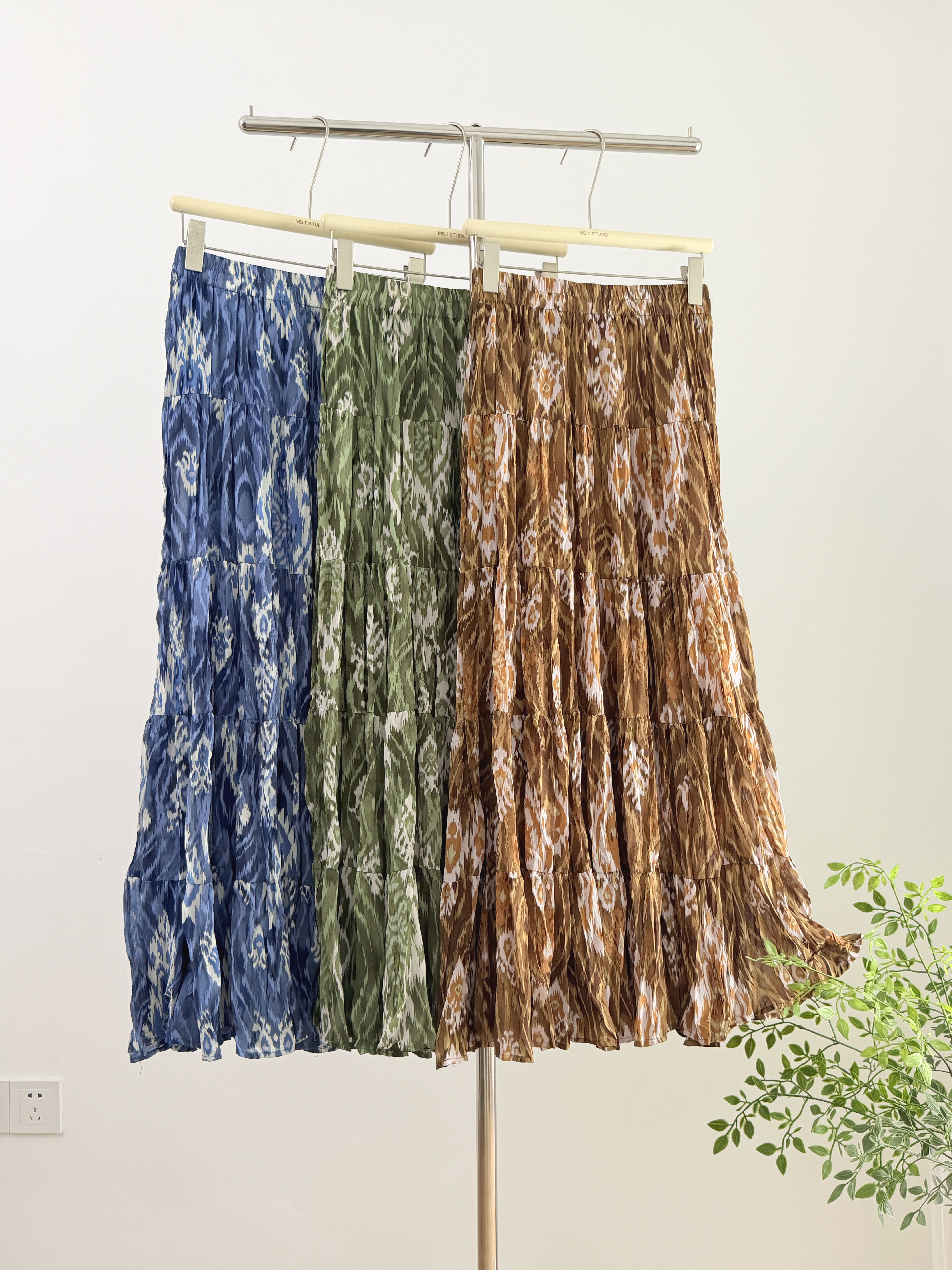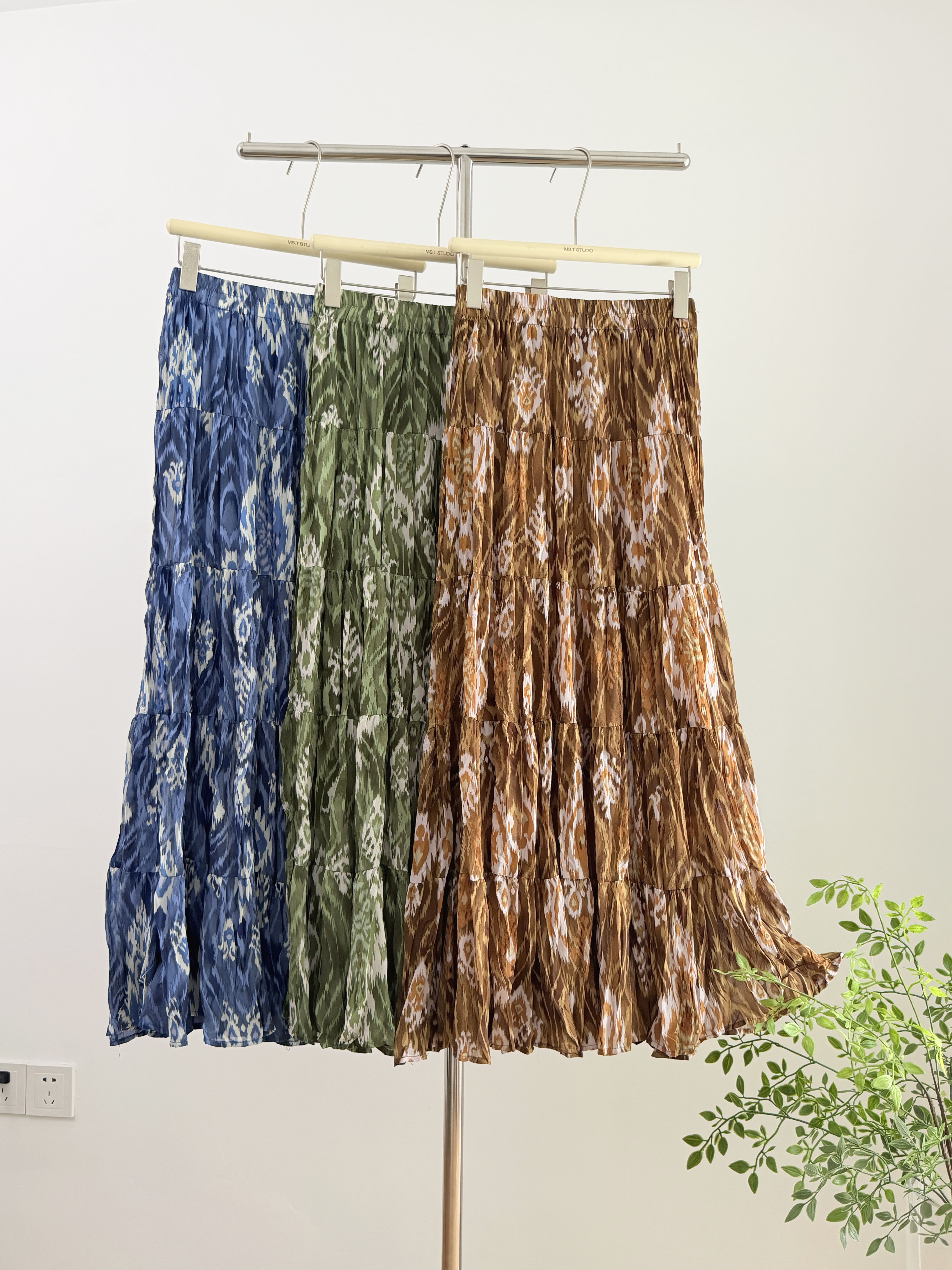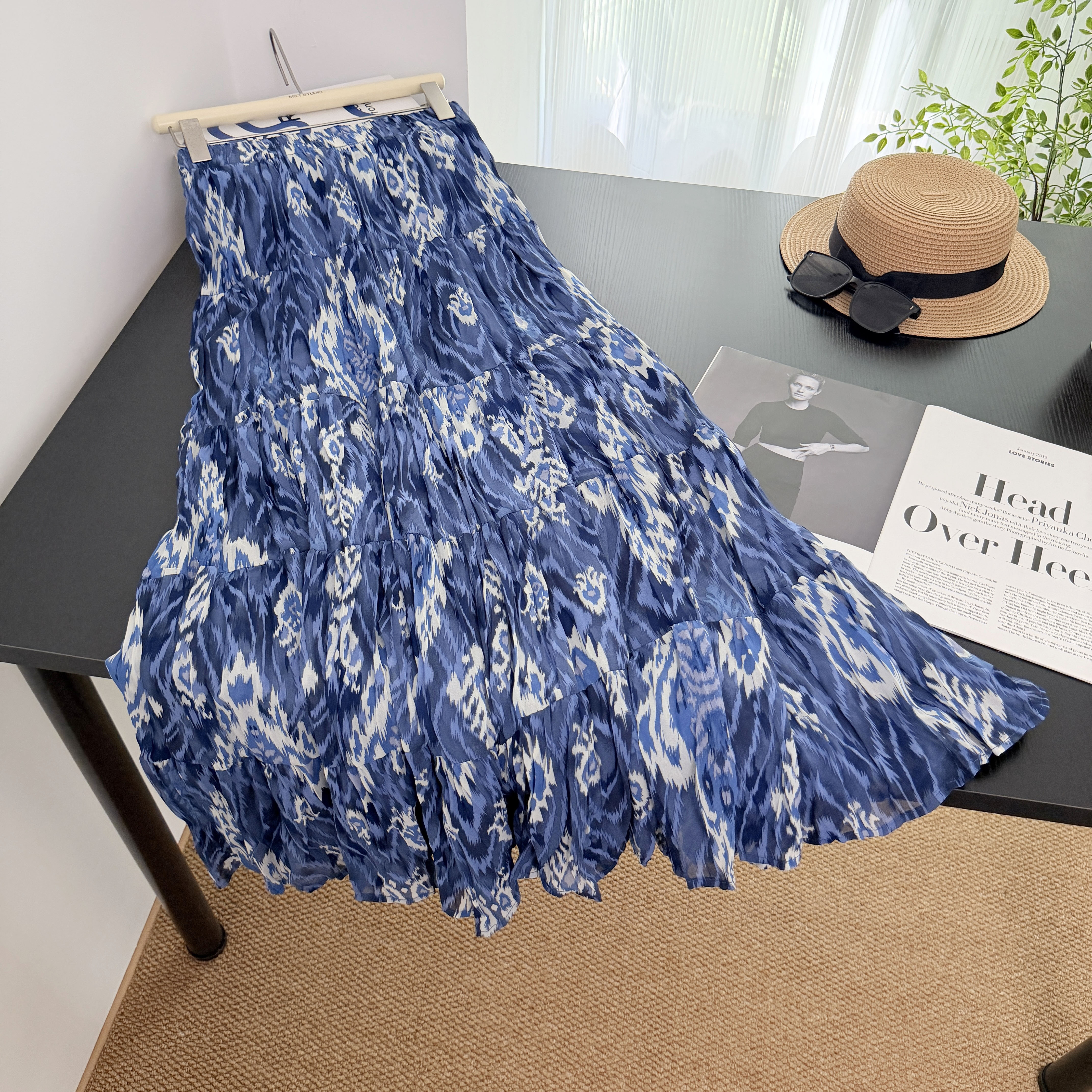 실사 보헤미안 바람 레트로 프린트 A라인 스커트 26 년 여름 새로운 프랑스식 디자인 센스 루즈핏 반신 스커트