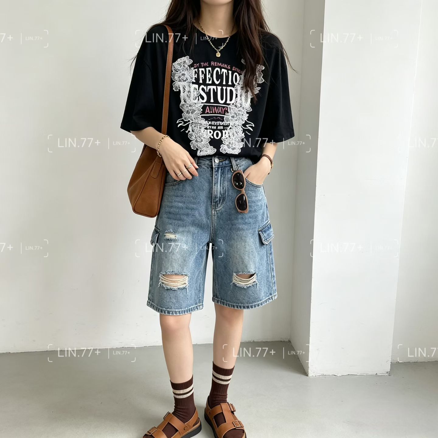 열세 개 2026 여름 새로운 레이스 자수 패치워크 루즈핏 라운드 넥 반팔 알파벳 티셔츠 여성