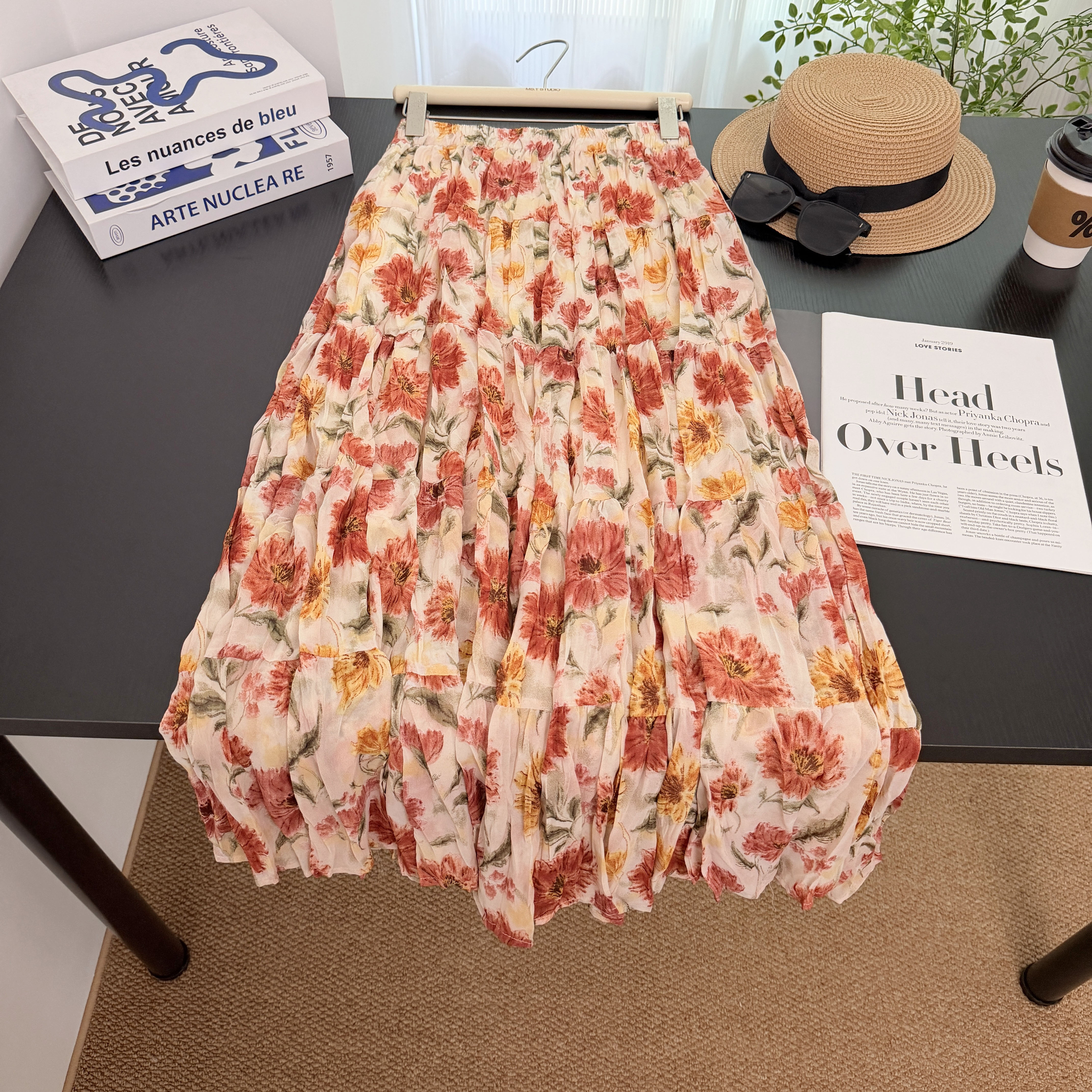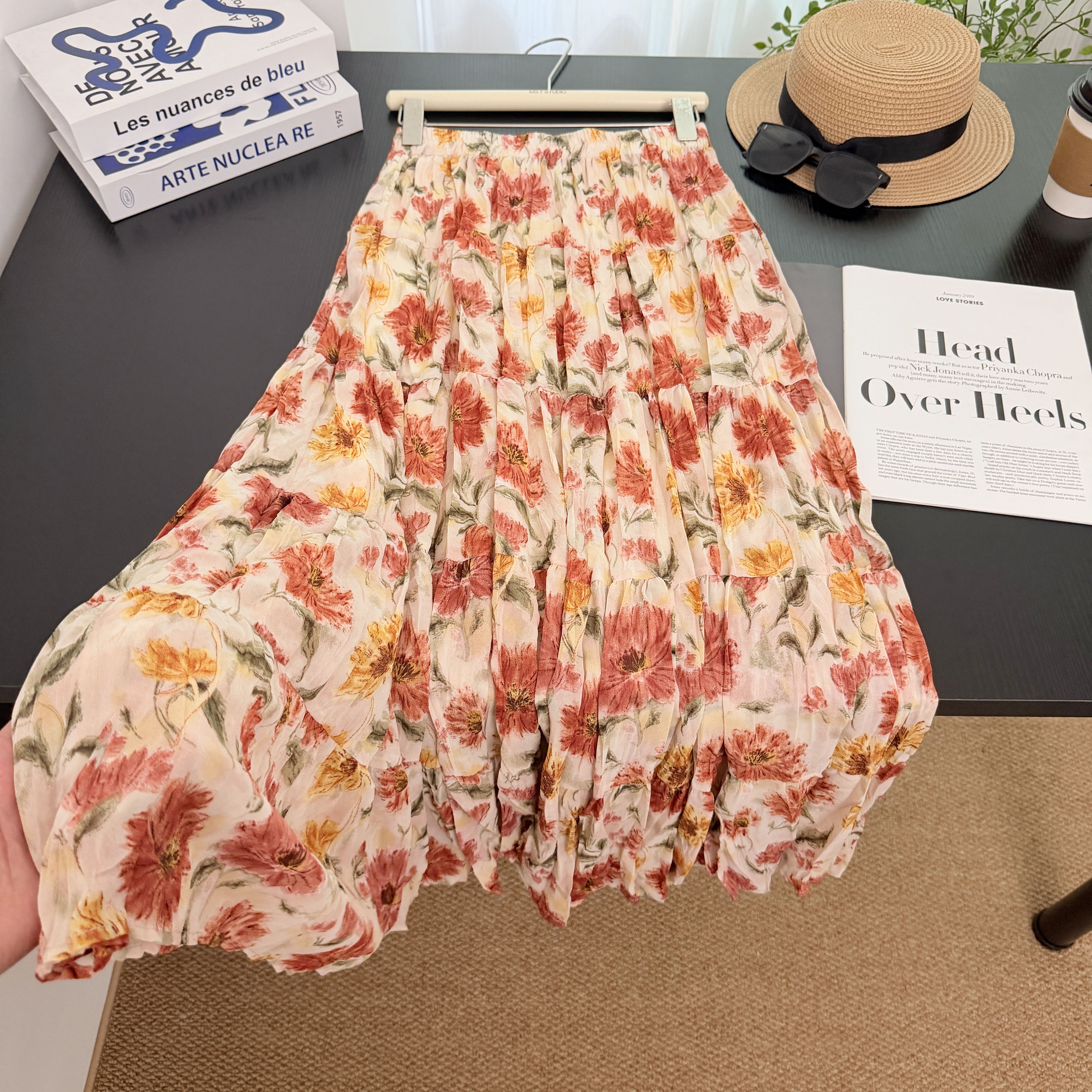 프랑스식 색상 꽃무늬 반신 스커트 여성 여름 새로운 작은 키 루즈핏 슬림해 보이는 한 마디 도파민 아름다운 롱 스커트