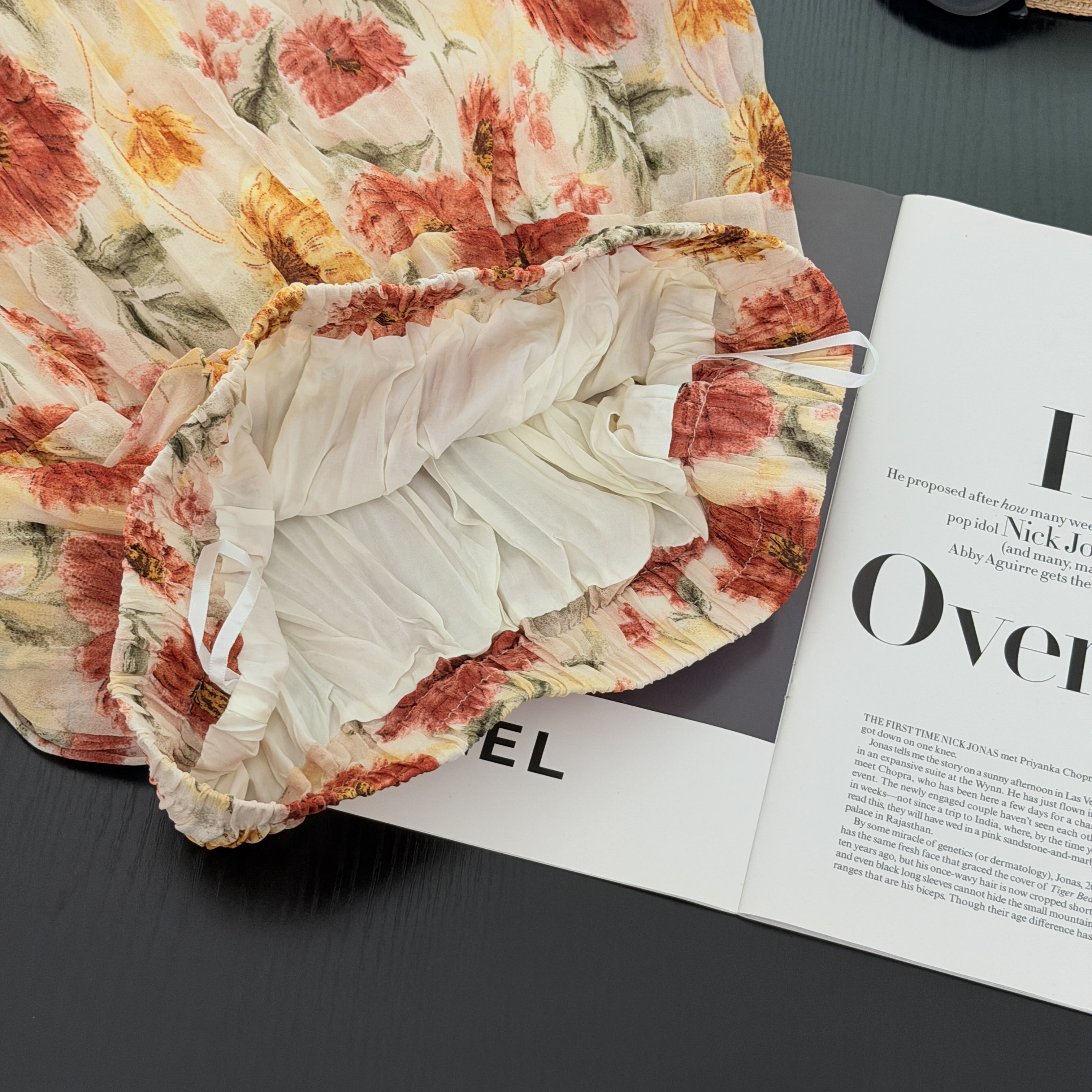실사 2026 프랑스식 레트로 패치워크 꽃무늬 큰 진자 쉬폰 프린트 주름 하이웨이스트 중간 길이 반신 스커트 롱 스커트