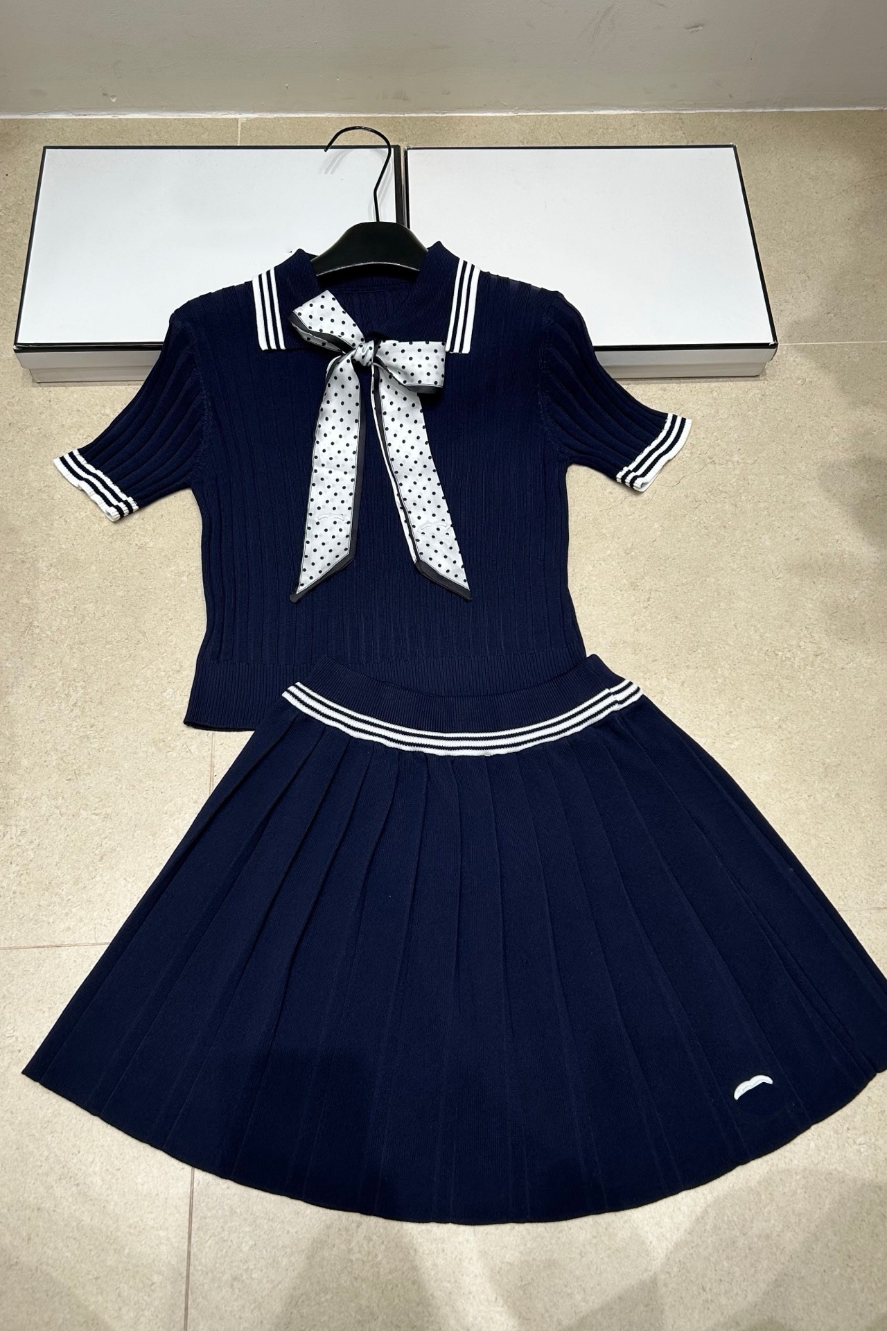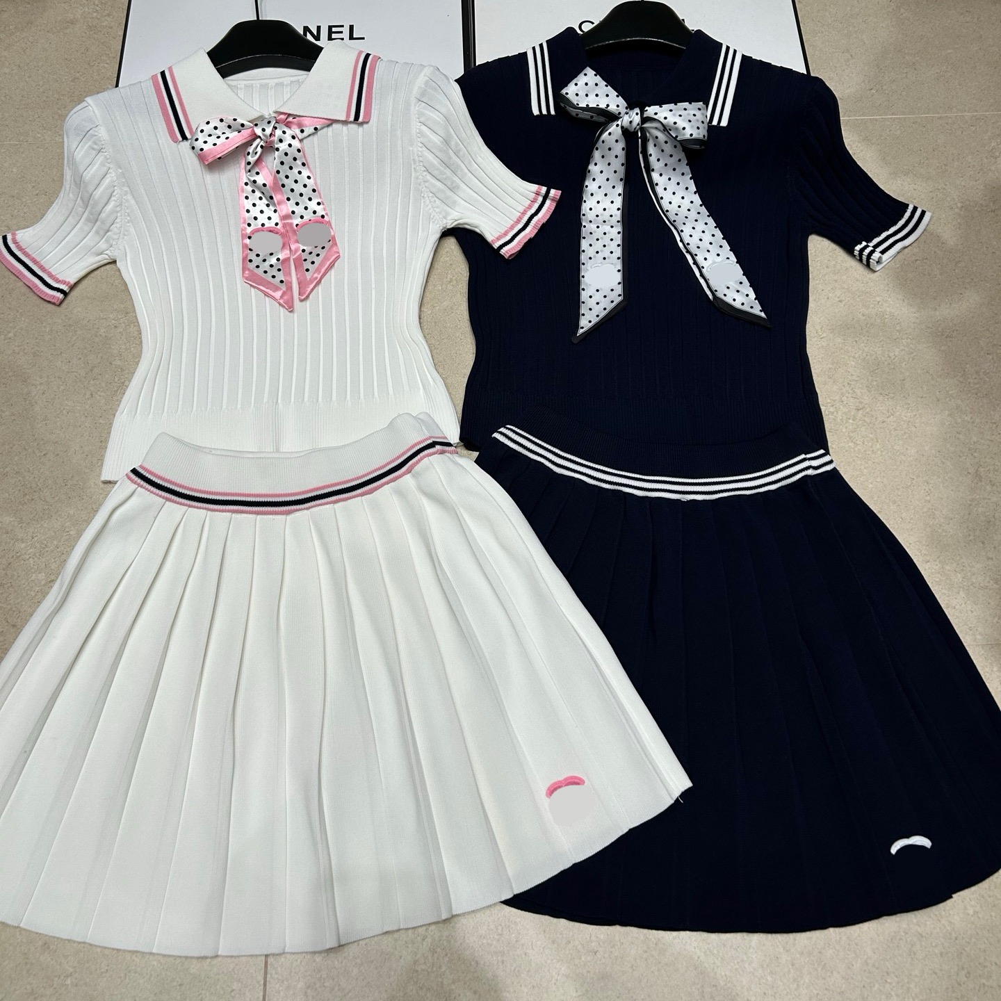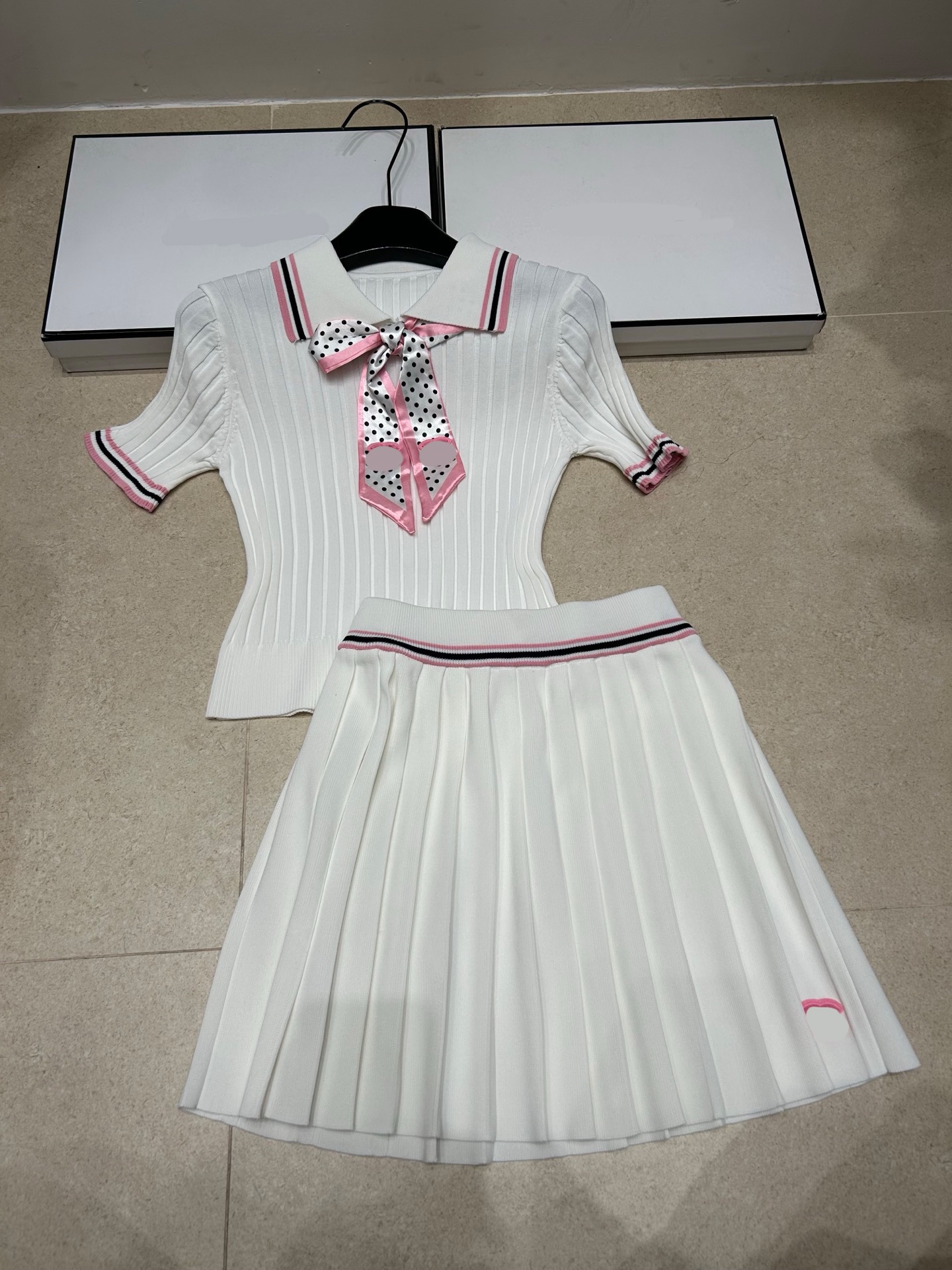 2026 년 여름 새로운 니트 향기로운 카드 도트 무늬 스카프 반팔 풀오버 반 스커트 다용도 트렌디 제품 투피스 슈트