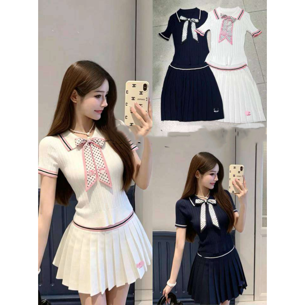 2026 슈퍼 화재 착용 가져 가라. 전체 집합 ootd 착용 가져 가라. 한국 스타일 세트 니트 반팔 플리츠 스커트 니트 스웨터