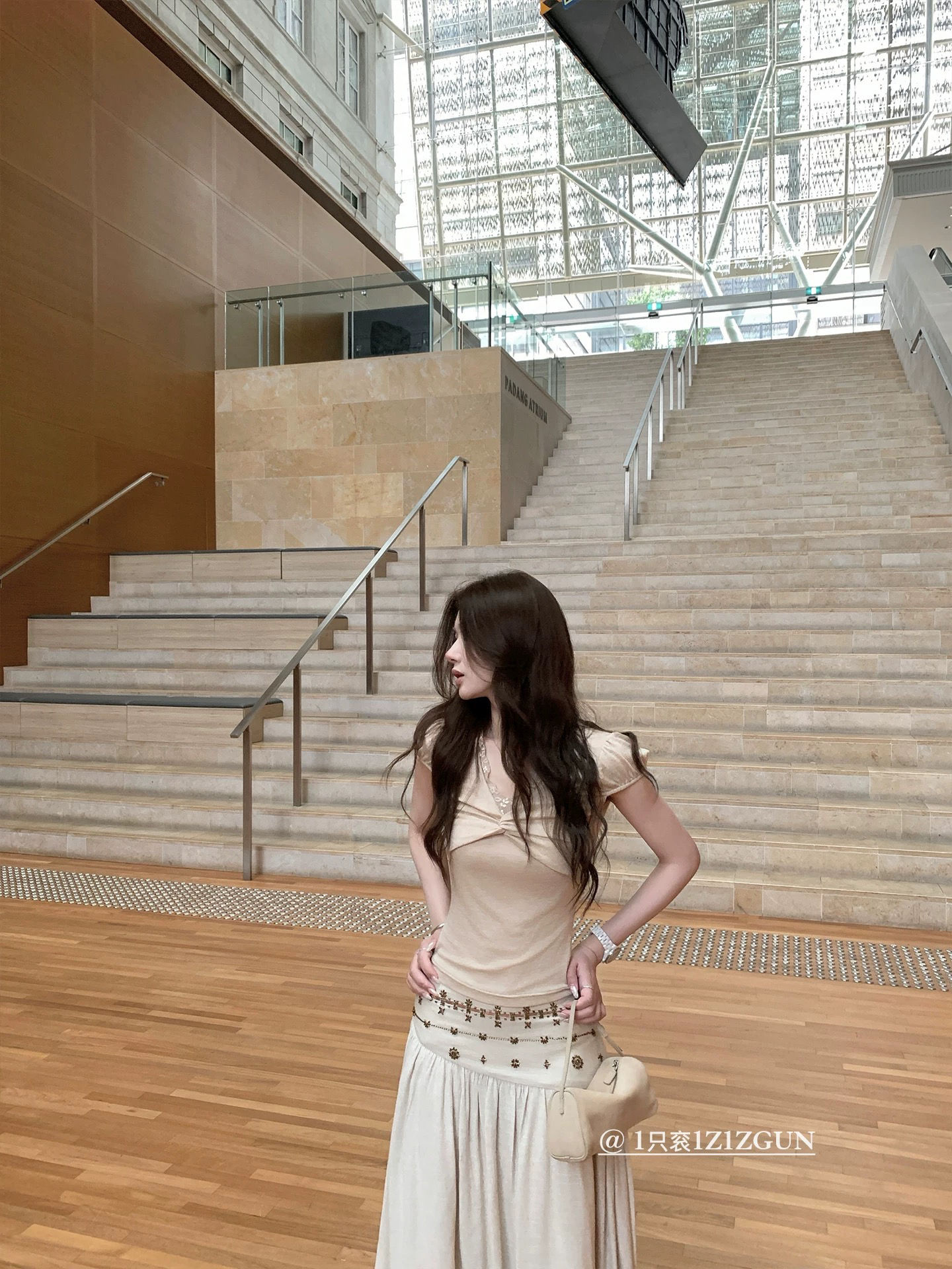 4muggle 단색 쇼트 스타일 V넥 주름 슬립 작은 조끼 여성 여름 아메리칸 레트로 핫걸 몸매 가꾸기 맨위