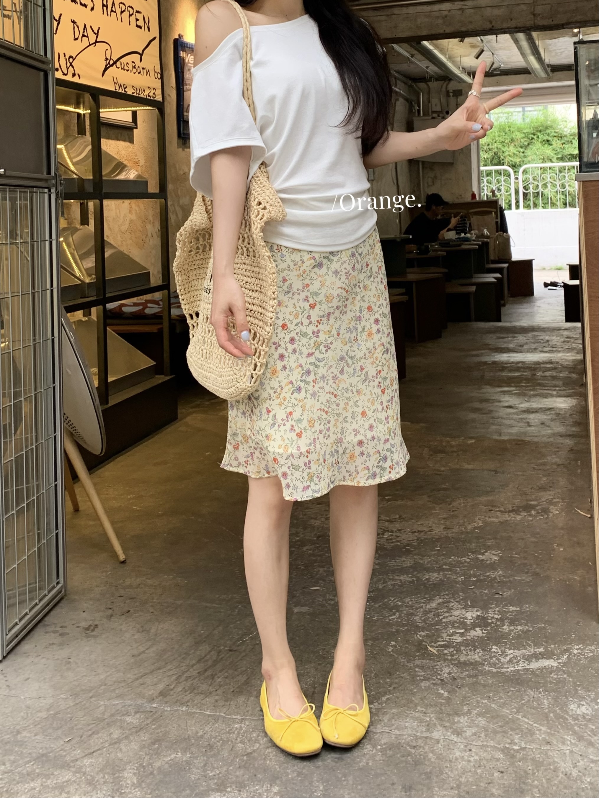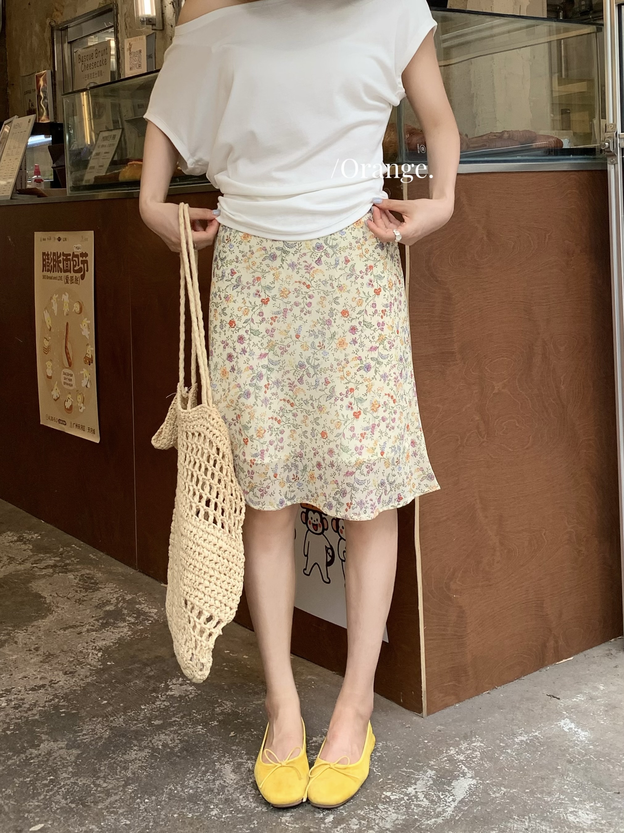 실사 정가 다채로운 황색 꽃무늬 루즈핏 반신 스커트 중간 길이 스커트