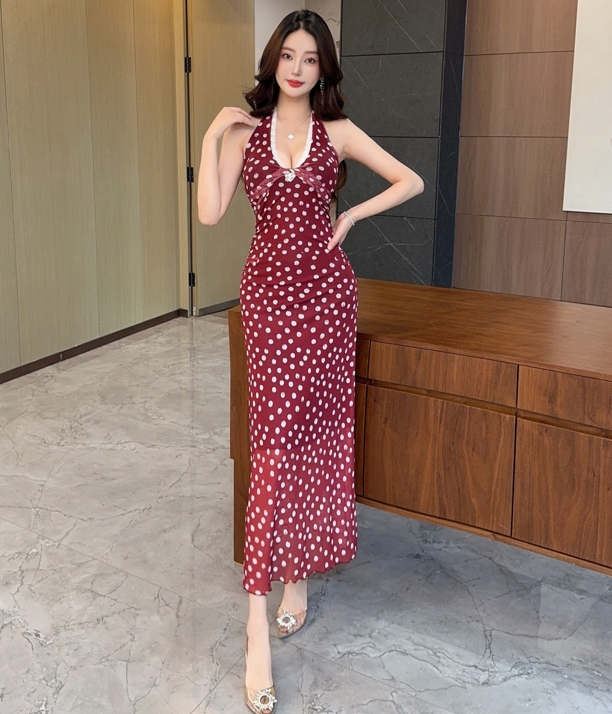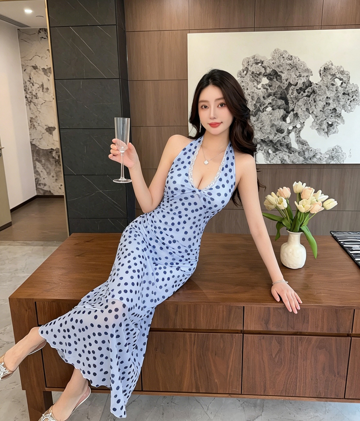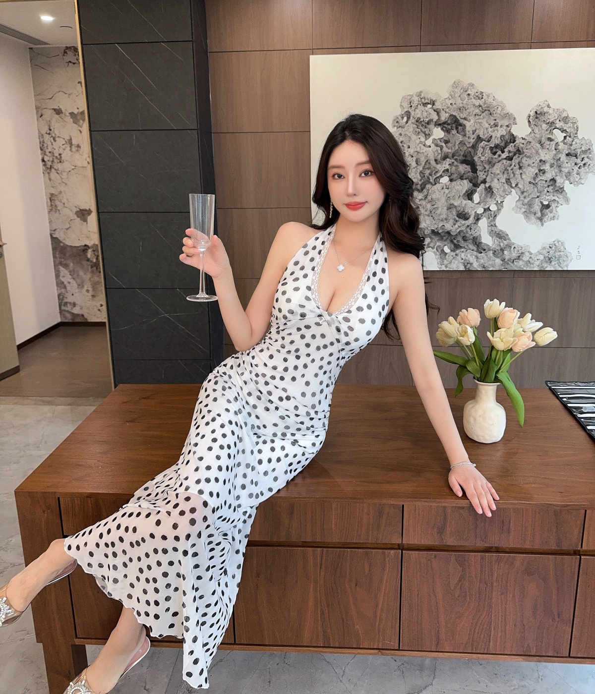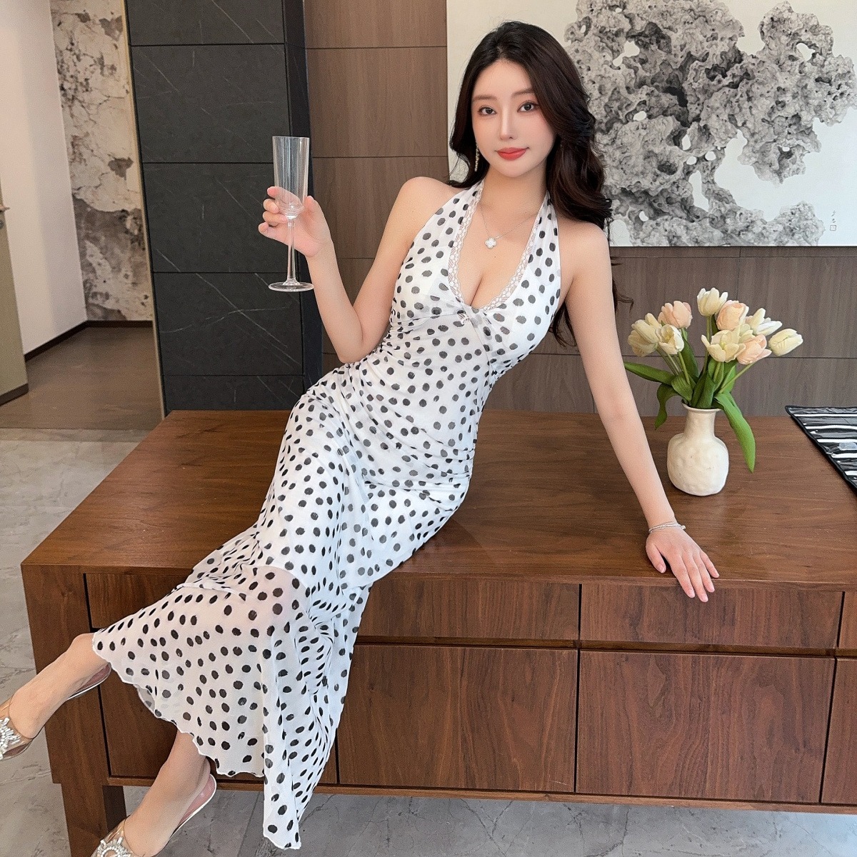 실사 섹시함 로얄 자매 바람 V넥 백리스 인어 꼬리 롱 스커트 여성 디자인 센스 몸매 가꾸기 슬림해 보이는 슬립 타이트 스커트 드레스