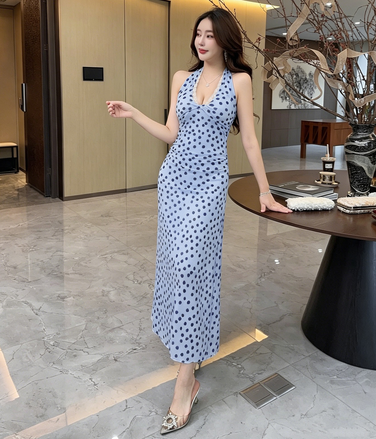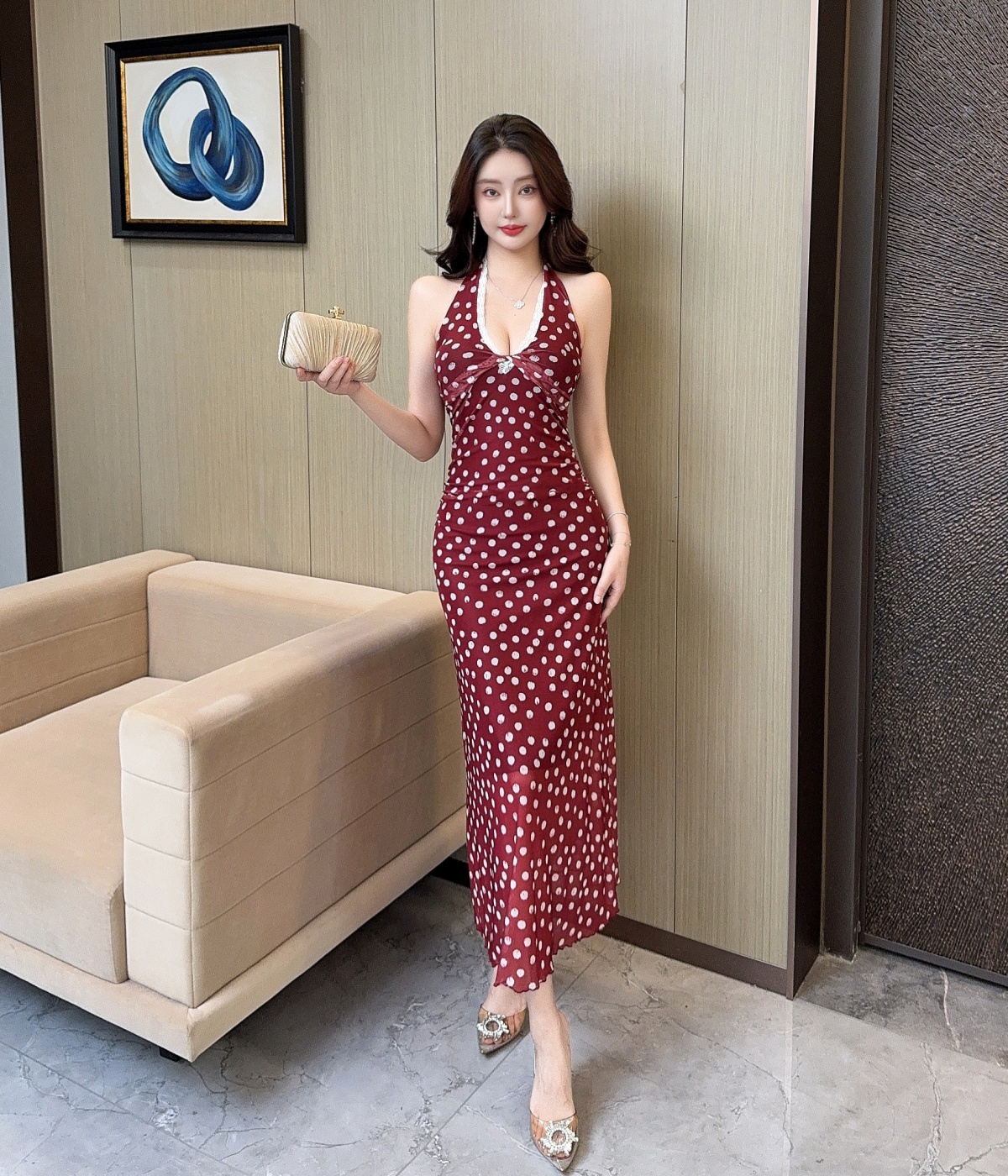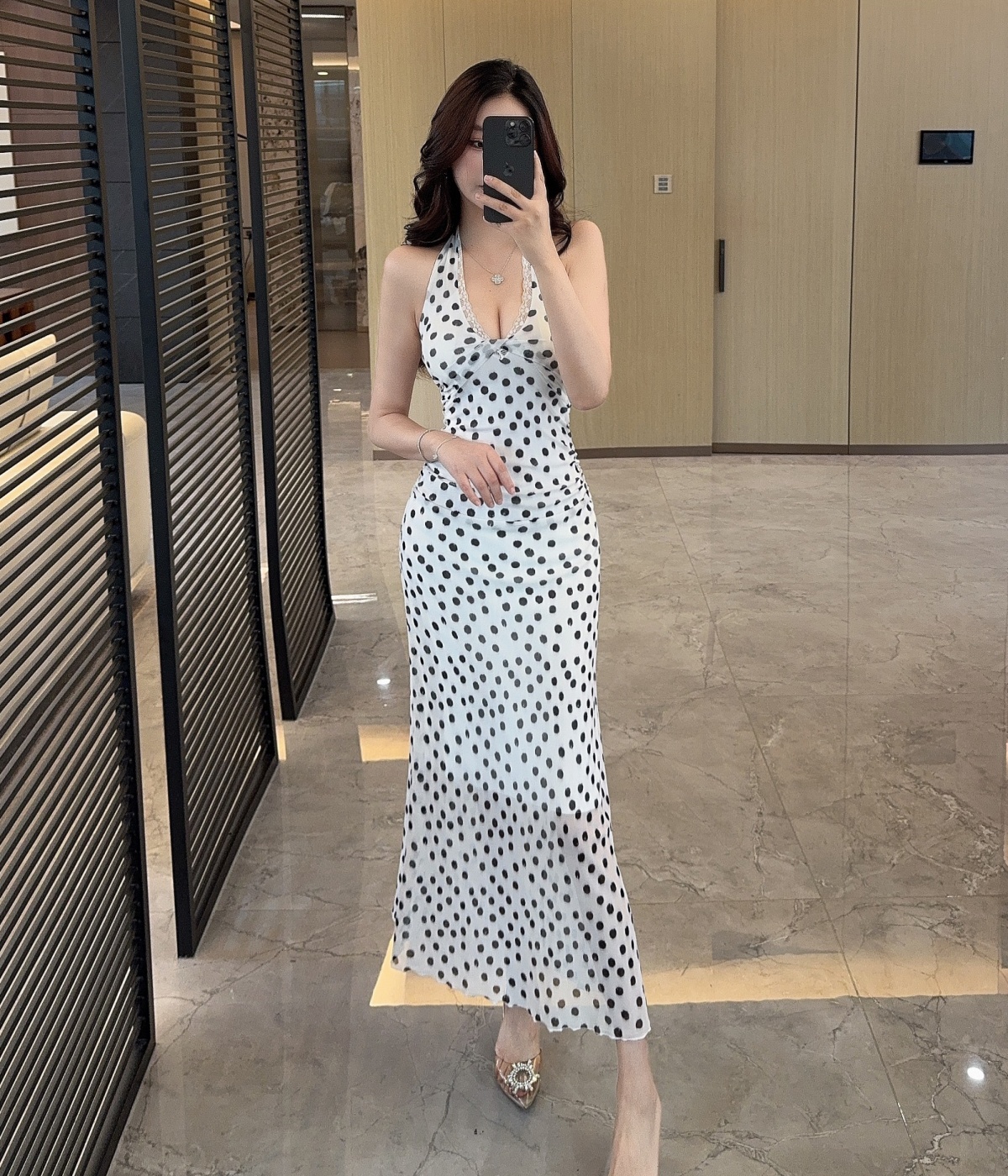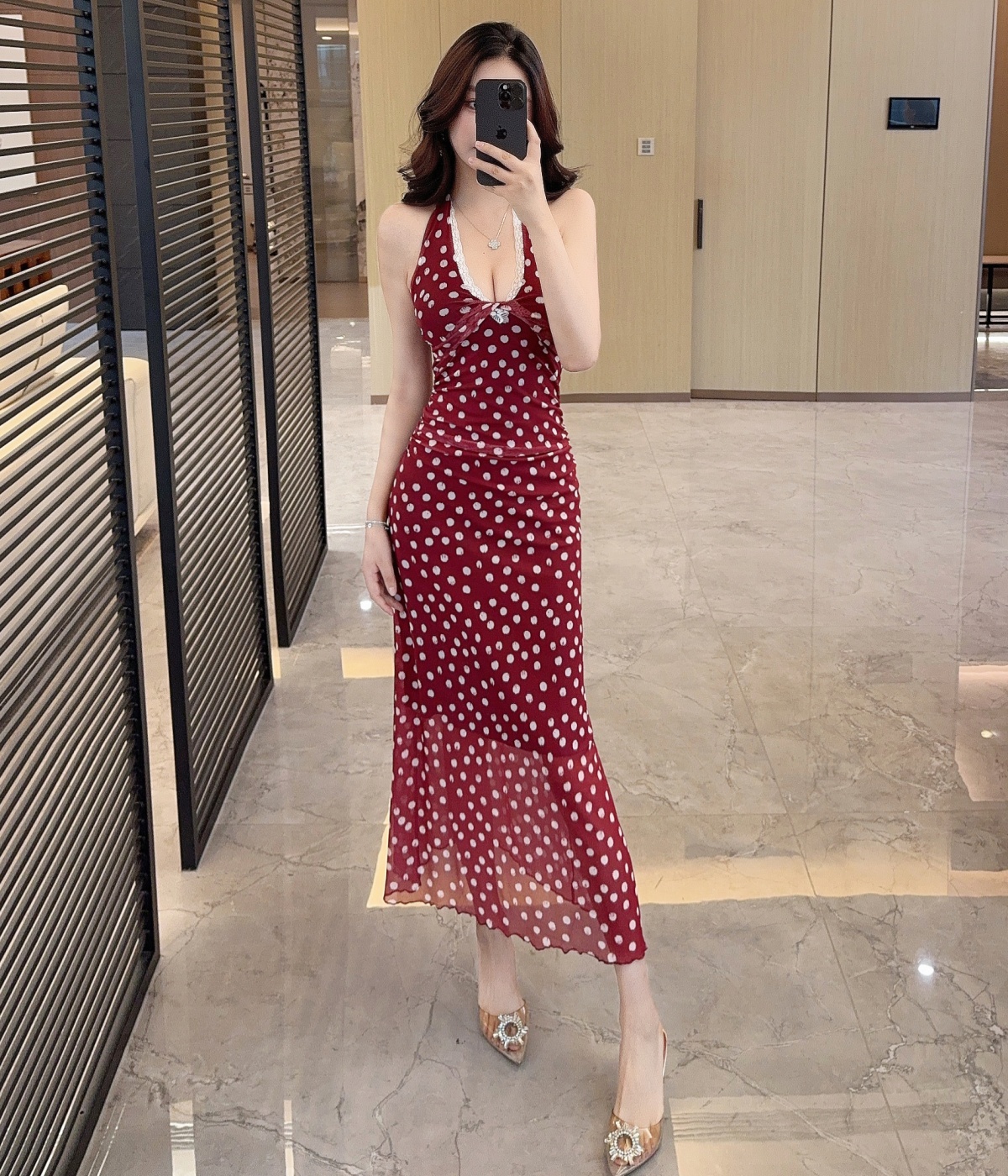 실사 섹시함 로얄 자매 바람 V넥 백리스 인어 꼬리 롱 스커트 여성 디자인 센스 몸매 가꾸기 슬림해 보이는 슬립 타이트 스커트 드레스