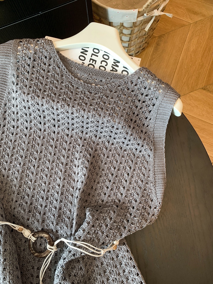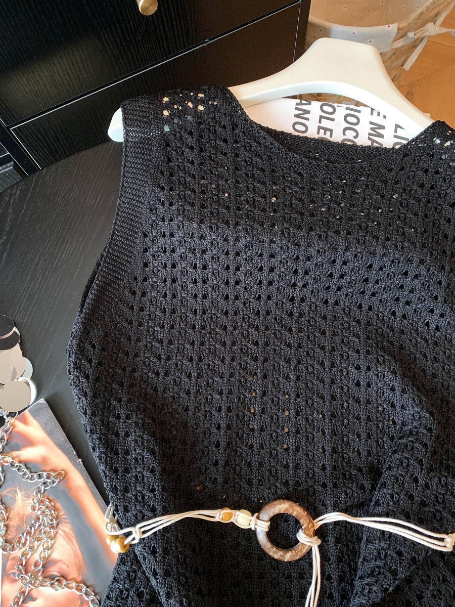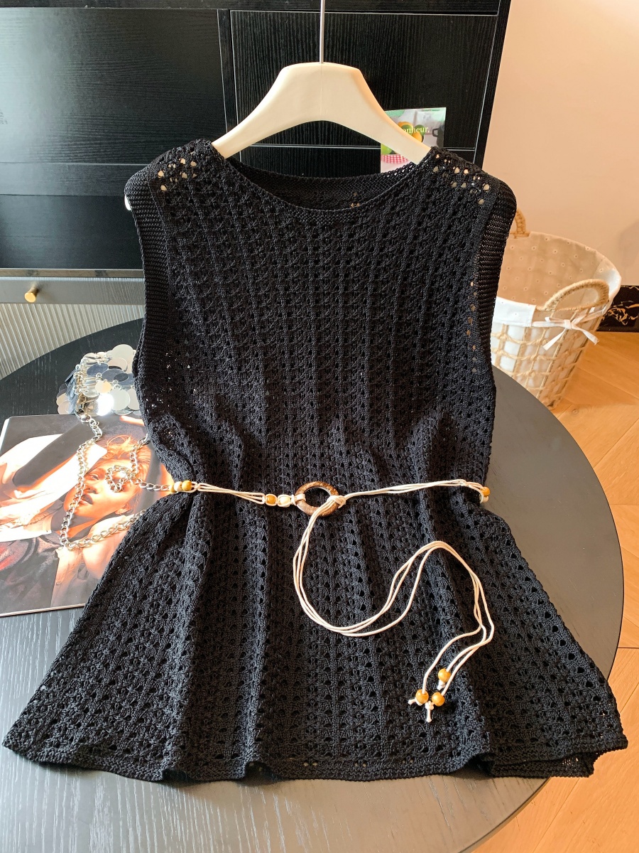 빛 럭셔리 바람 홀로우 아웃 니트 조끼 여성 여름 외출용 한 부서 고급 센스 라운드 넥 루즈핏 출퇴근 착용 가져 가라. 민소매 맨위