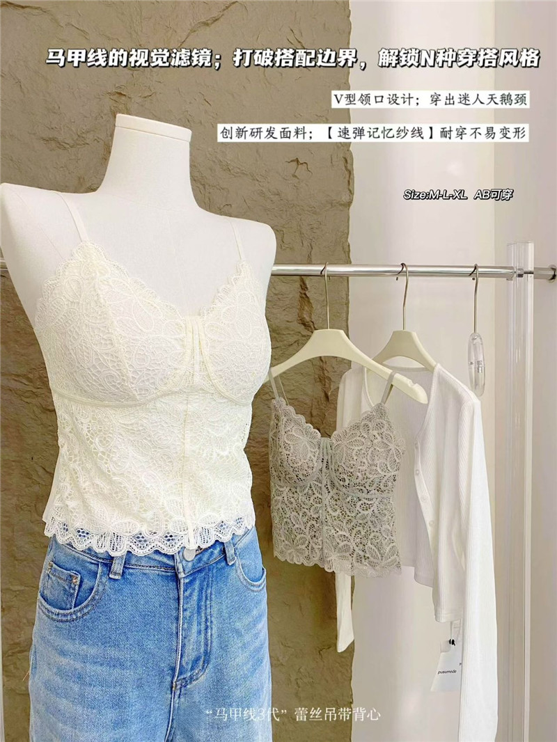 말 라인 3 대 레이스 캐미솔 우아함 프랑스식 없음 흔적 V넥 작은 좋은 어깨끈 허리 수축 슬림해 보이는 슬립