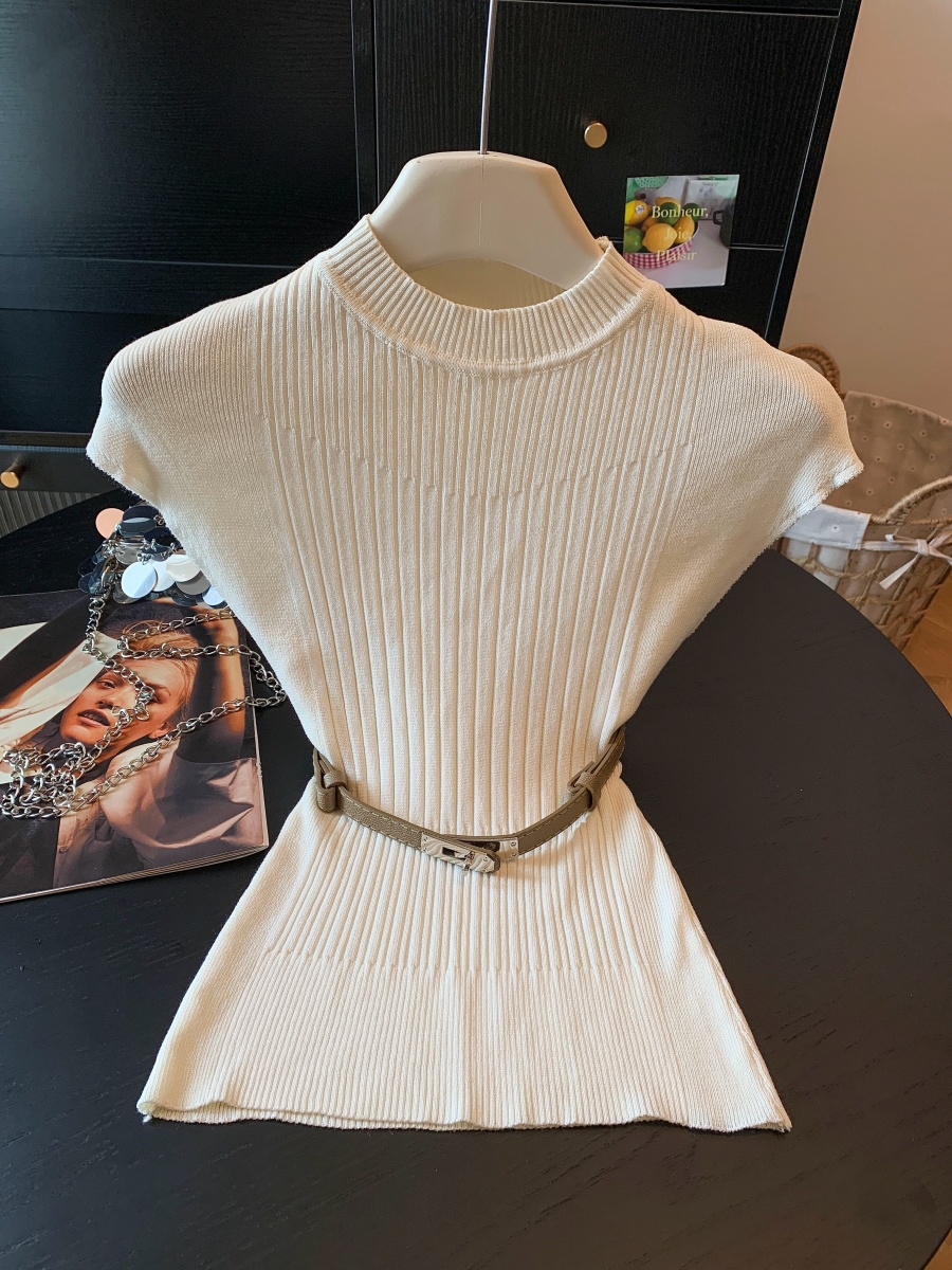 오래된 돈 바람 고급 센스 아마 홀로우 아웃 니트 조끼 외출용 여성 여름 얼음 실크 어깨 핫걸 쇼트 스타일 민소매 맨위