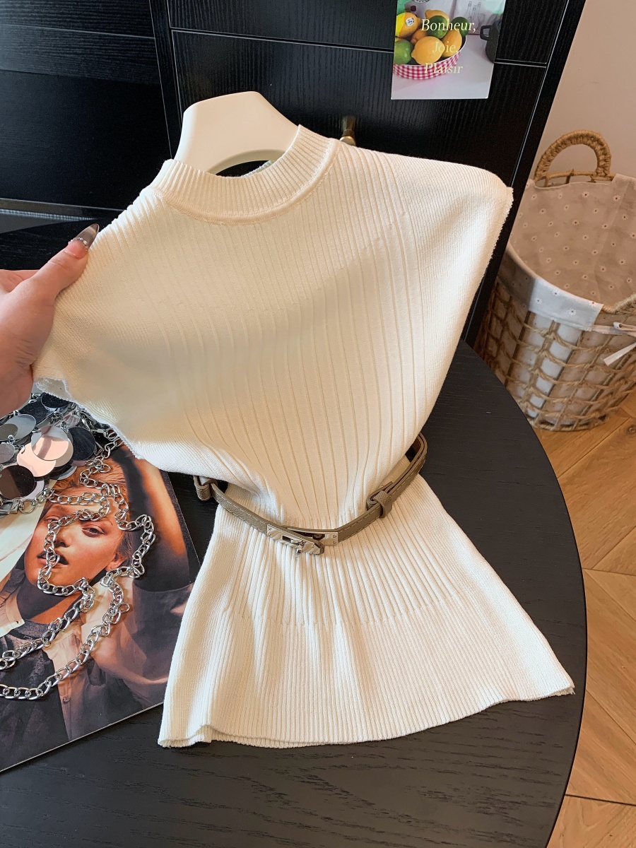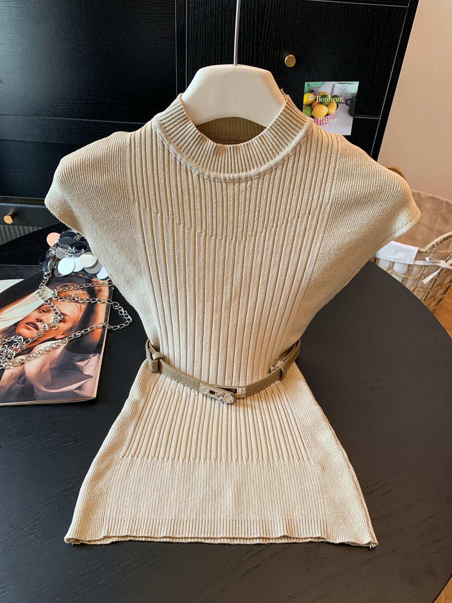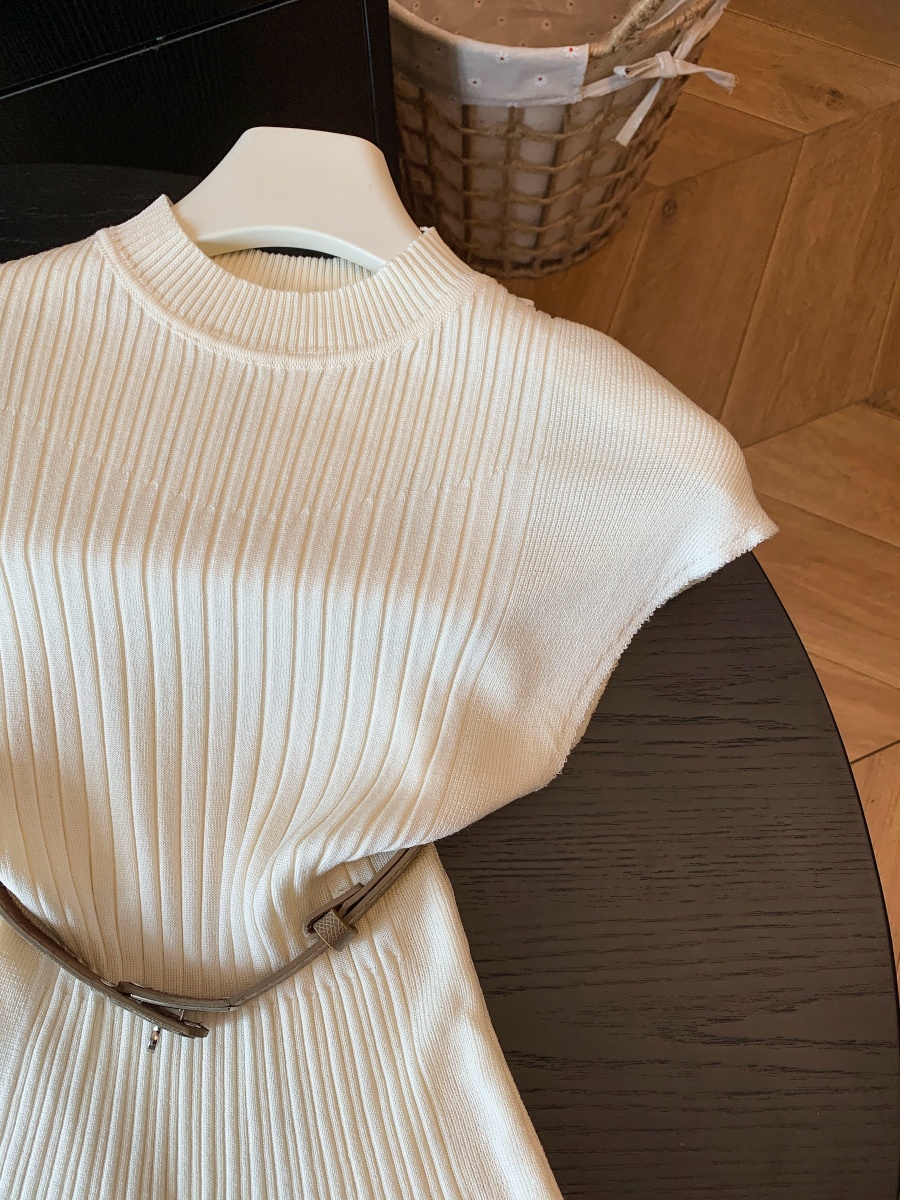 한 부서 미니멀리즘 민소매 니트 여성 드레스 여름 작은 키 가스 질감 디스플레이 높음 슬림해 보이는 핫걸 몸매 가꾸기 미니 스커트