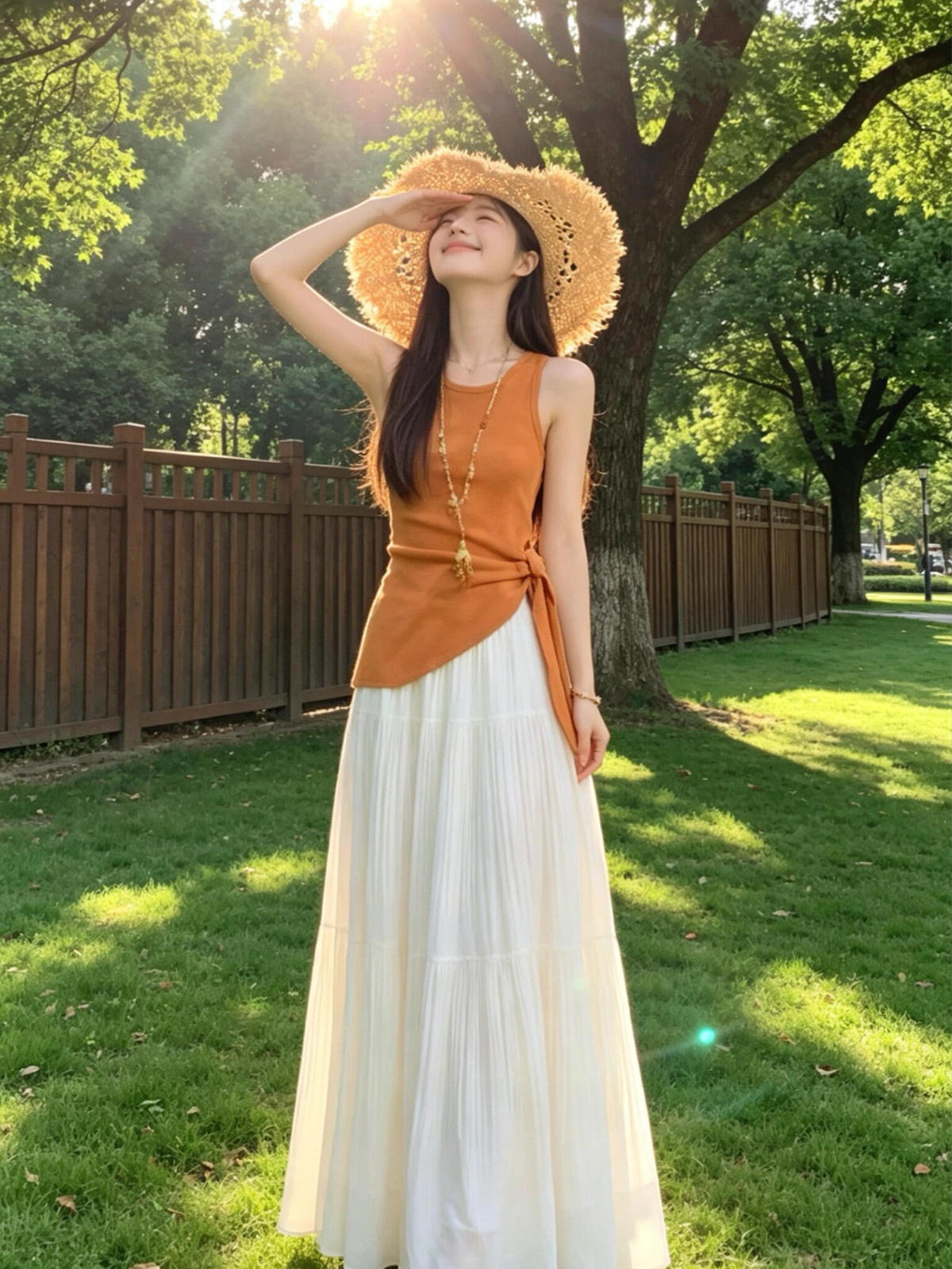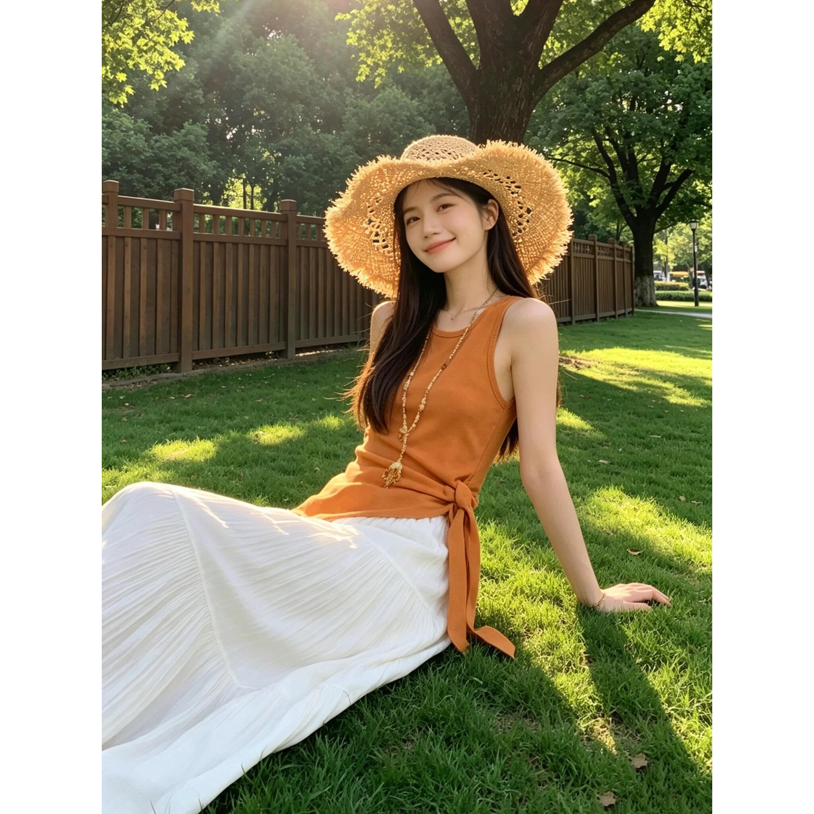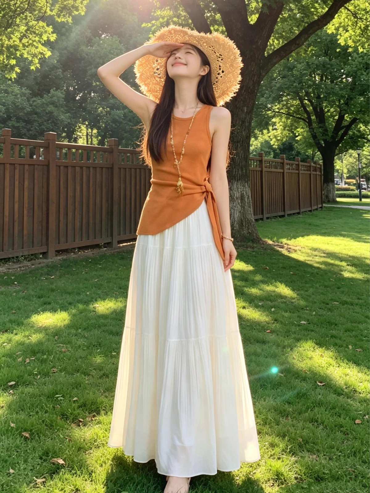 있음 도착 여름 프랑스식 품격 라운드 넥 니트 스웨터 조끼 여성 트임 스트랩 허리 수축 맨위 반신 스커트 여성