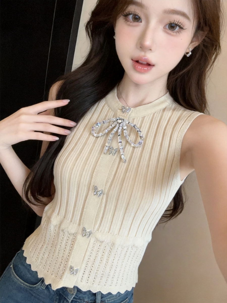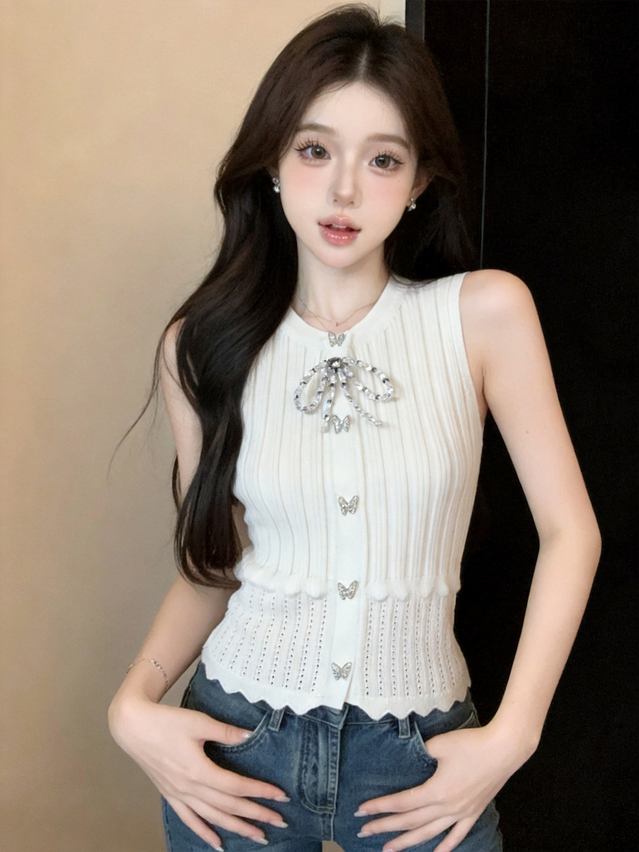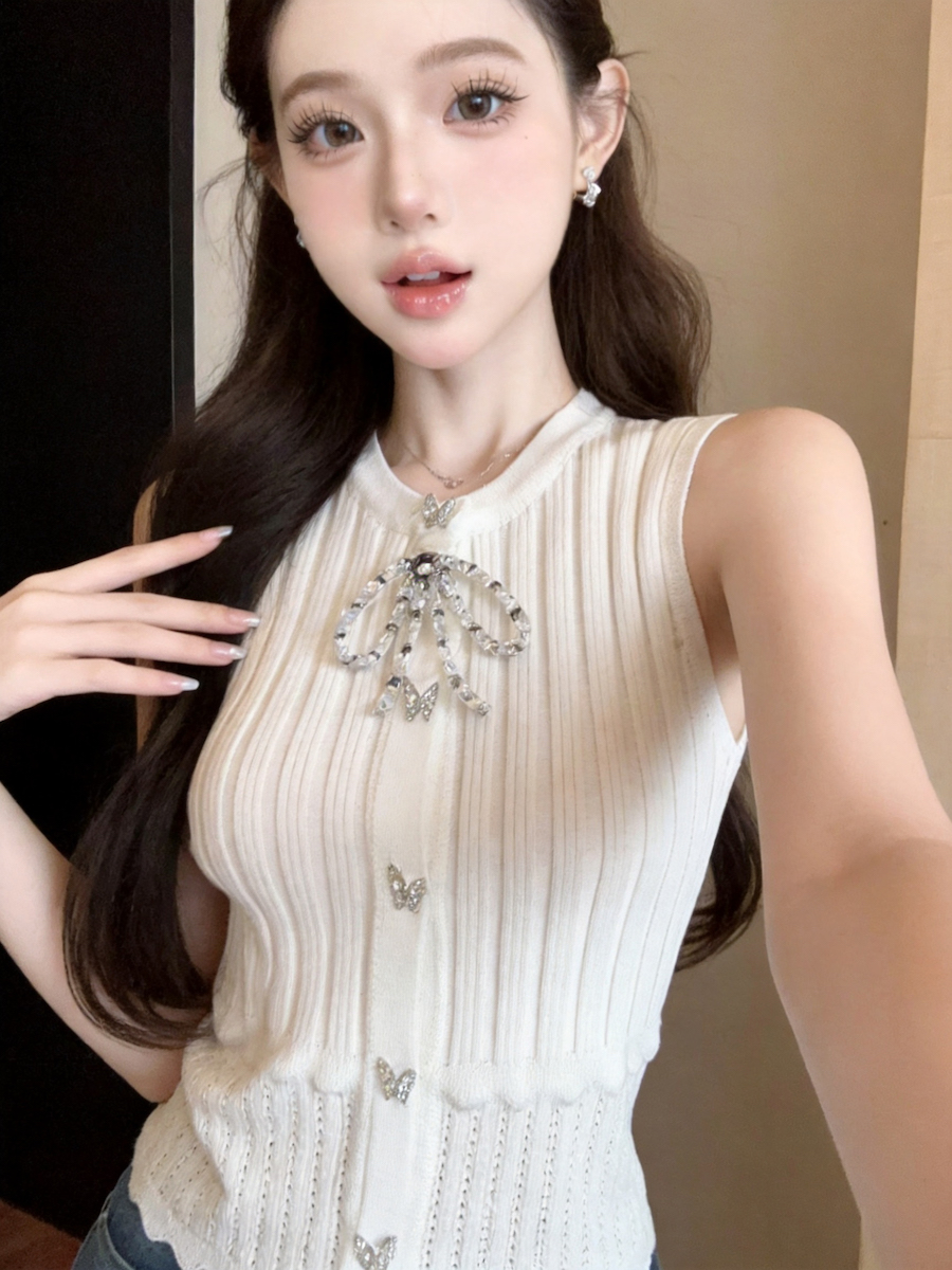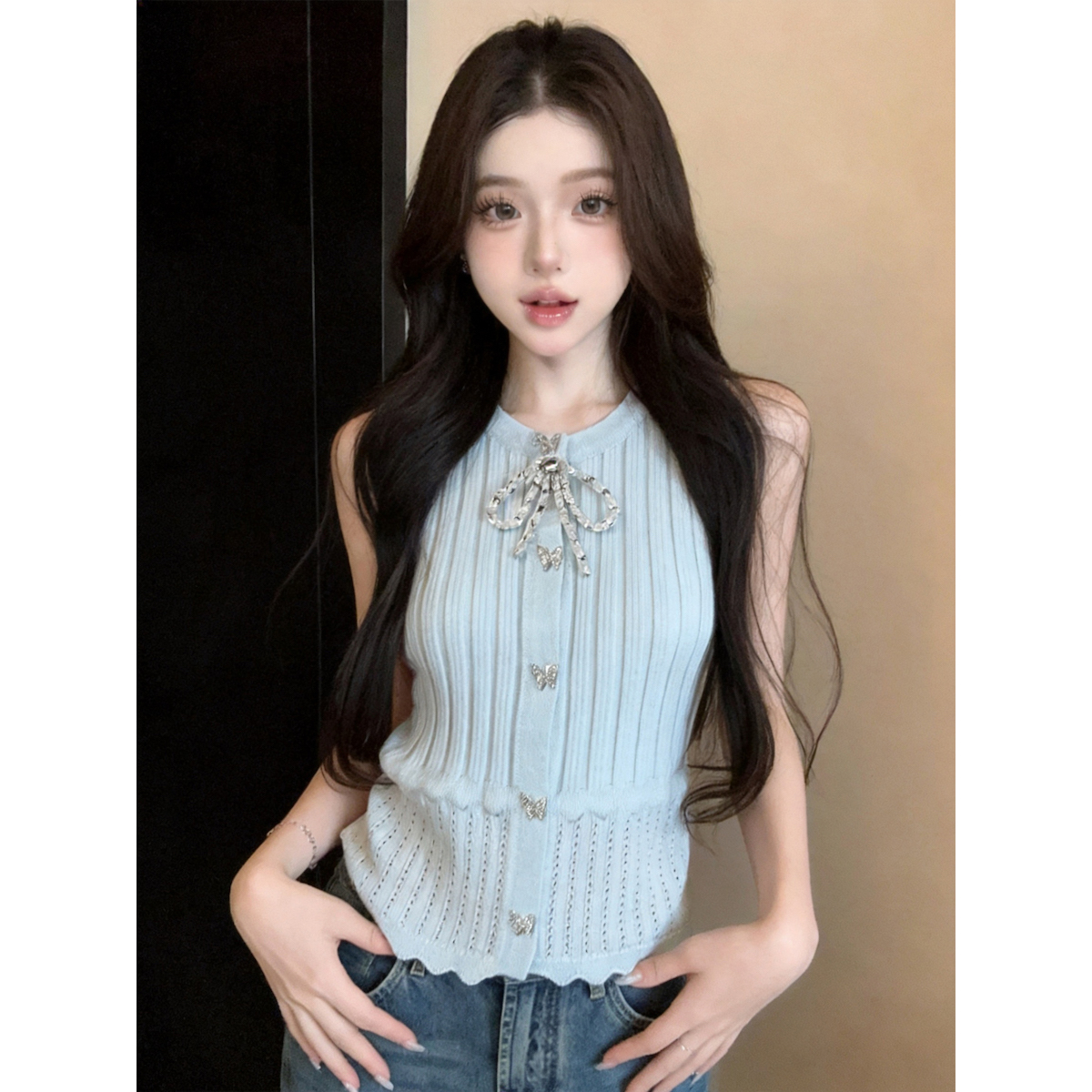 정가 있음 보호 핫걸 행침 목 스와로브스키 민소매 니트 조끼 여성 여름 몸매 가꾸기 슬림해 보이는 외출용 맨위 서비스