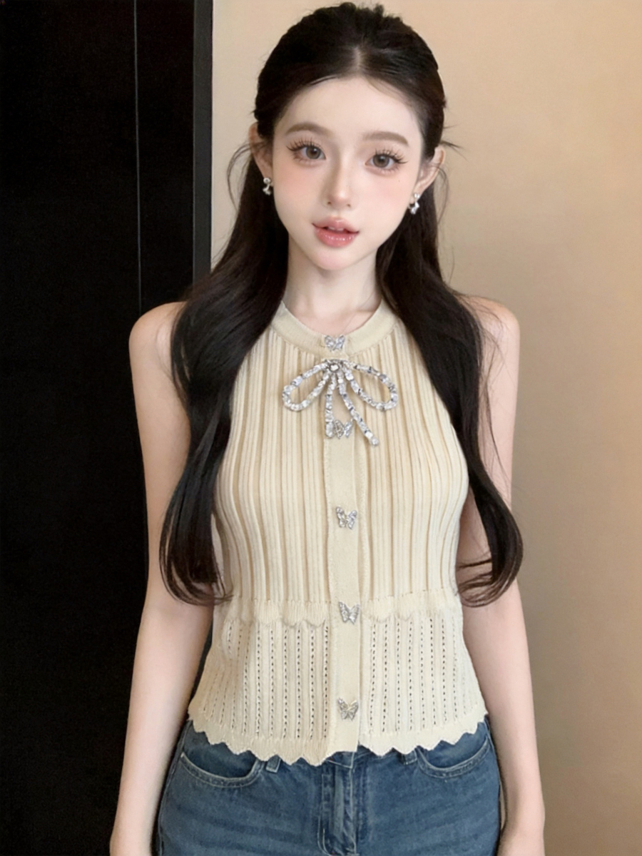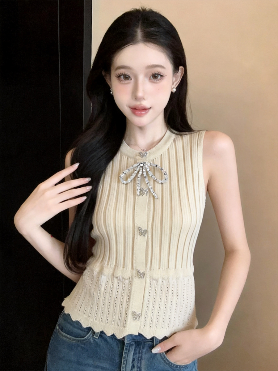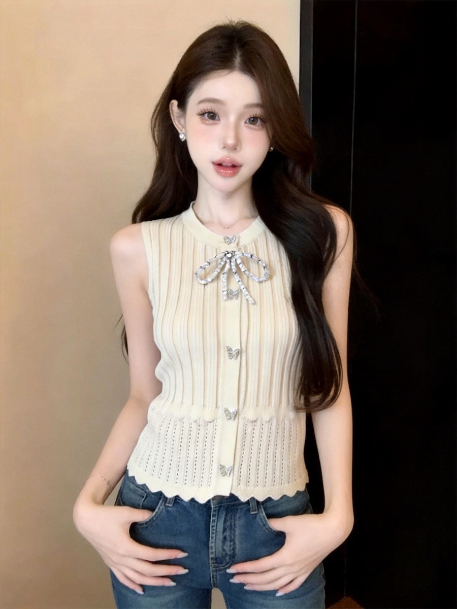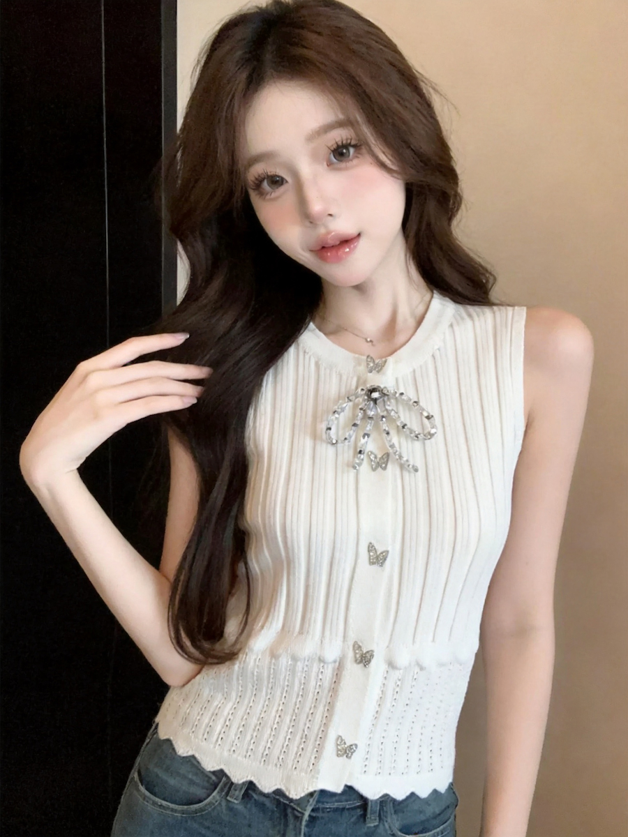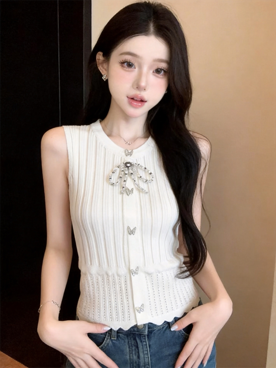 정가 있음 보호 핫걸 행침 목 스와로브스키 민소매 니트 조끼 여성 여름 몸매 가꾸기 슬림해 보이는 외출용 맨위 서비스
