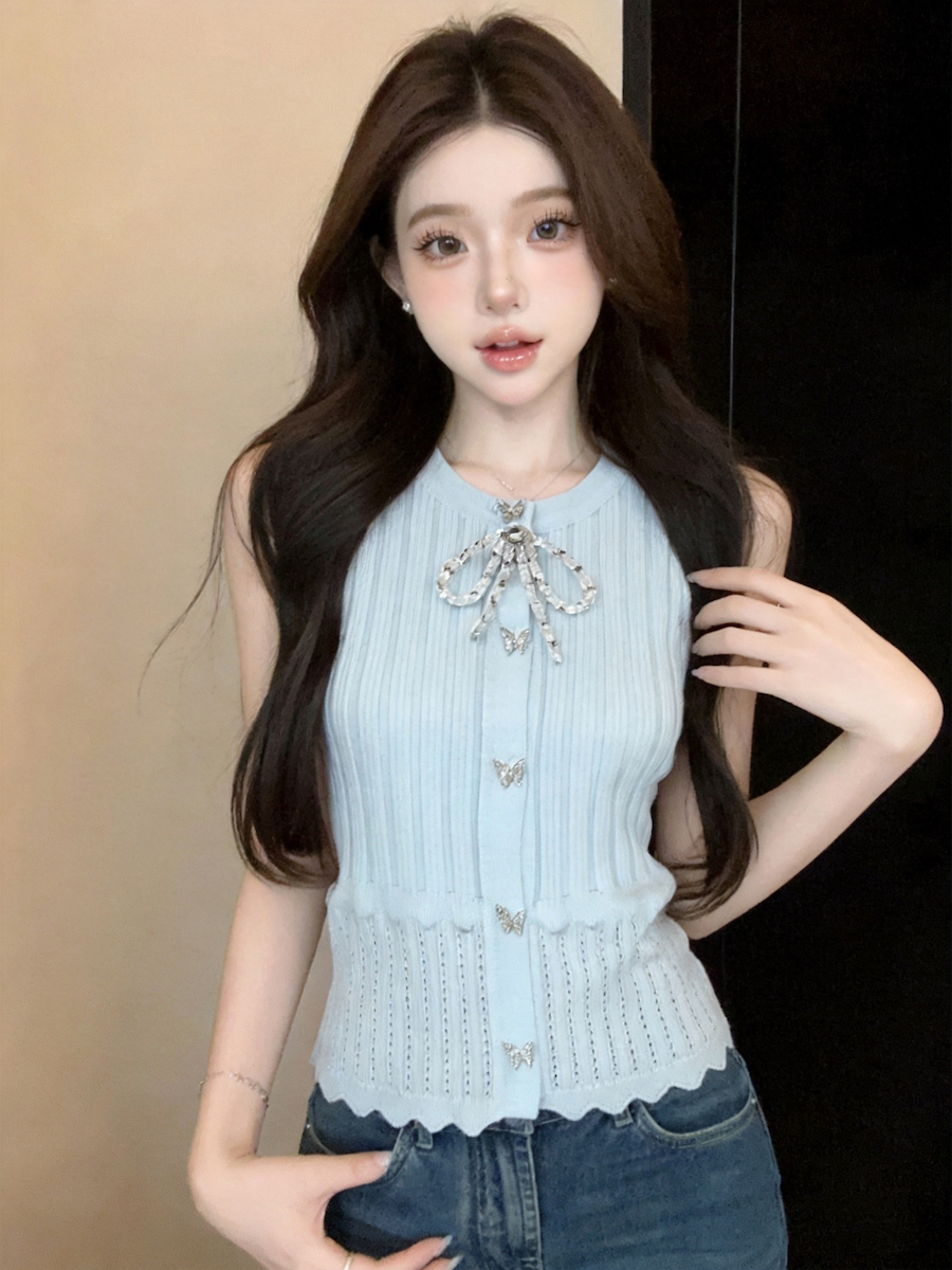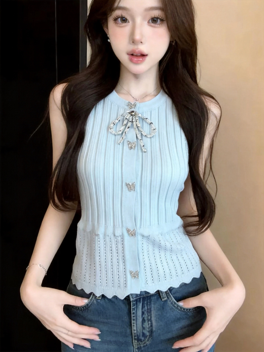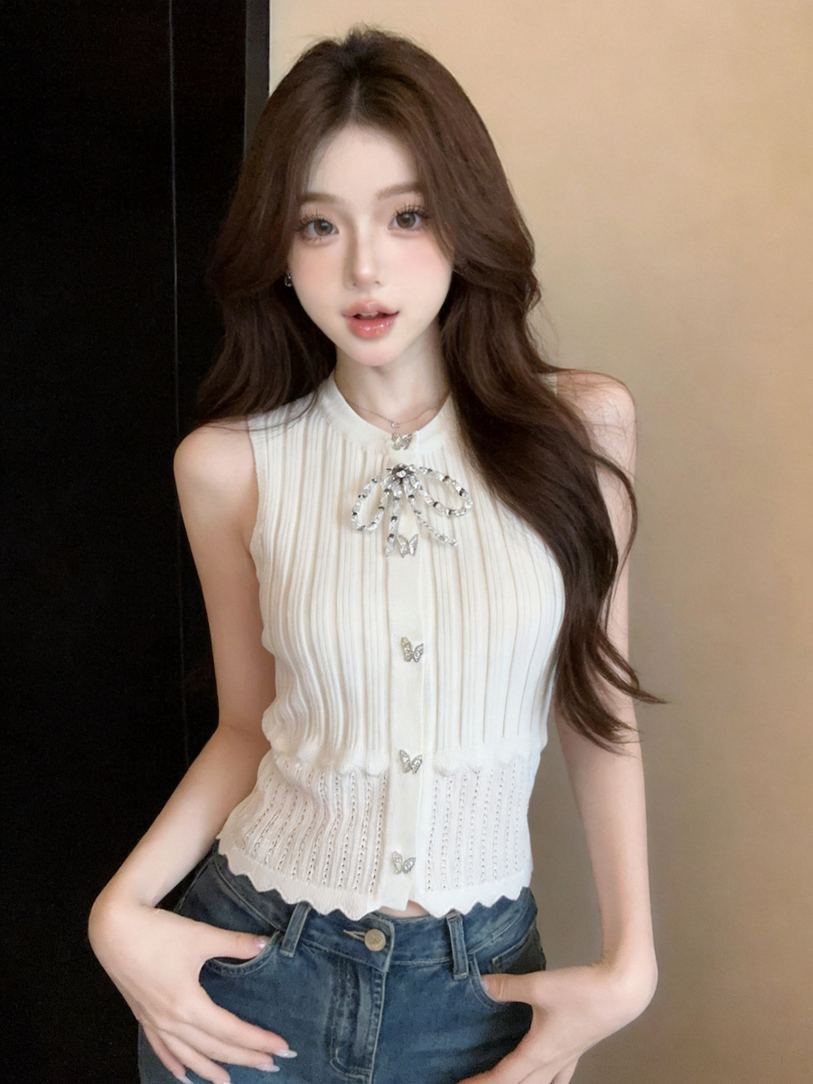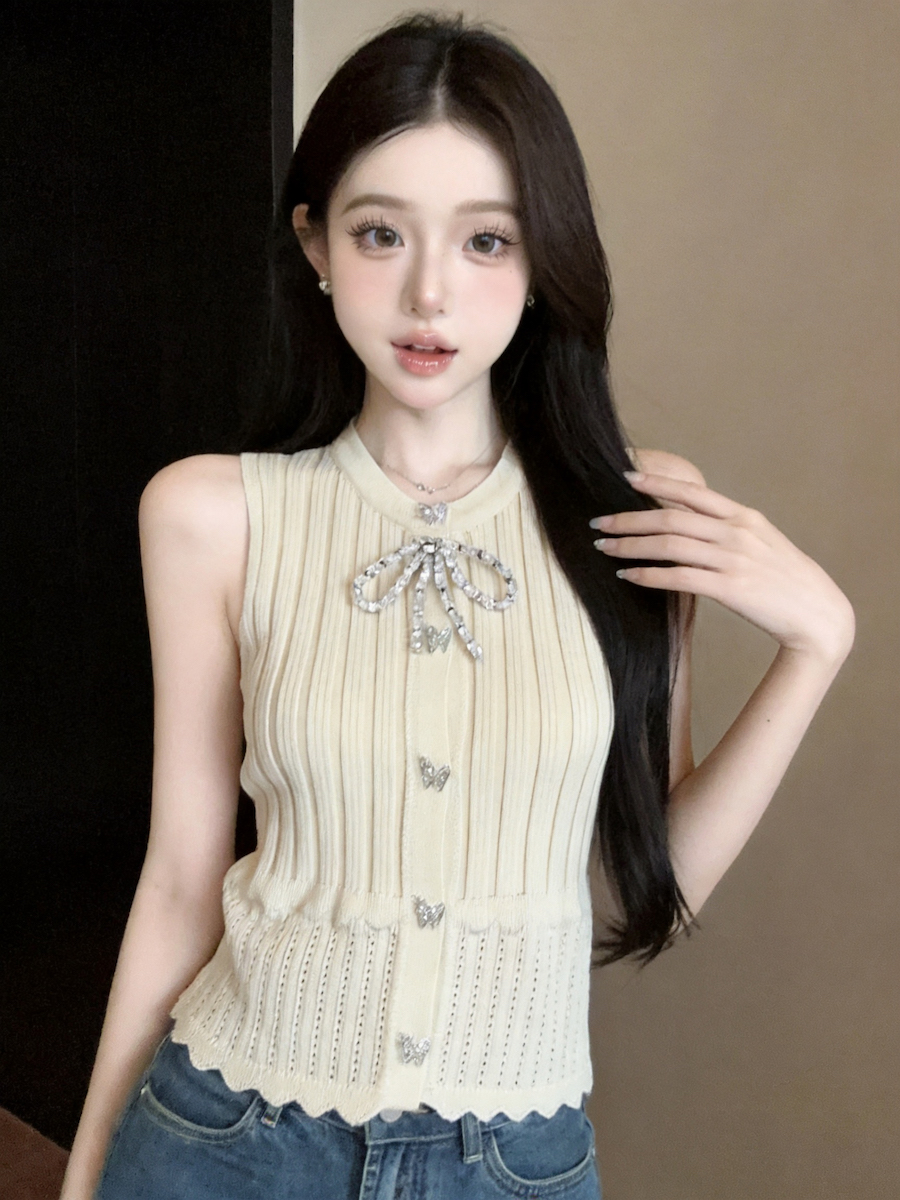 정가 있음 보호 핫걸 행침 목 스와로브스키 민소매 니트 조끼 여성 여름 몸매 가꾸기 슬림해 보이는 외출용 맨위 서비스