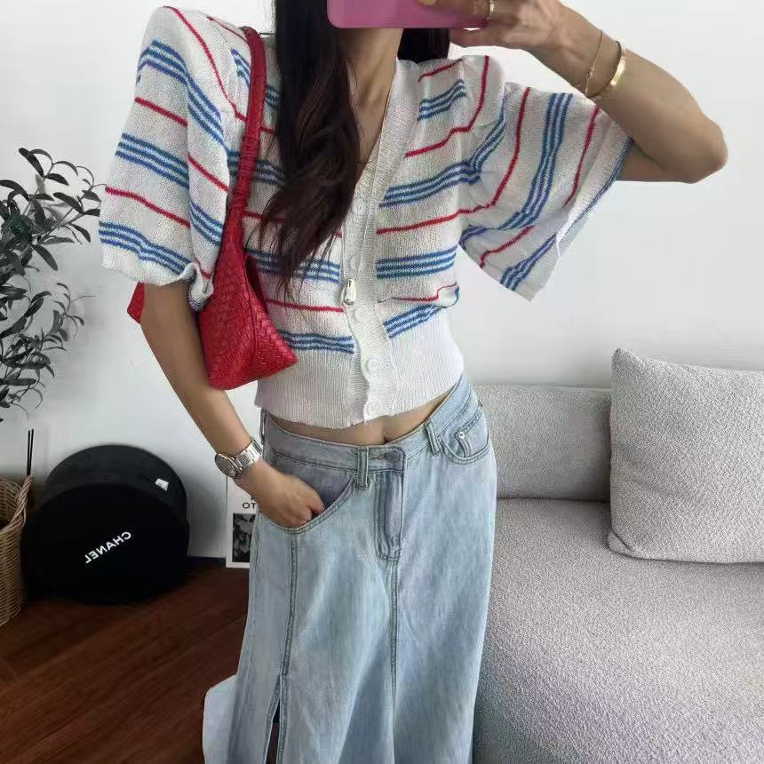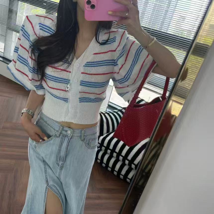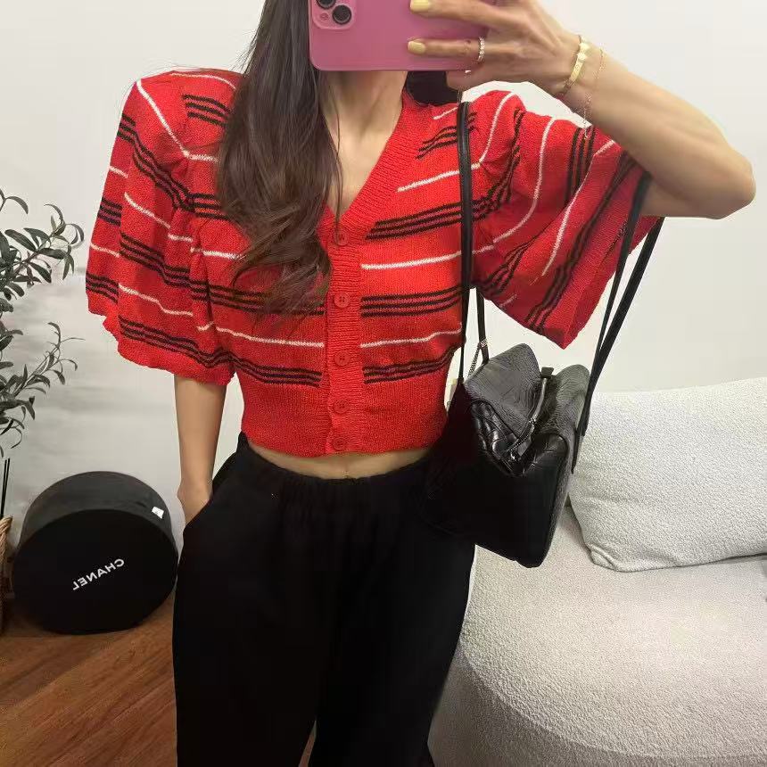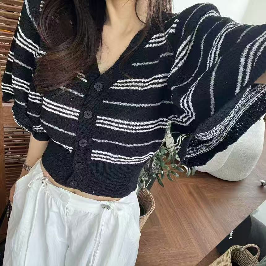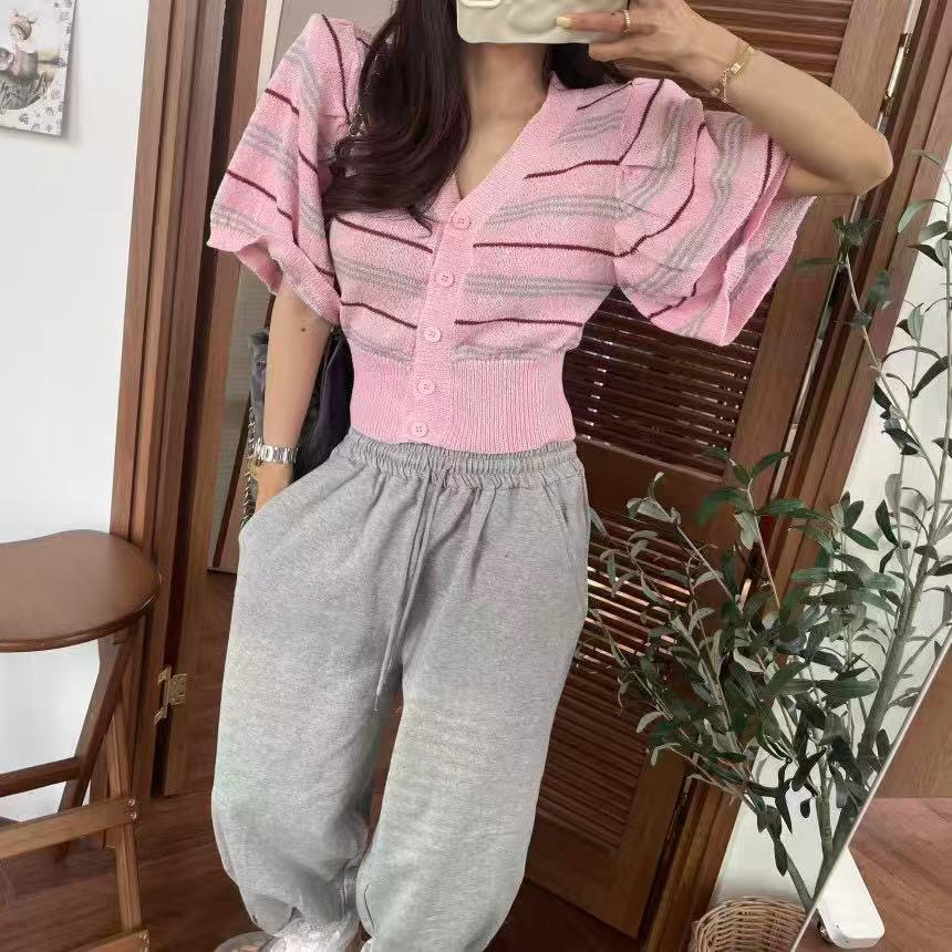재고 있음 한국 동대문 패션 거품 소매 다용도 니트 오픈 가디건 V넥 풀오버 몸매 가꾸기 슬림해 보이는 맨위 여성