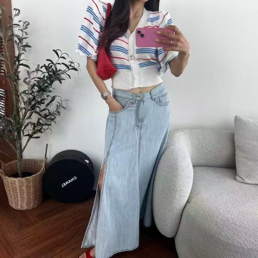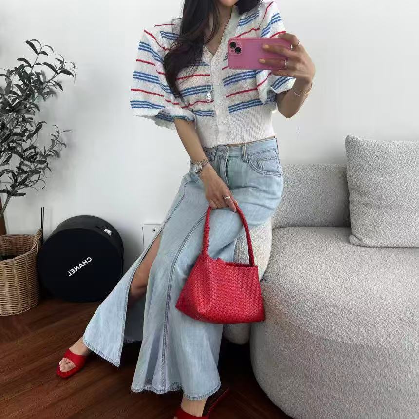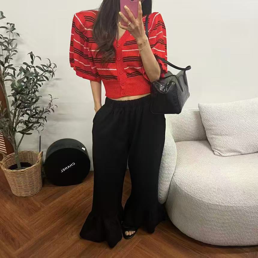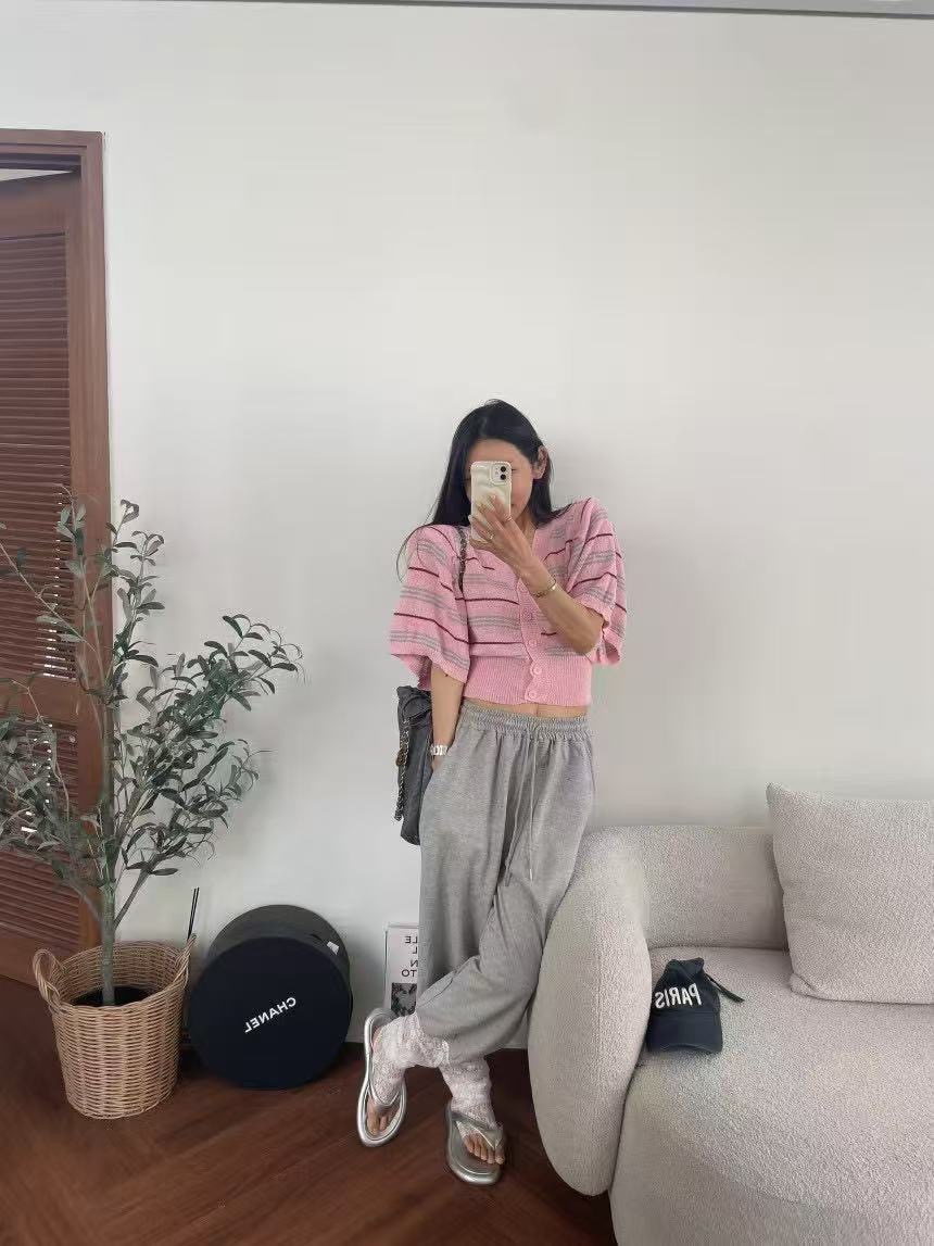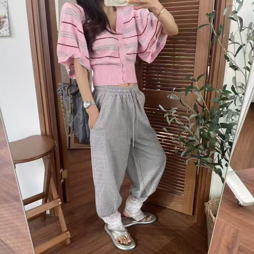 재고 있음 한국 동대문 패션 거품 소매 다용도 니트 오픈 가디건 V넥 풀오버 몸매 가꾸기 슬림해 보이는 맨위 여성