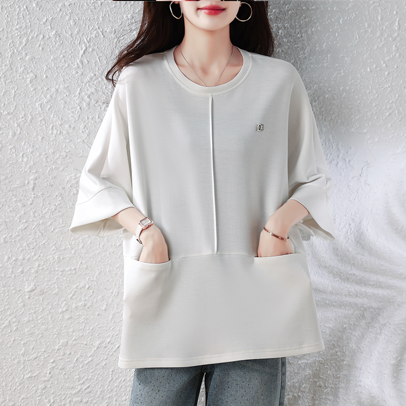 실사 빅 사이즈 여성 의류 라운드 넥 티셔츠 여성 2026 여름 새로운 지방 mm 루즈핏 표지 고기 중간 길이 반팔 맨위