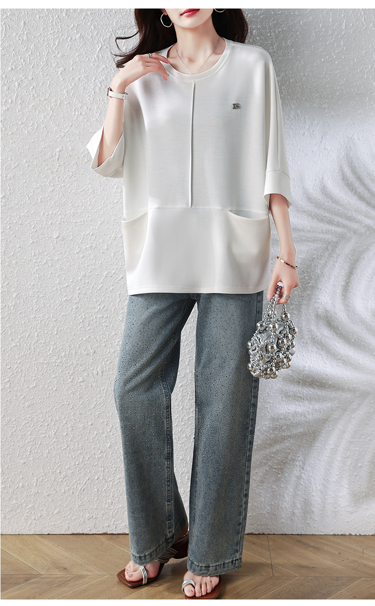 실사 2026 여름 드레스 새로운 빅 사이즈 루즈핏 슬림해 보이는 주머니 티셔츠 지방 mm 표지 고기 다용도 검정색 기본 셔츠