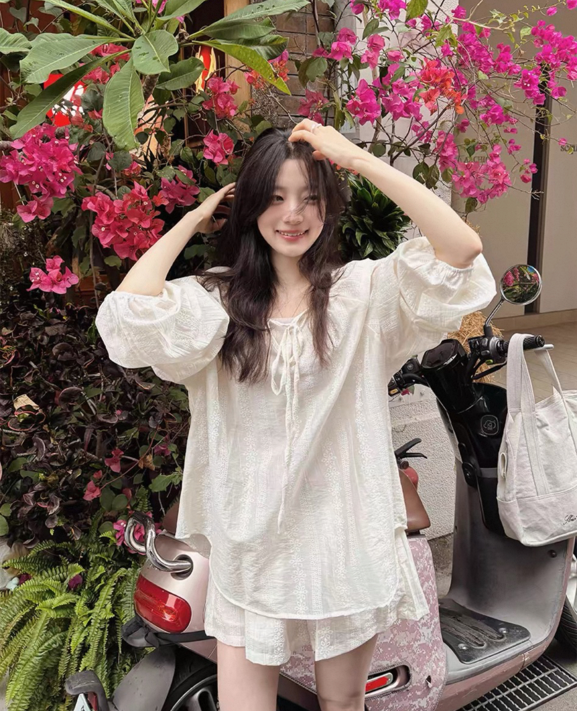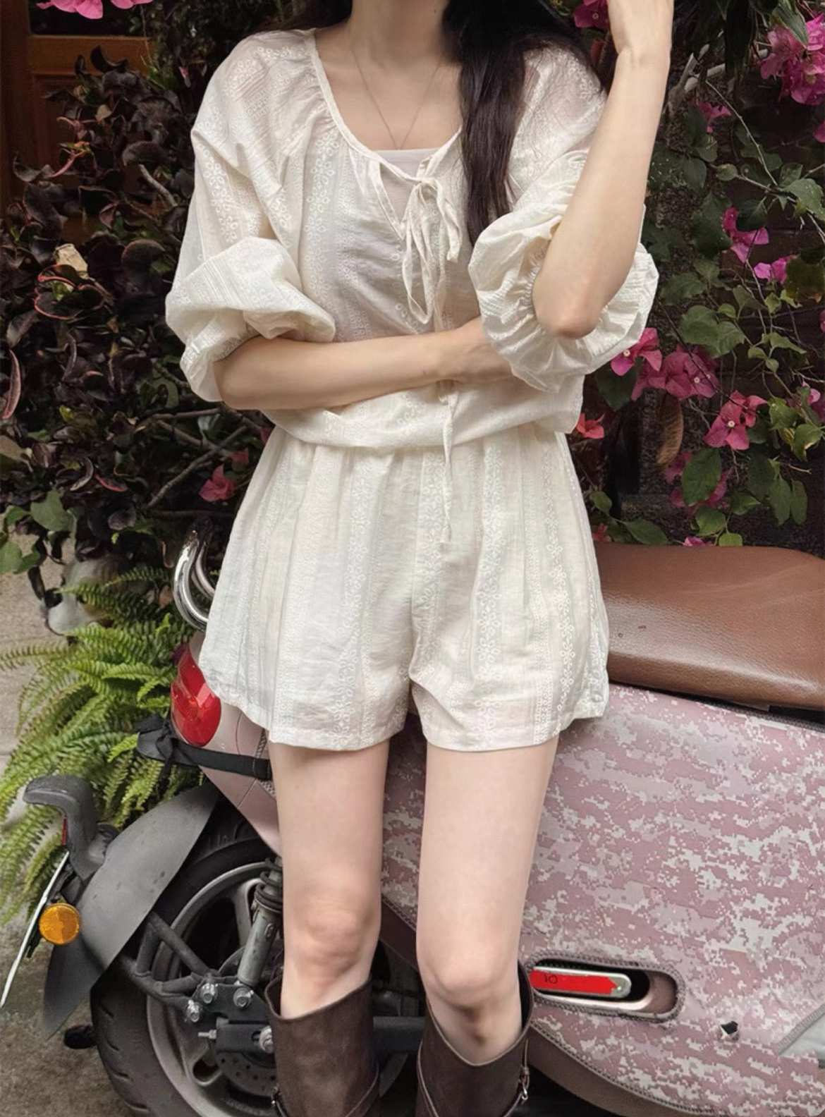 한국 동대문 2026 새로운 한국 스타일 자수 자카드 레이스업 루즈핏 세트 여성