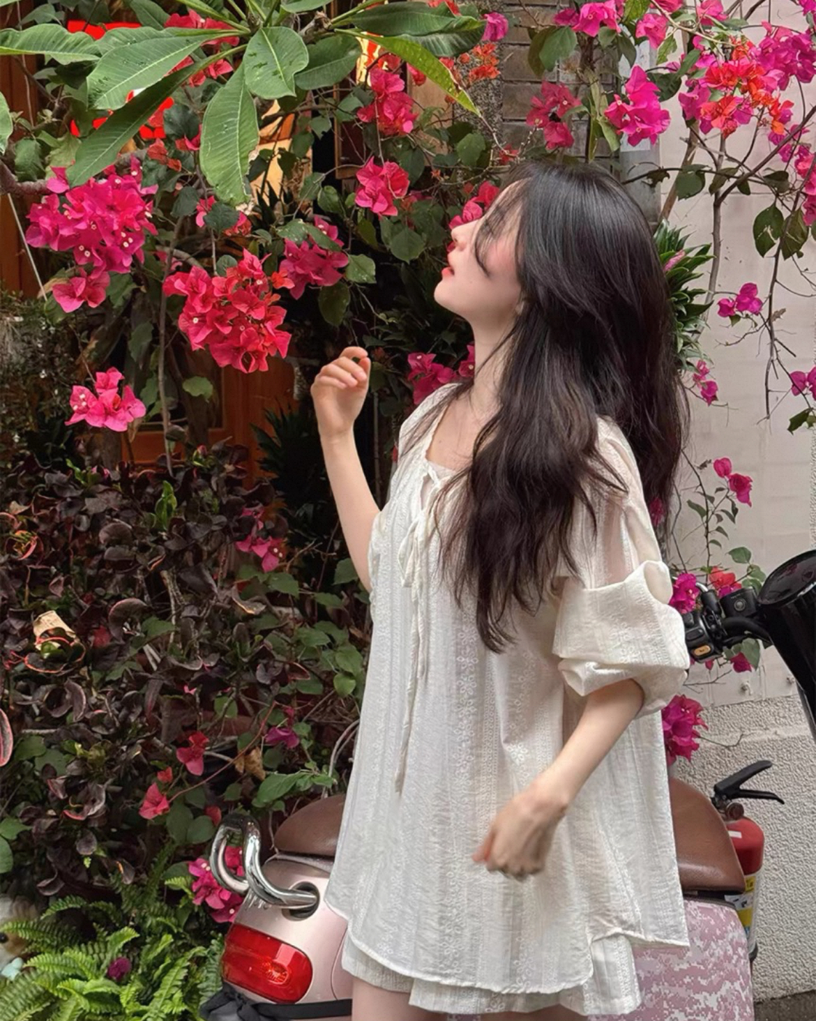 한국 동대문 2026 새로운 한 부서 부드러운 순수한 욕망 레이스 레이스업 루즈핏 V넥 슬립 드레스 드레스
