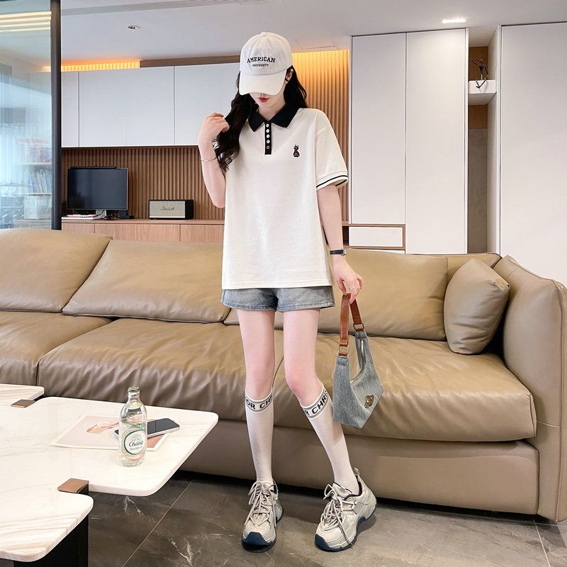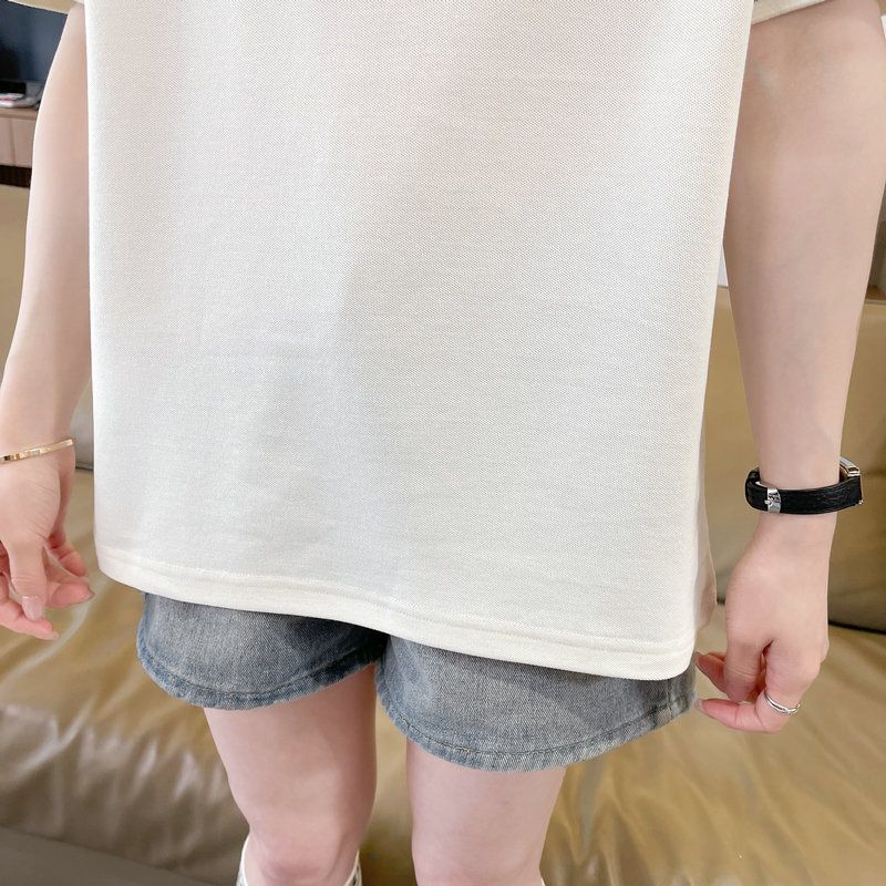 실사 2026 순면 반팔 티셔츠 여성 여름 새로운 한국 스타일 작은 말 자수 빅 사이즈 여성 의류