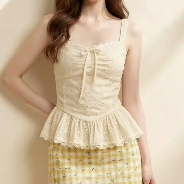 주문 재고 있음 휴가 바람 색상 도트 무늬 튜브탑 조끼 레이스업 꽃밭 허리 수축 슬림해 보이는 달콤한 핫걸 슬립 맨위