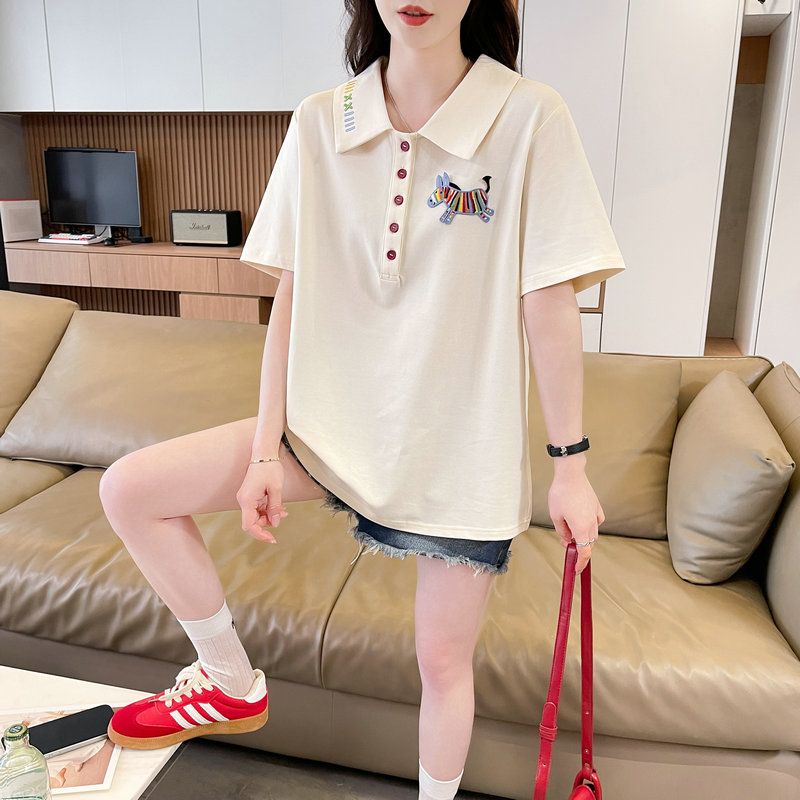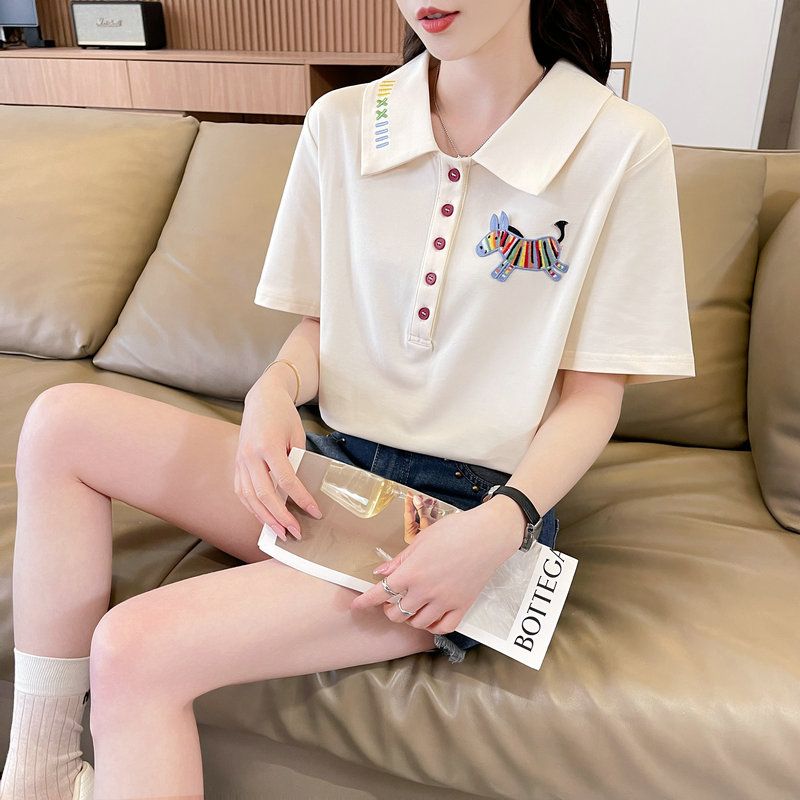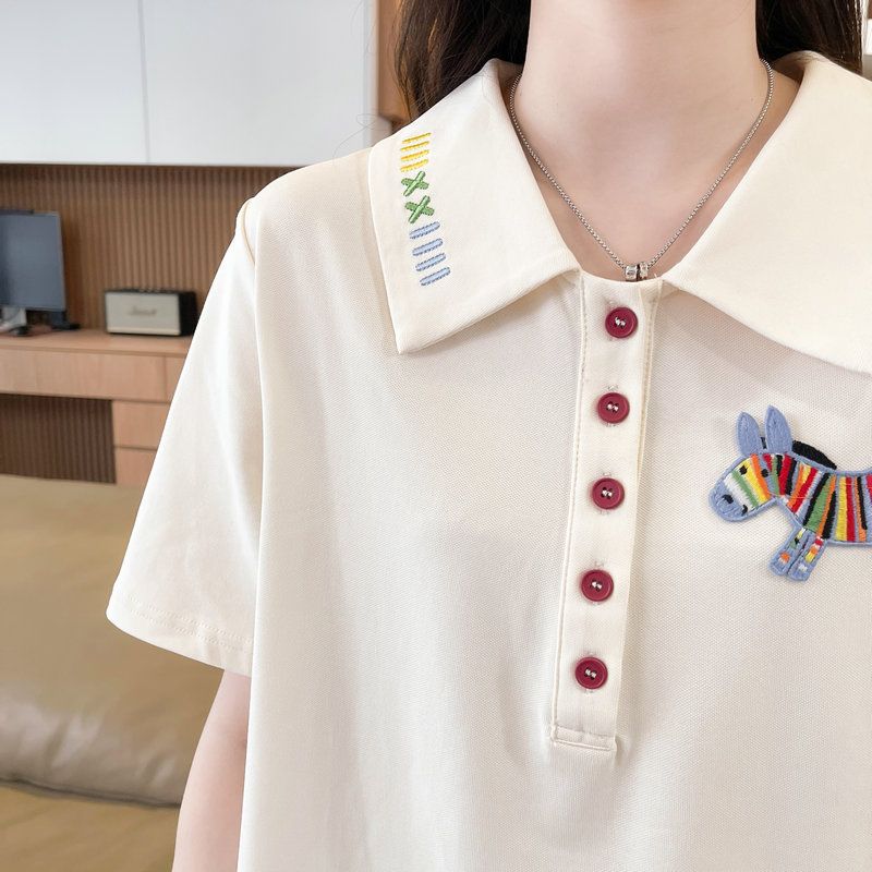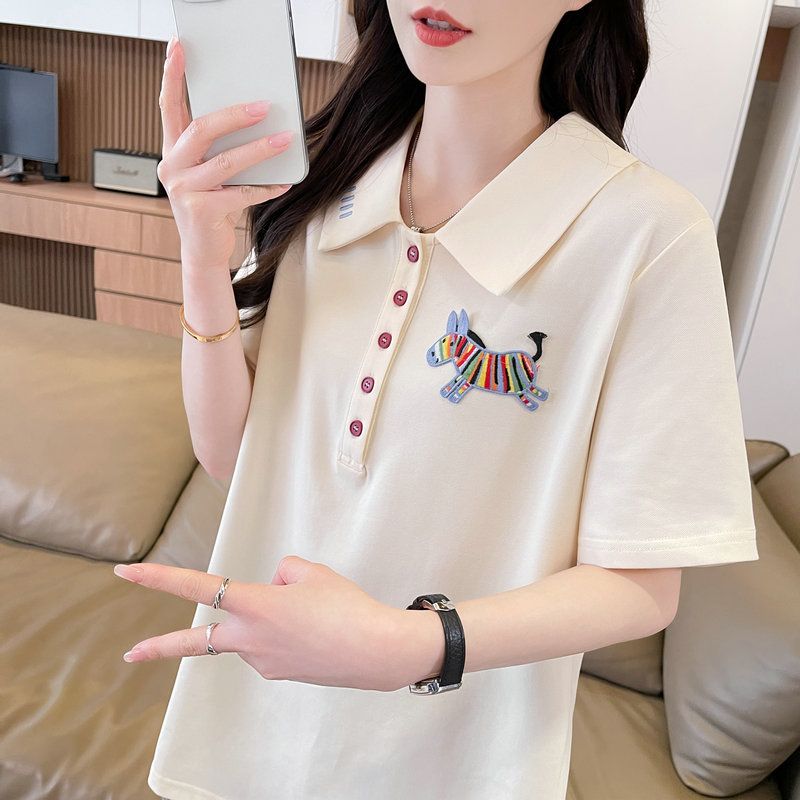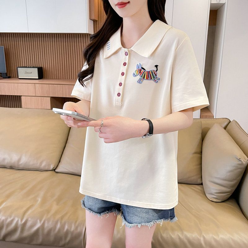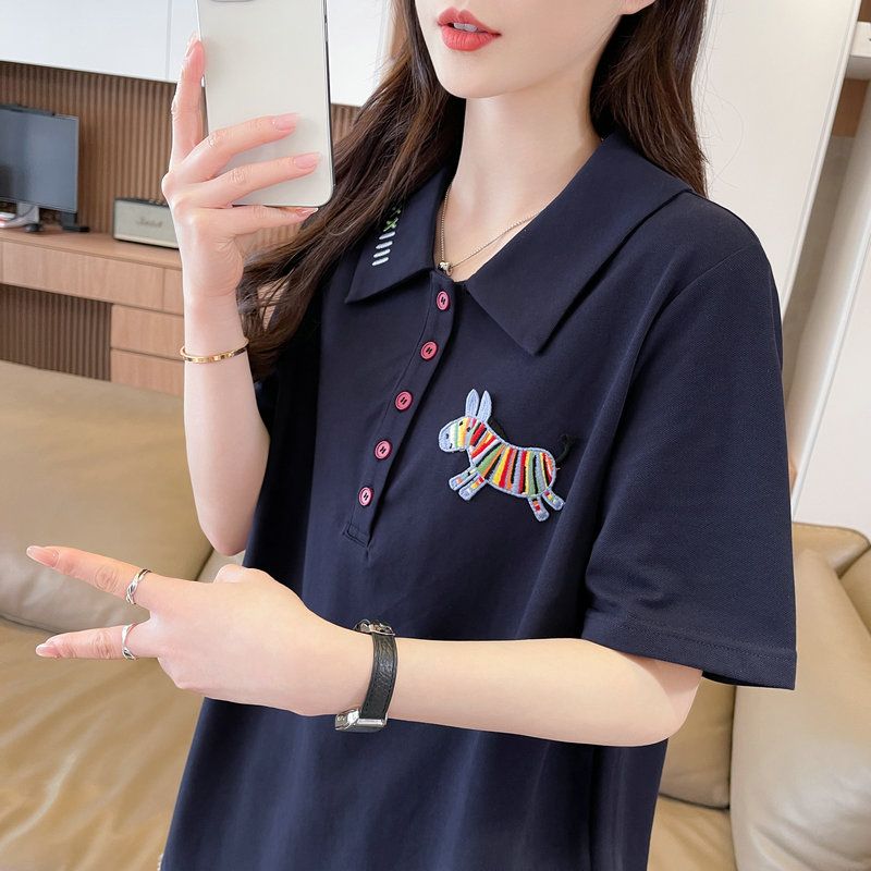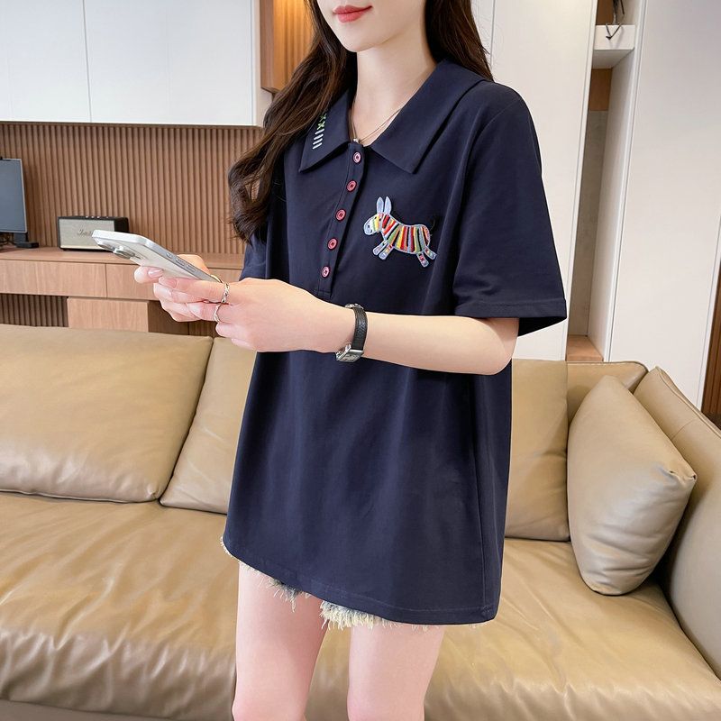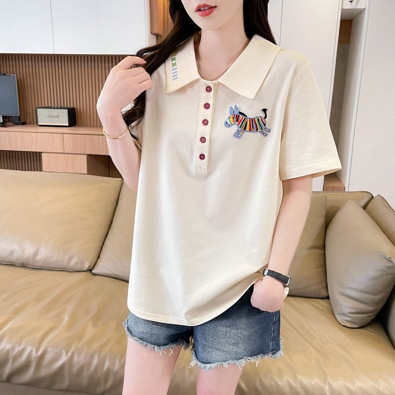 실사 2026 순면 반팔 티셔츠 여성 여름 새로운 한국 스타일 작은 말 자수 빅 사이즈 여성 의류