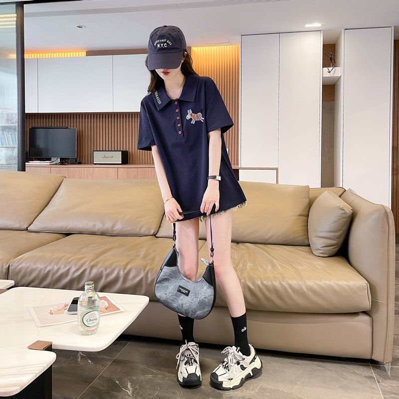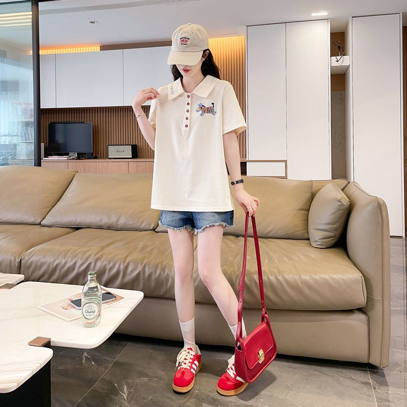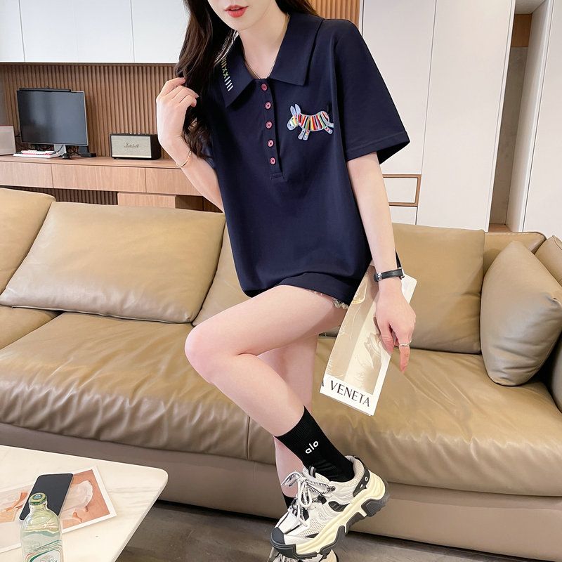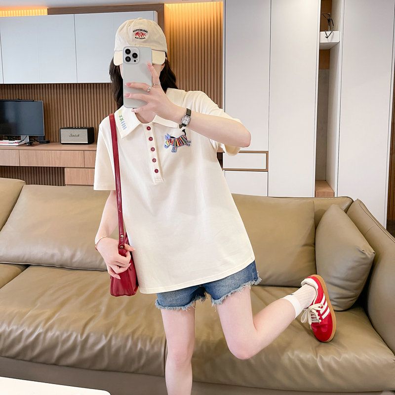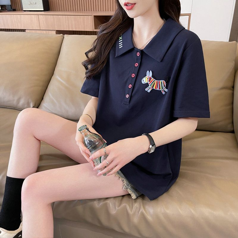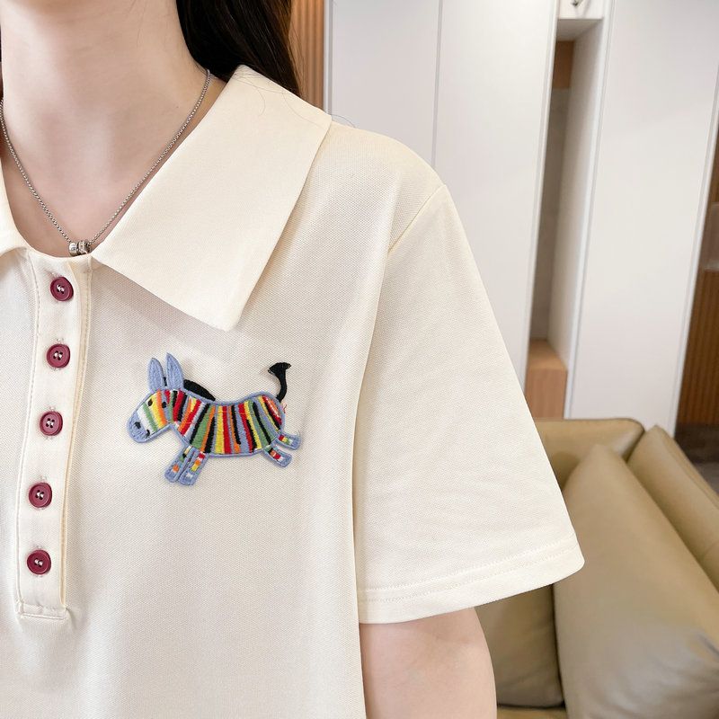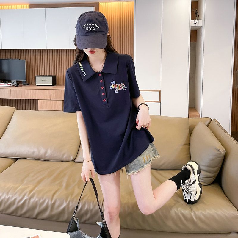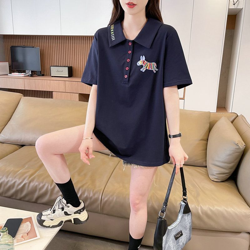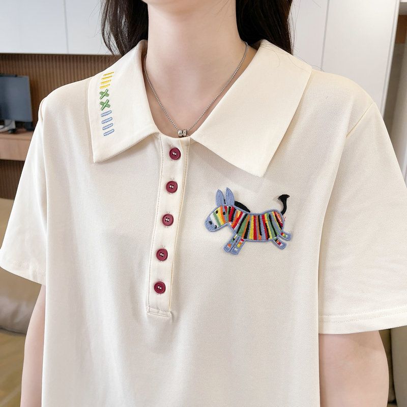 실사 2026 순면 반팔 티셔츠 여성 여름 새로운 한국 스타일 작은 말 자수 빅 사이즈 여성 의류