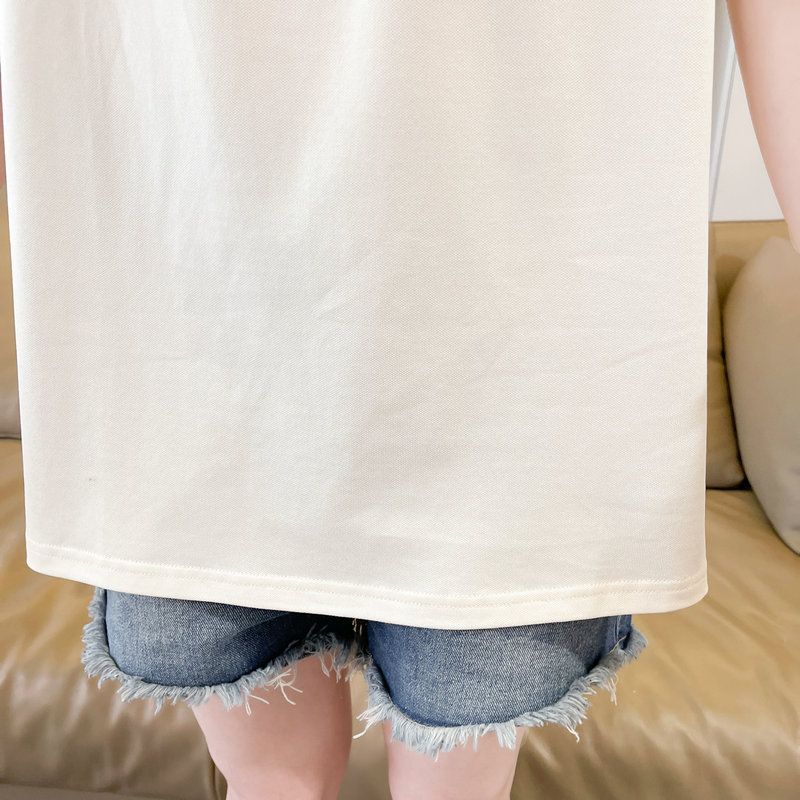 실사 정가 한국 디스플레이 화이트 색상 시스템 풀오버 라운드 넥 루즈핏 미니멀리즘 다용도 단색 반팔 티셔츠