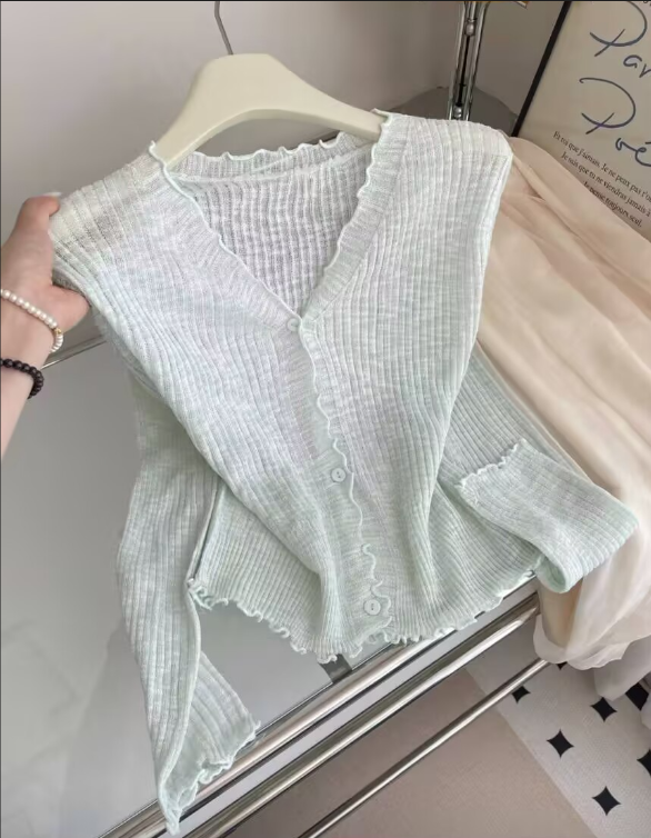 2026 여름 패션 순수한 욕망 소녀 프릴 얇은 스타일 얼음 실크 오픈 가디건 여성 자외선 차단 쇼트 스타일 외부 가져 가라.
