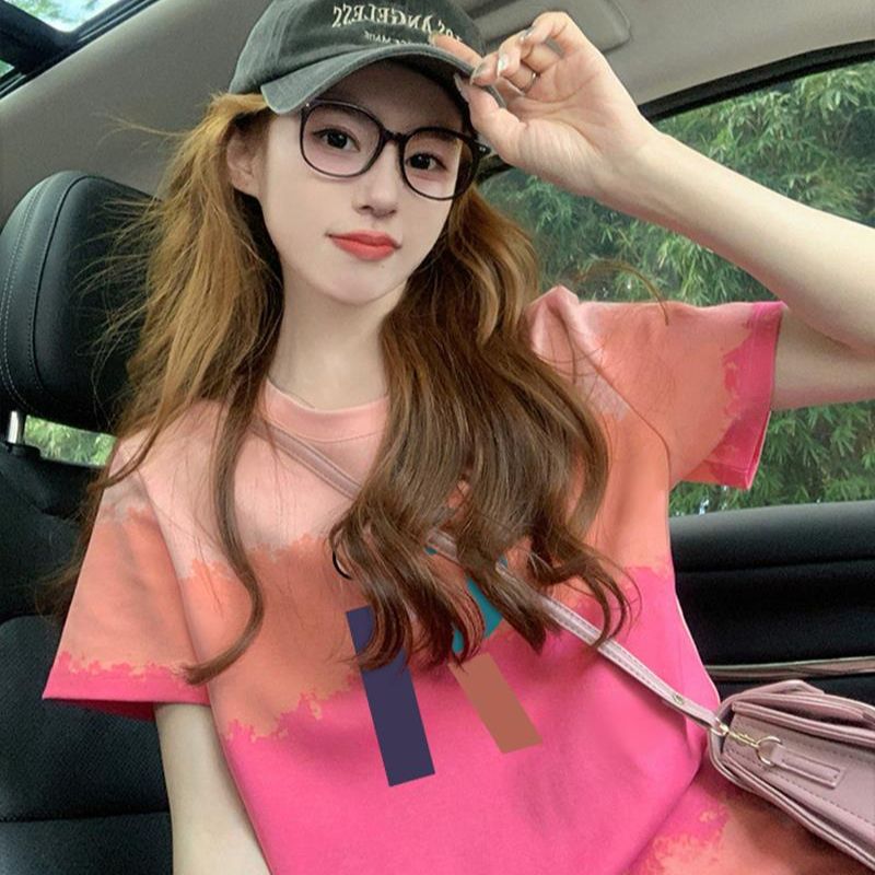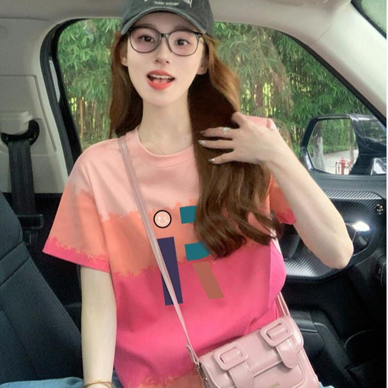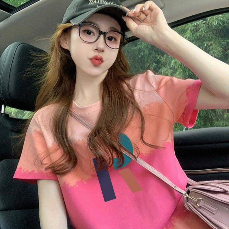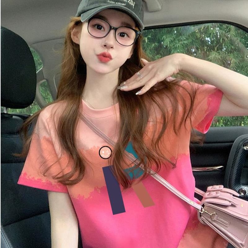 200그램 순면 이후 패키지 칼라 색상 색 후광 염색 루즈핏 티셔츠 여성 디자인 센스 프린트 슬림해 보이는 맨위 트렌디
