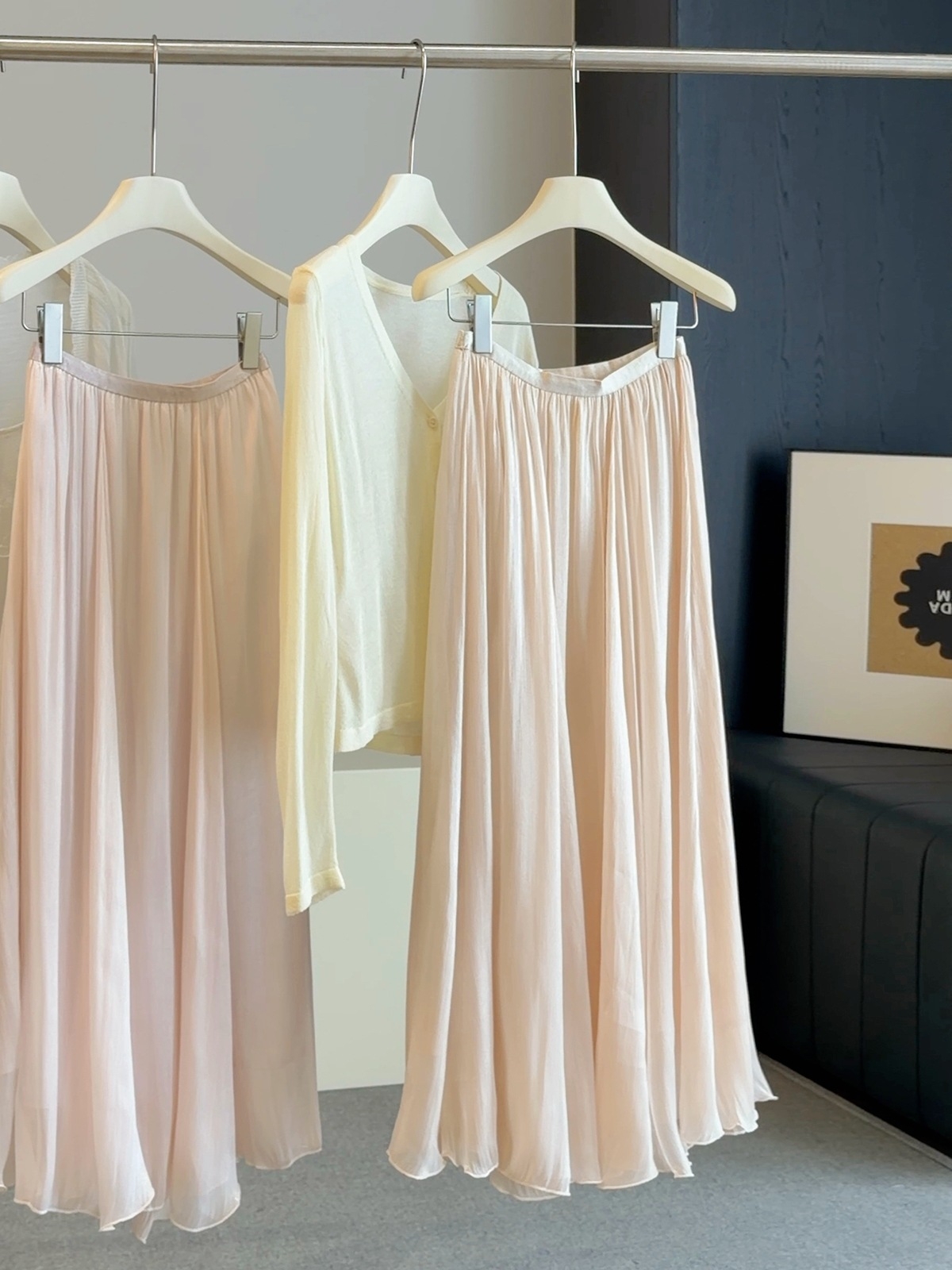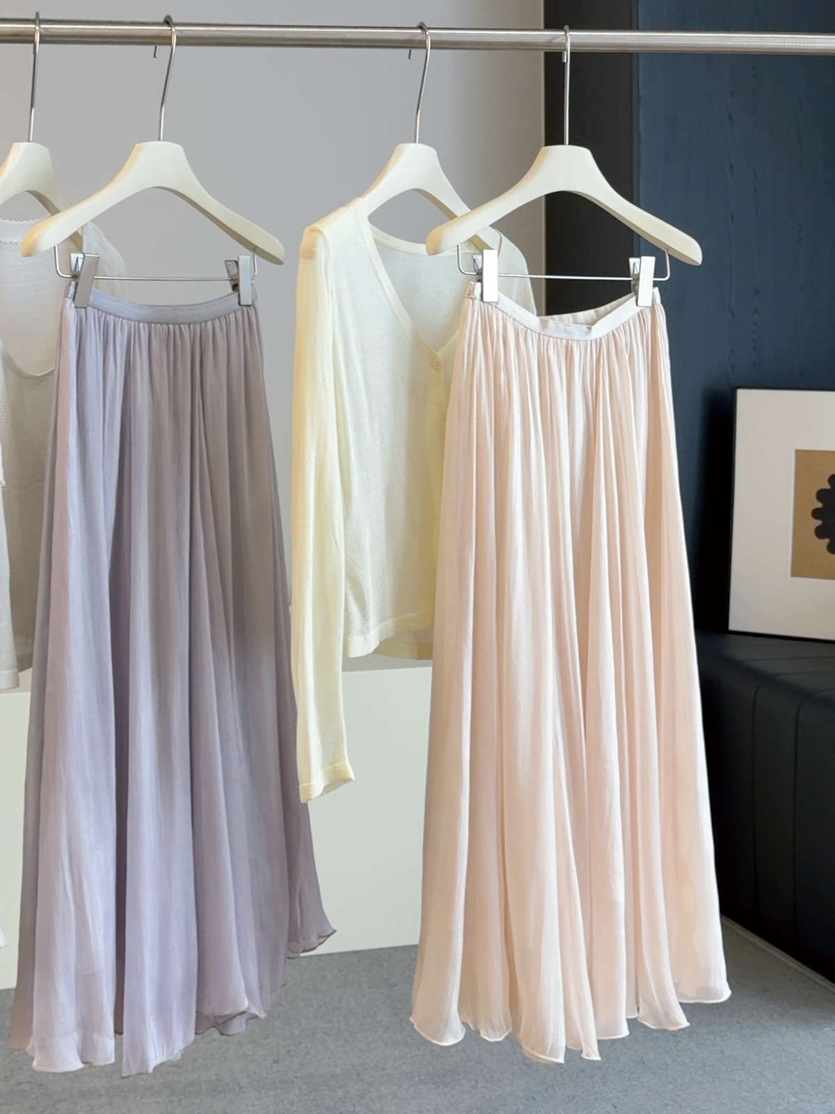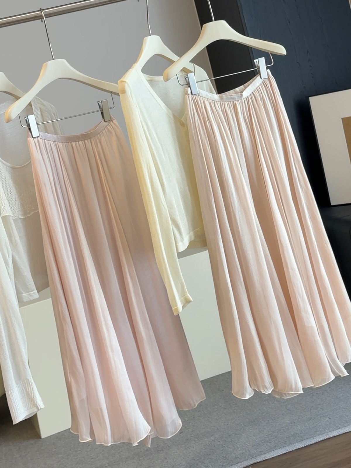 고급 분위기 센스 깃발 실 반신 스커트 여성 여름 2026 새로운 하이웨이스트 다용도 슬림해 보이는 캐주얼 우아한 A라인 스커트