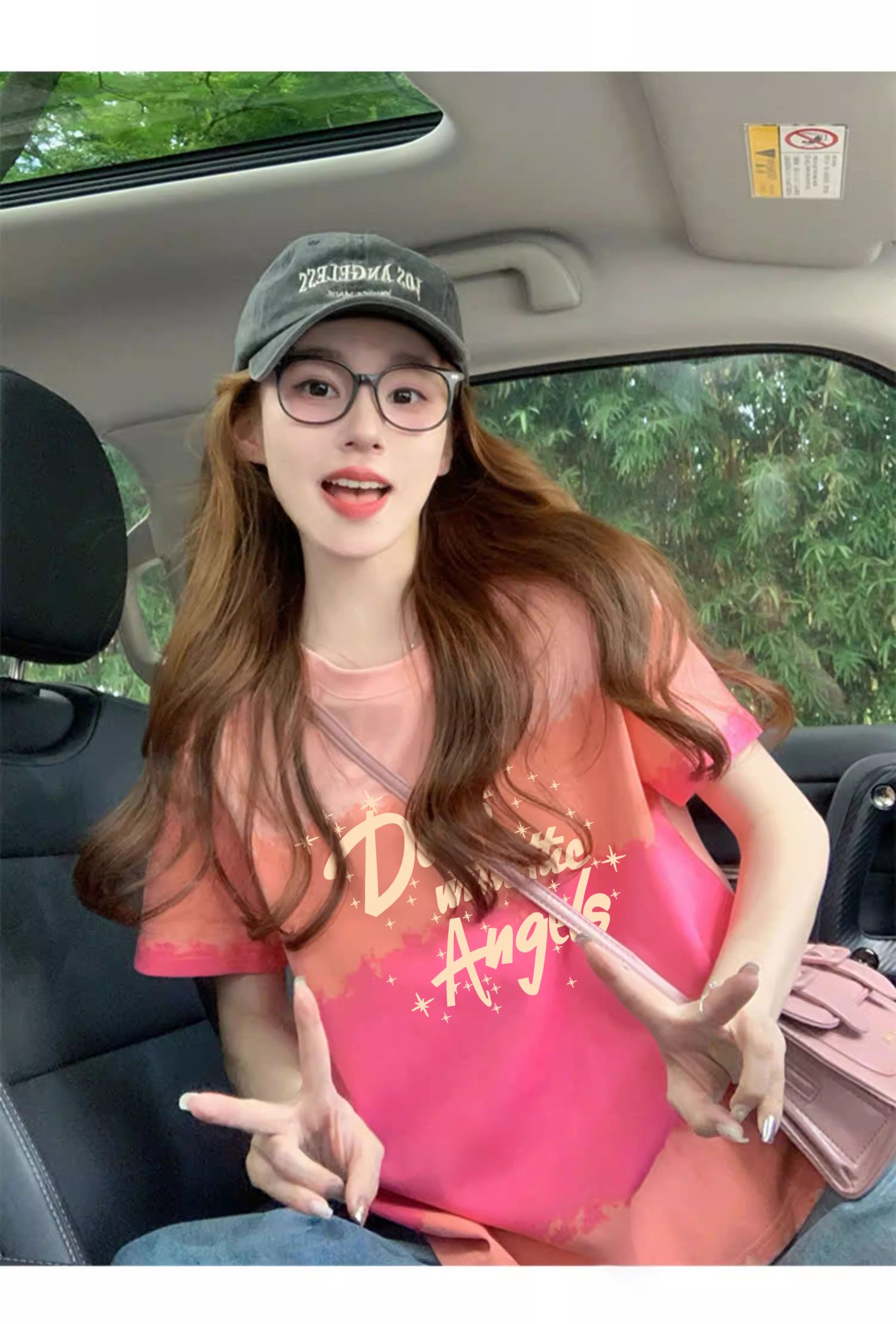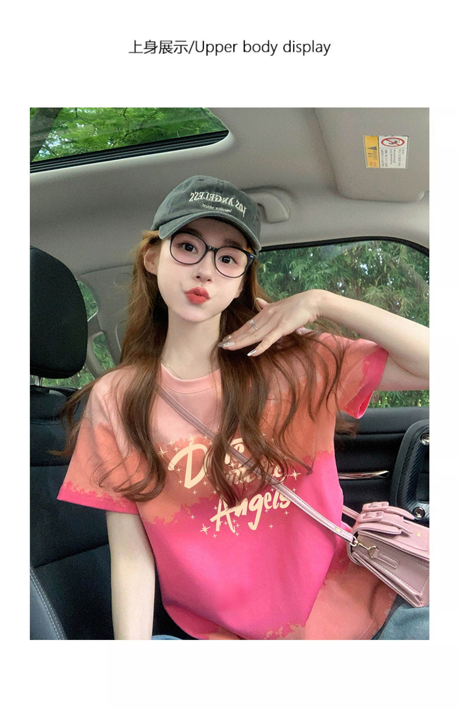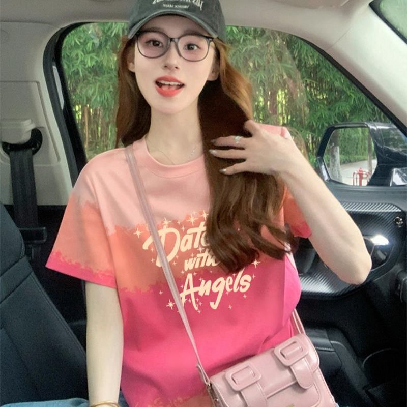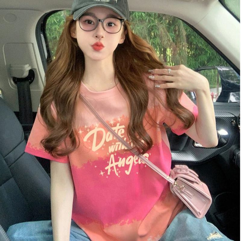 200그램 순면 이후 패키지 칼라 색상 색 후광 염색 루즈핏 티셔츠 여성 디자인 센스 프린트 슬림해 보이는 맨위 트렌디