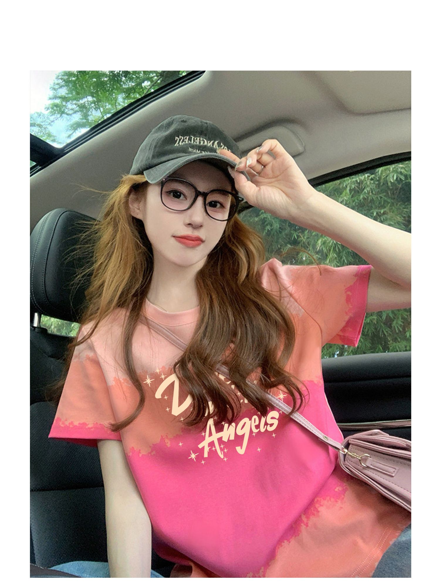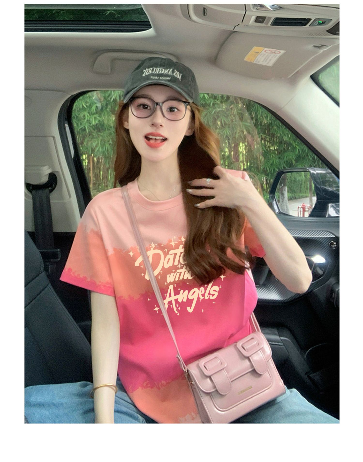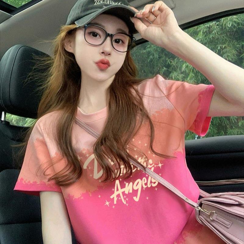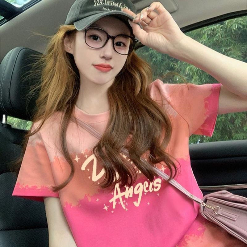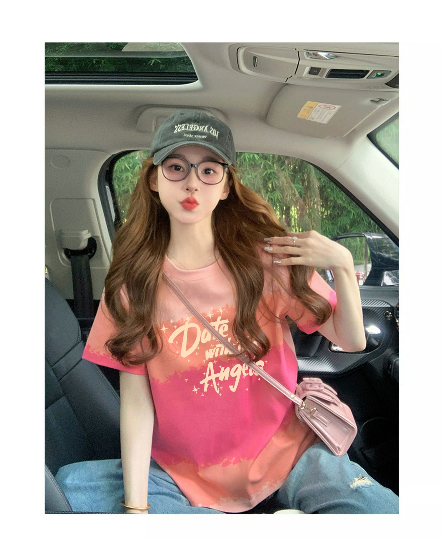 200그램 순면 이후 패키지 칼라 색상 색 후광 염색 루즈핏 티셔츠 여성 디자인 센스 프린트 슬림해 보이는 맨위 트렌디