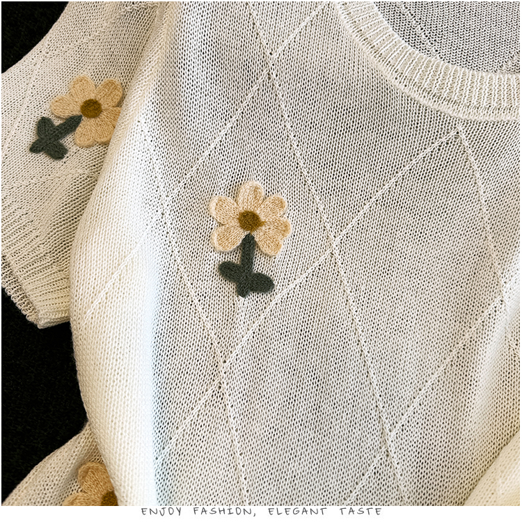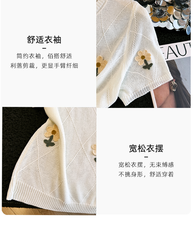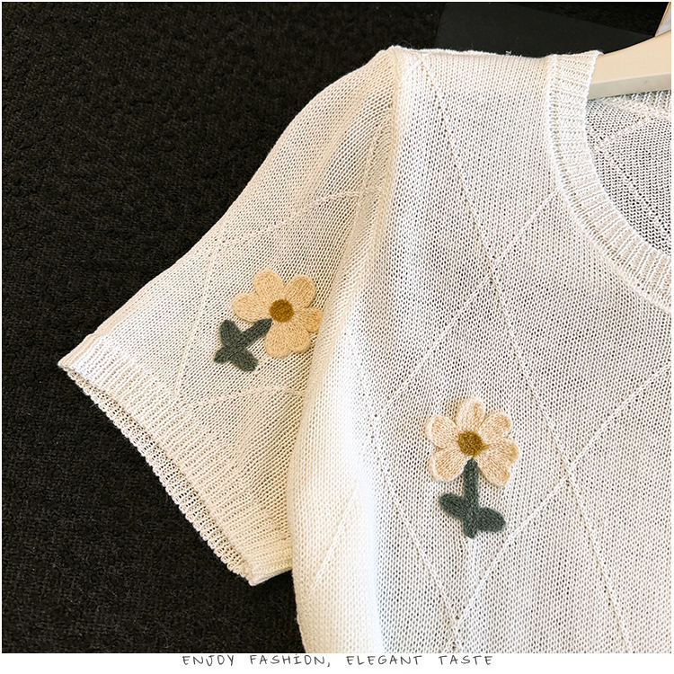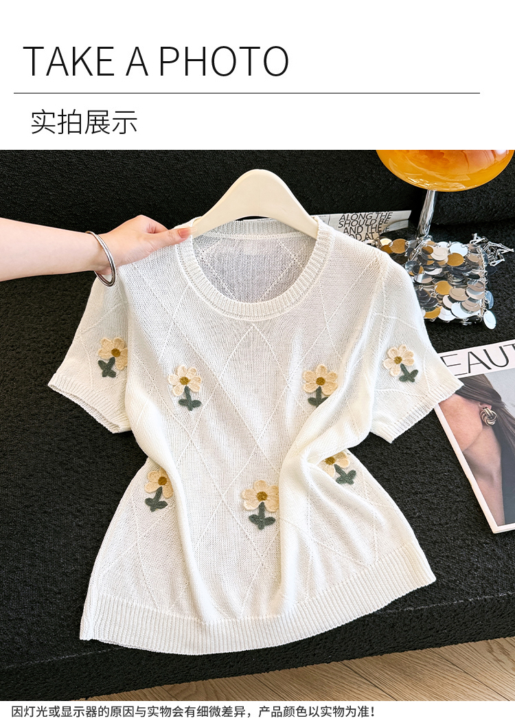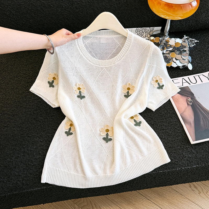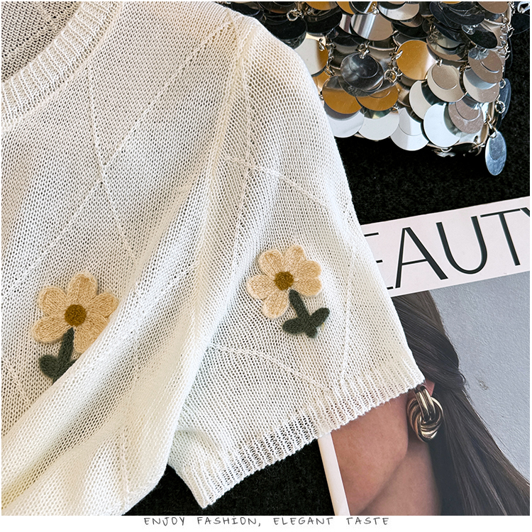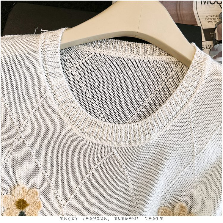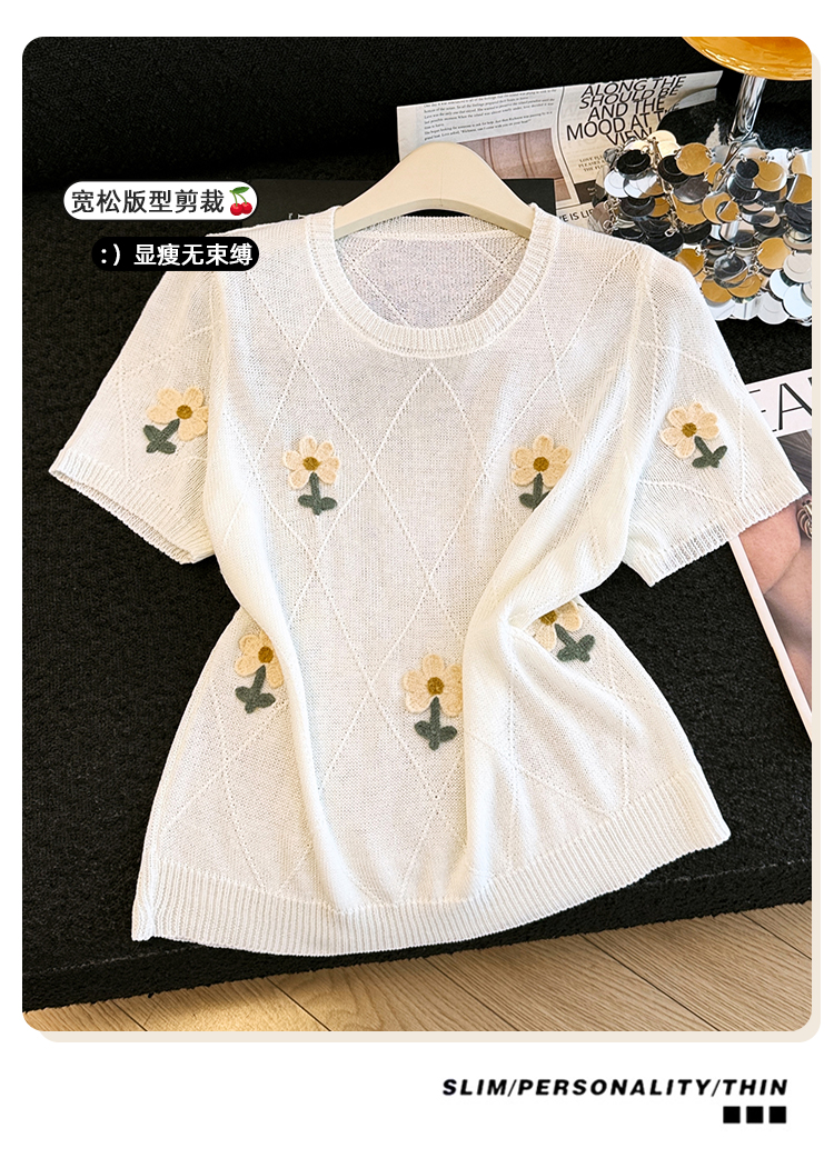 2026 여름 새로운 패션 다용도 라운드 넥 루즈핏 꽃 자수 얼음 실크 티셔츠 주간 실크 마 니트 스웨터 맨위 여성