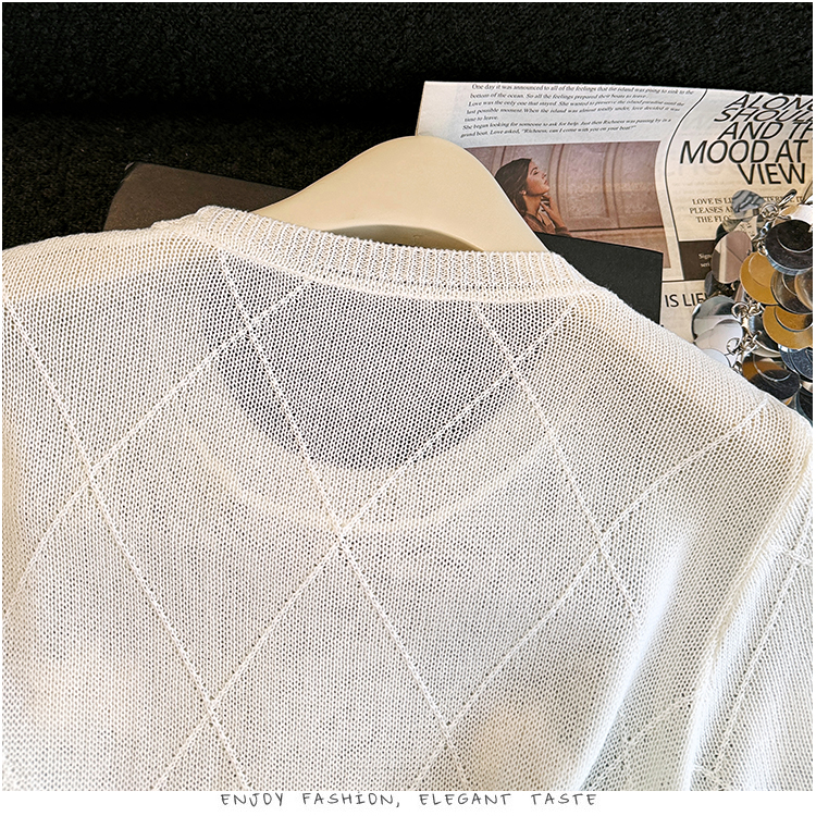 오래된 돈 바람 2026 여름 새로운 디자인 센스 스카프 V넥 항공기 소매 얼음 실크 티셔츠 주간 실크 아마 니트 스웨터 여성