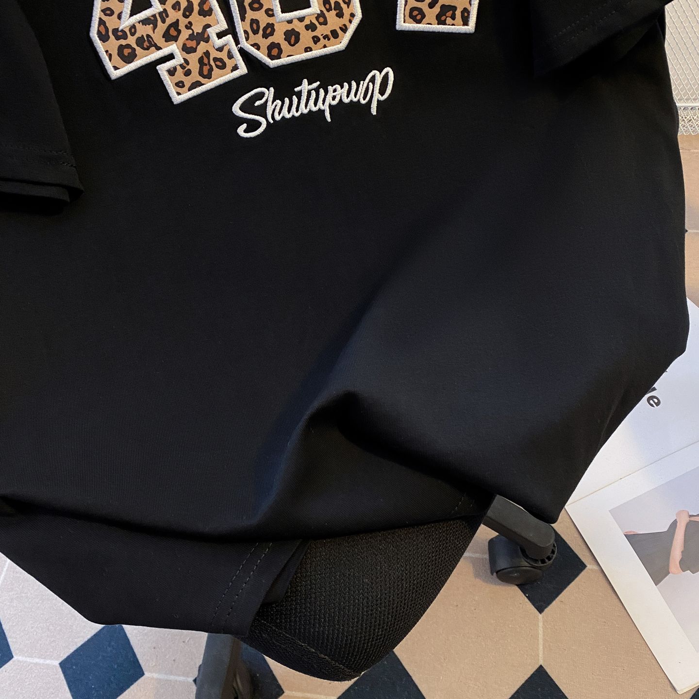 실사 더블 실 240 그램 순면 반팔 티셔츠 여성 여름 새로운 루즈핏 긍정적 인 어깨 알파벳 자수 라운드 넥 맨위