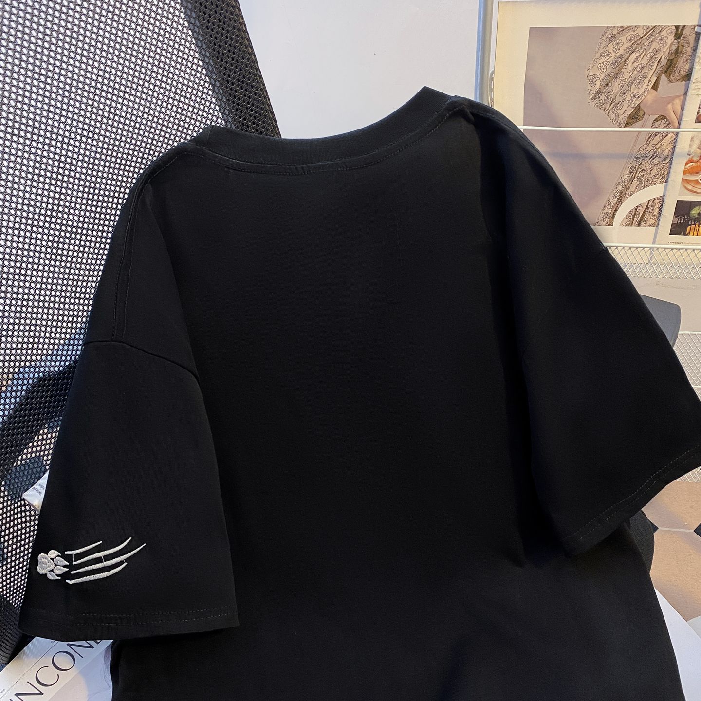 실사 2026 순면 반팔 티셔츠 여성 여름 새로운 한국 스타일 새끼 고양이 자수 빅 사이즈 여성 의류